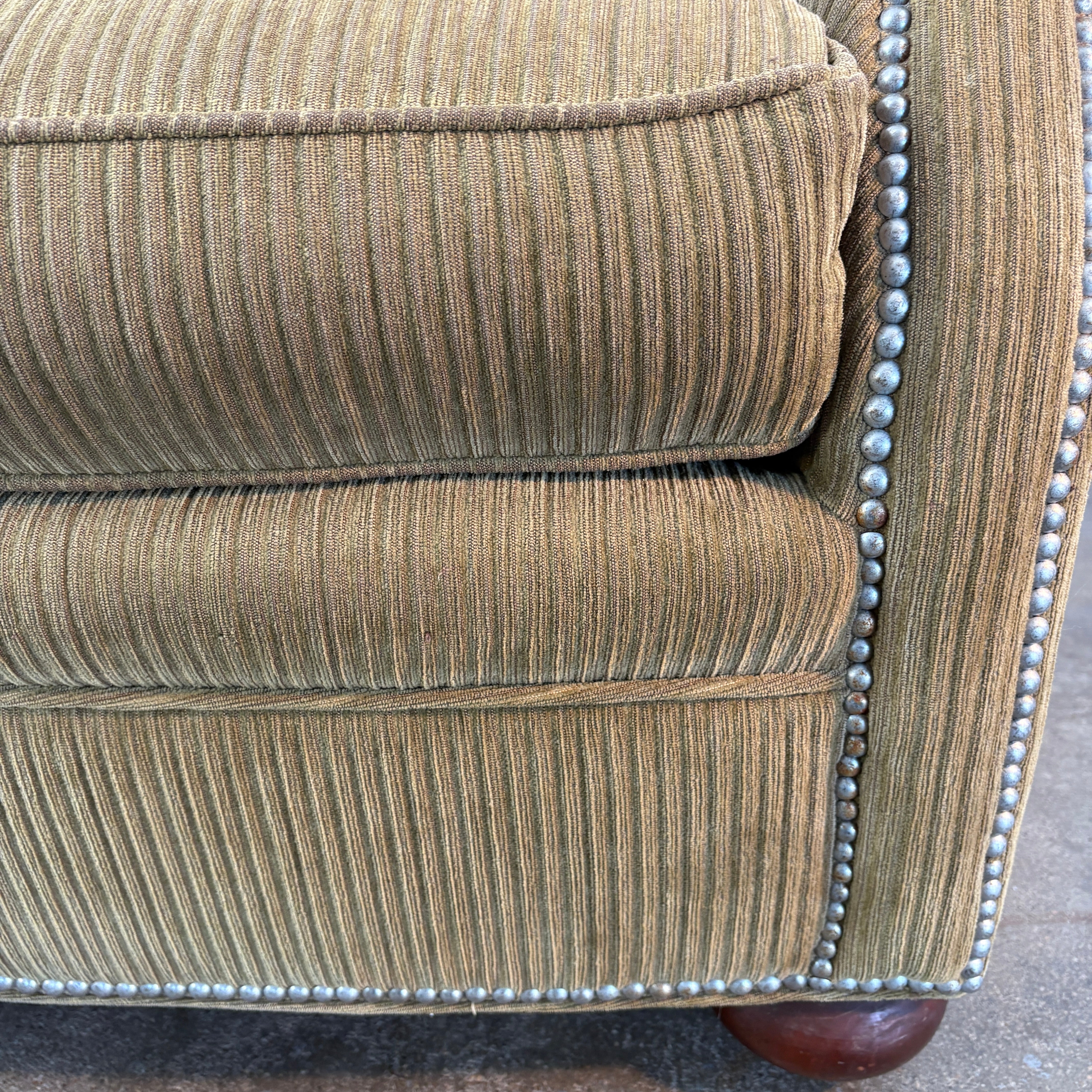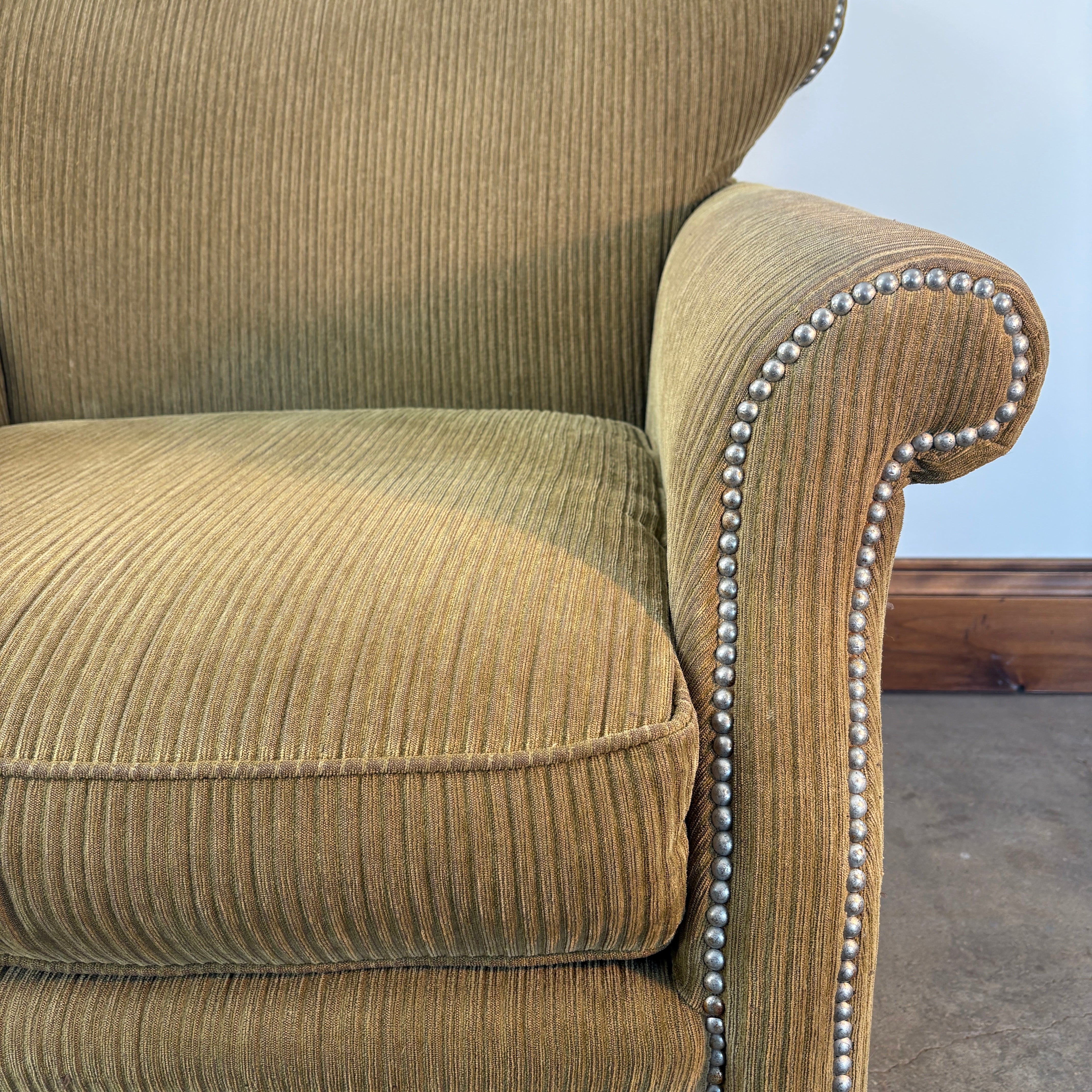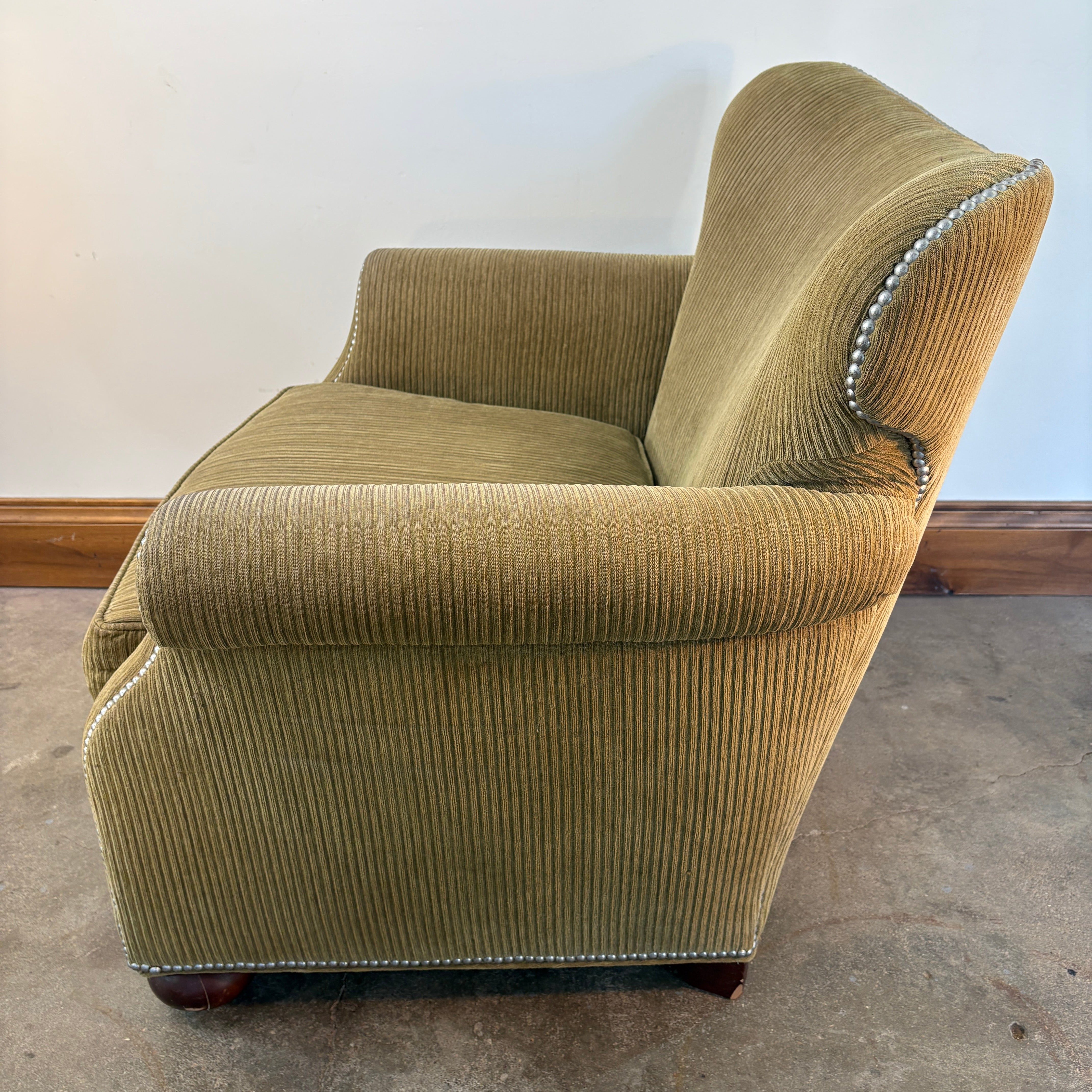 Milling Road, Division of Baker Gold Chenille Ribbed Fabric and Nailhead Detail Armchair