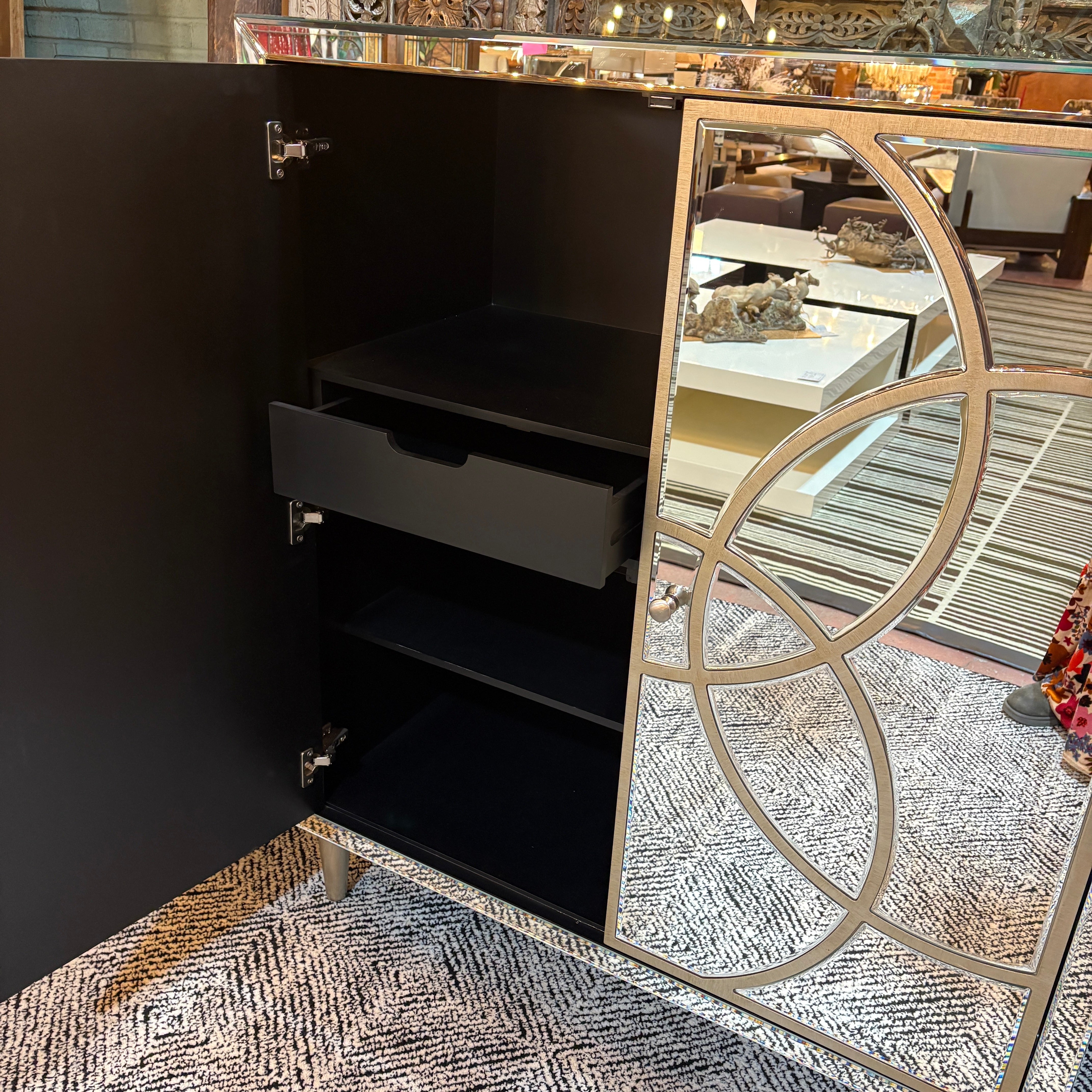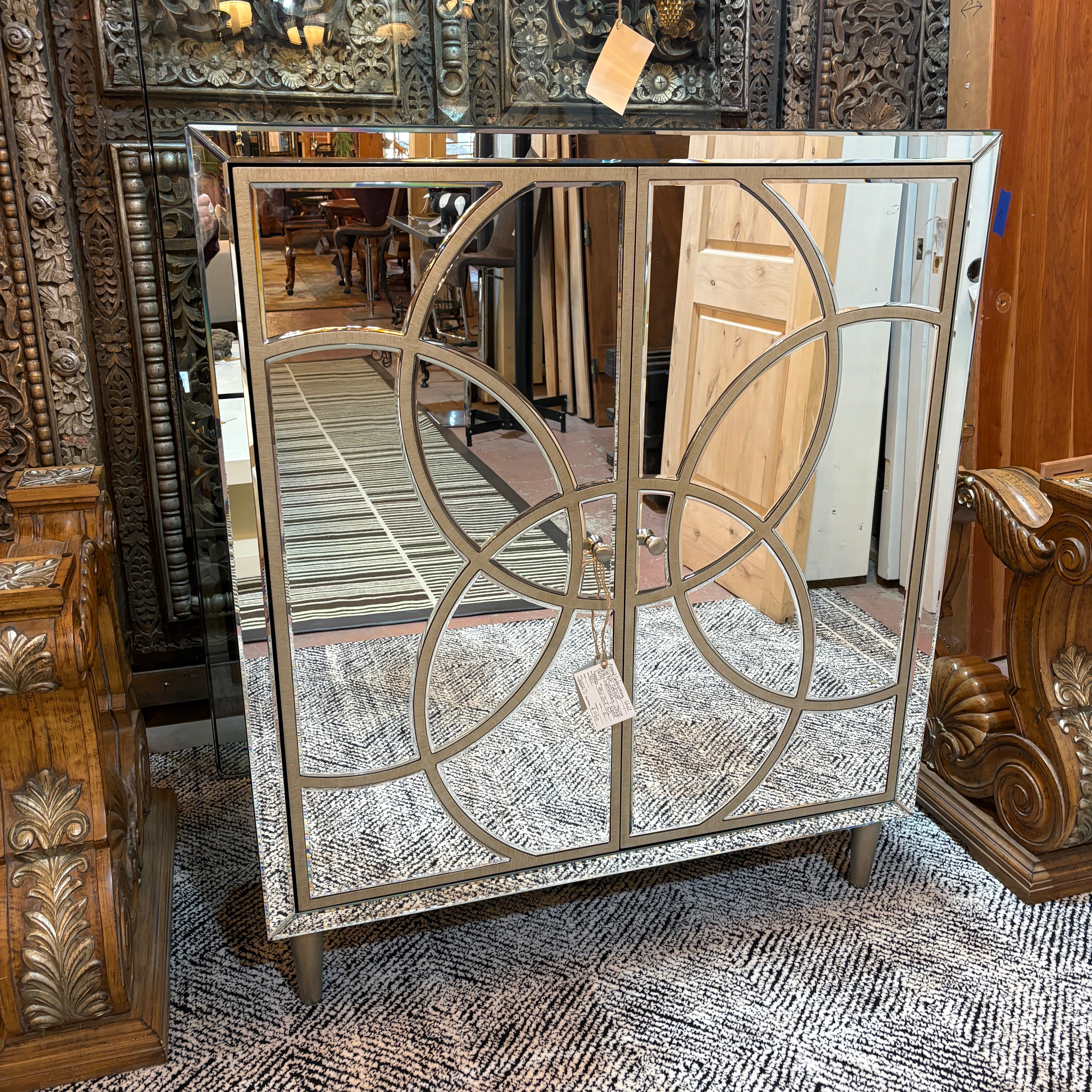 Mirrored Contemporary Style Bar Cabinet with Interlocking Circle Motif