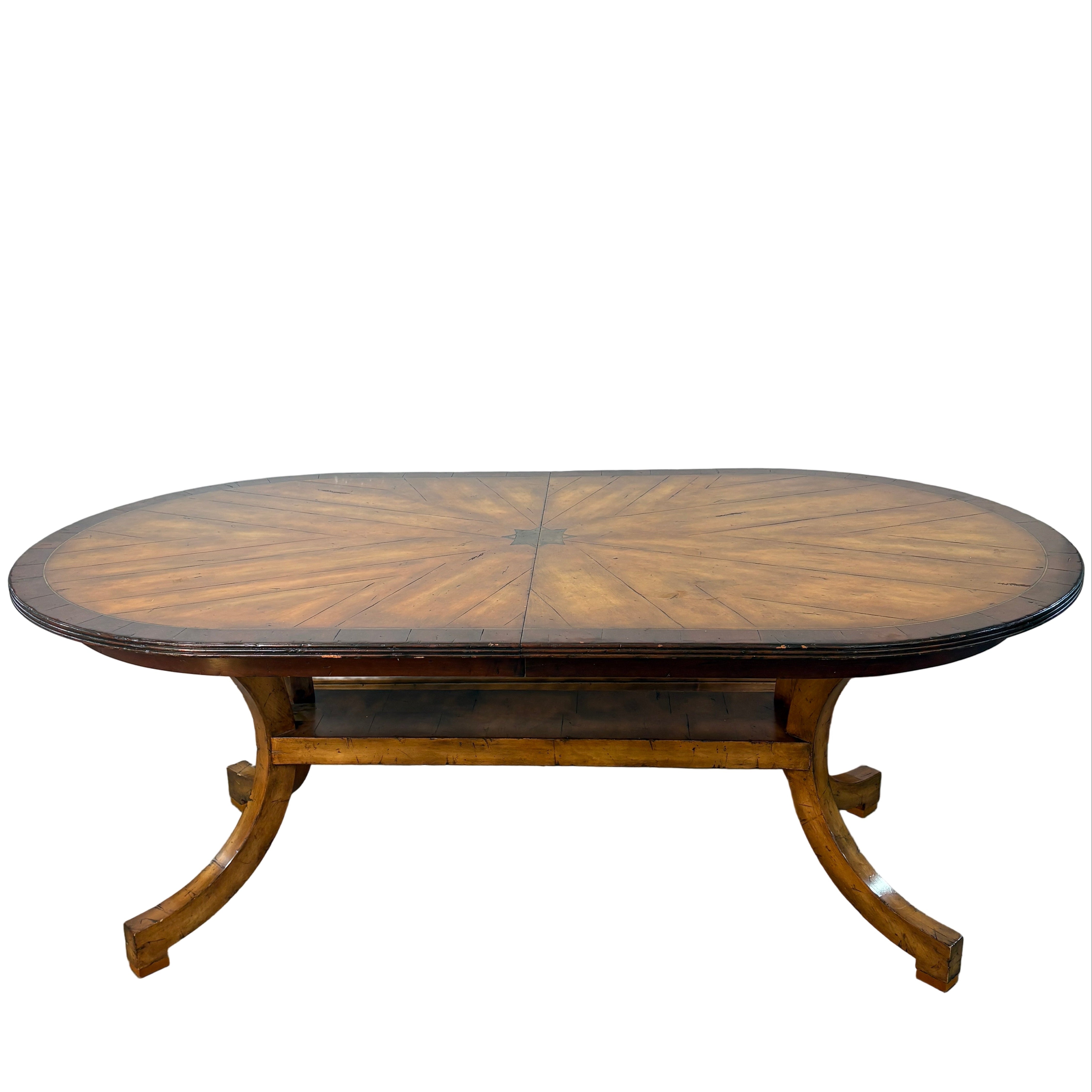 Oval Dining Table, Solid Wood with Brass Inlay Star, Curved Legs.