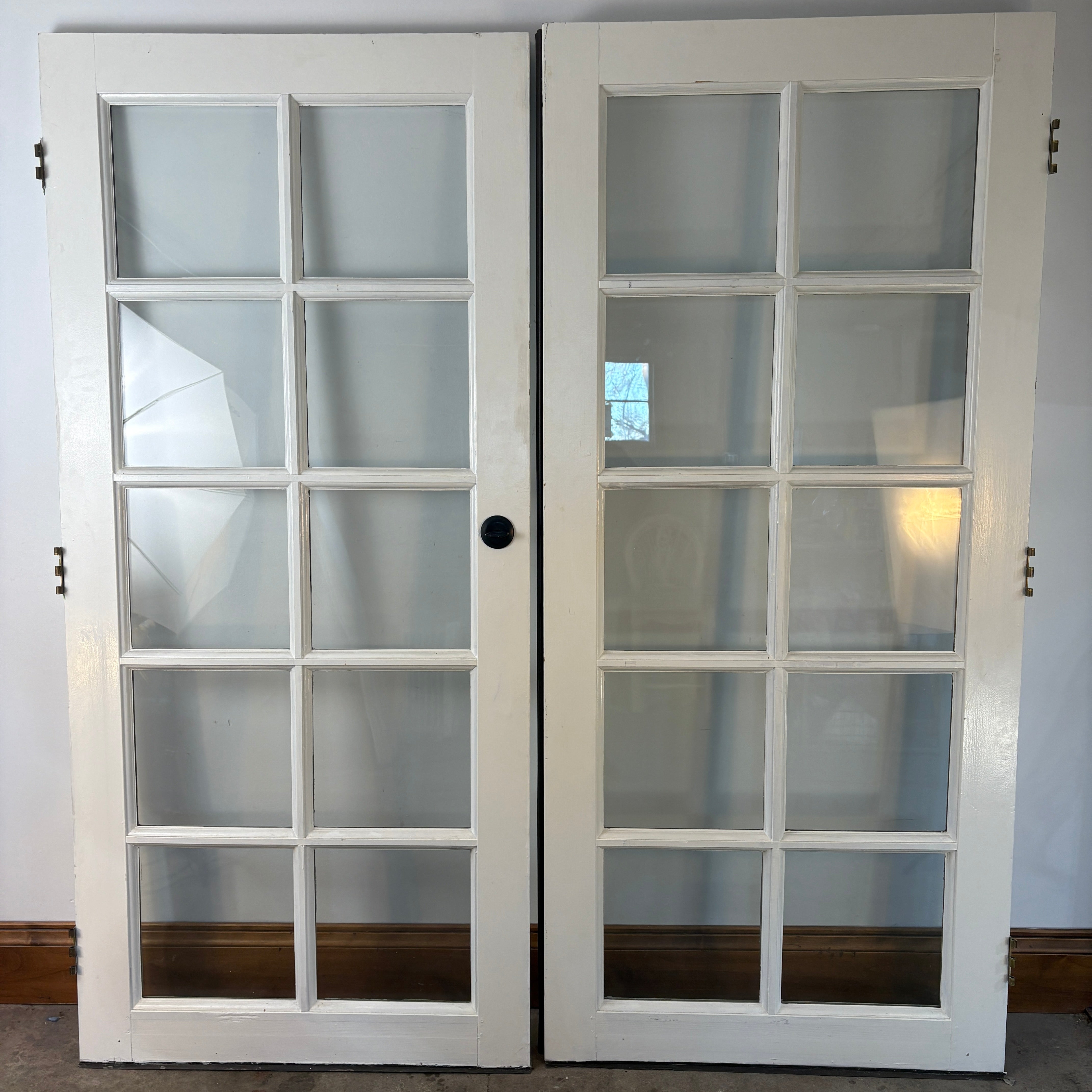 Pair of French Doors, Wood, Painted White with 10 Glass Panels Each.