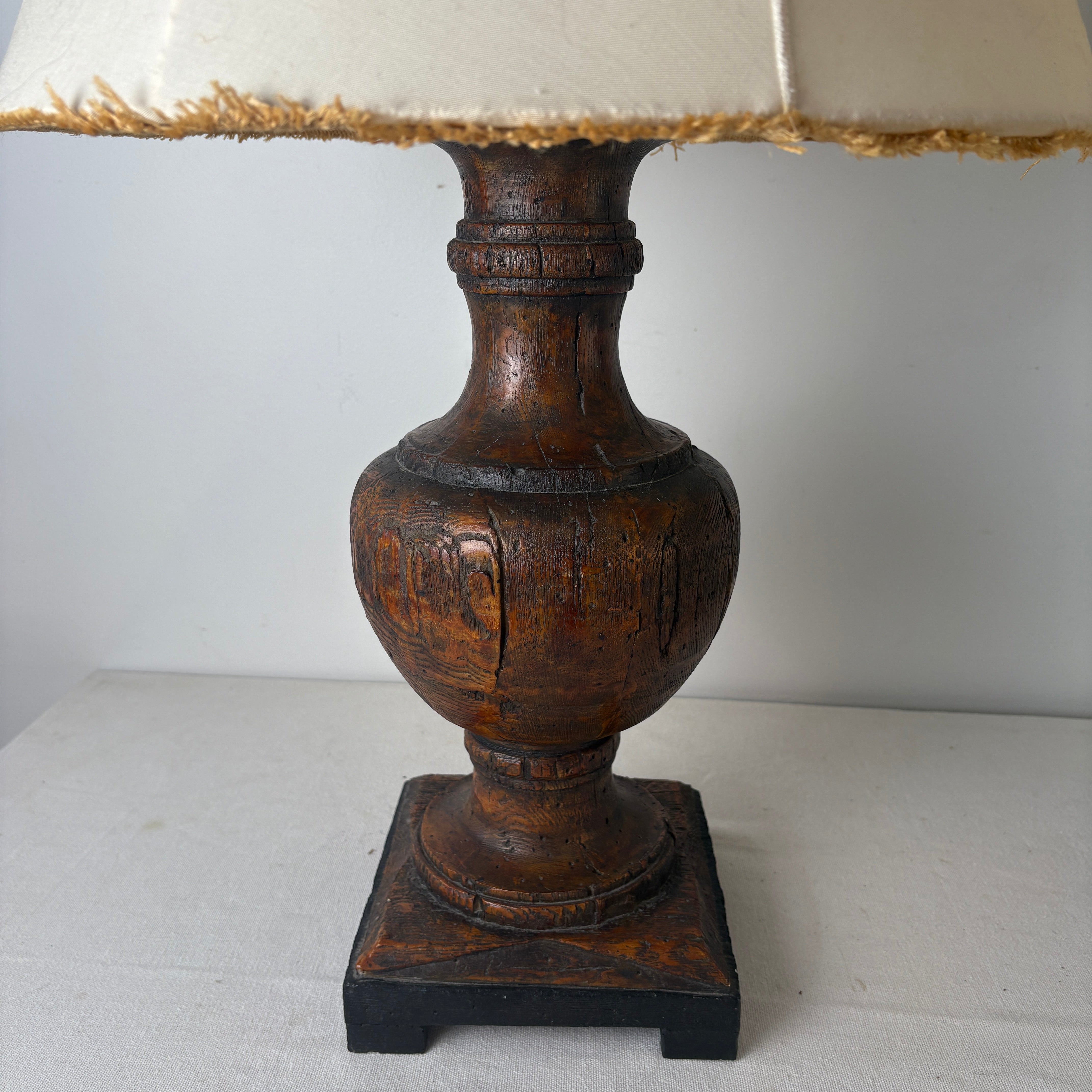 Pair of Uttermost Faux Wood Table Lamps with Deconstructed Shades. Includes custom Finals and Harps.