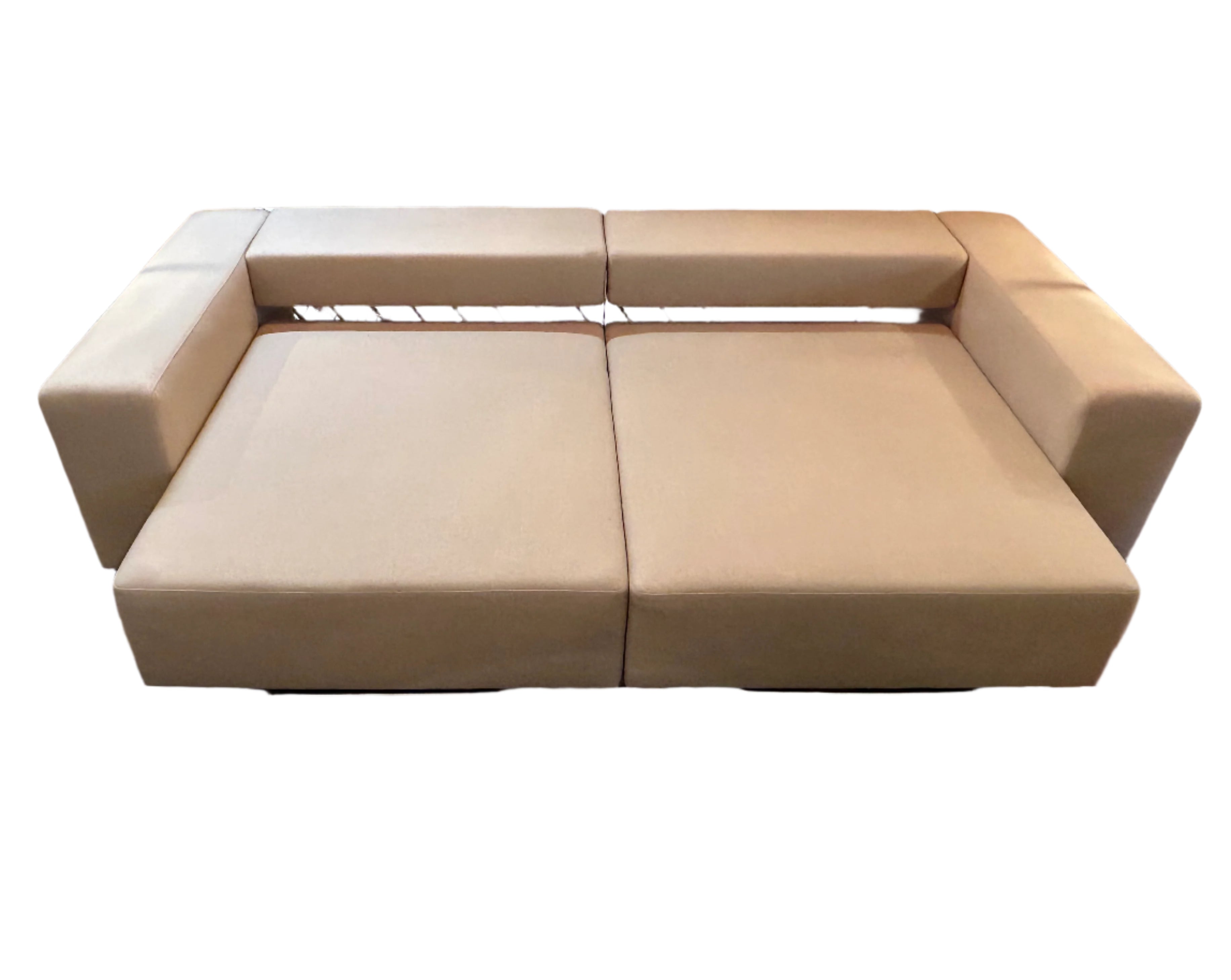Sleeper sofa, wool crepe in a soft beige color. Note: ottomans and pillows in gallery images sold separately.