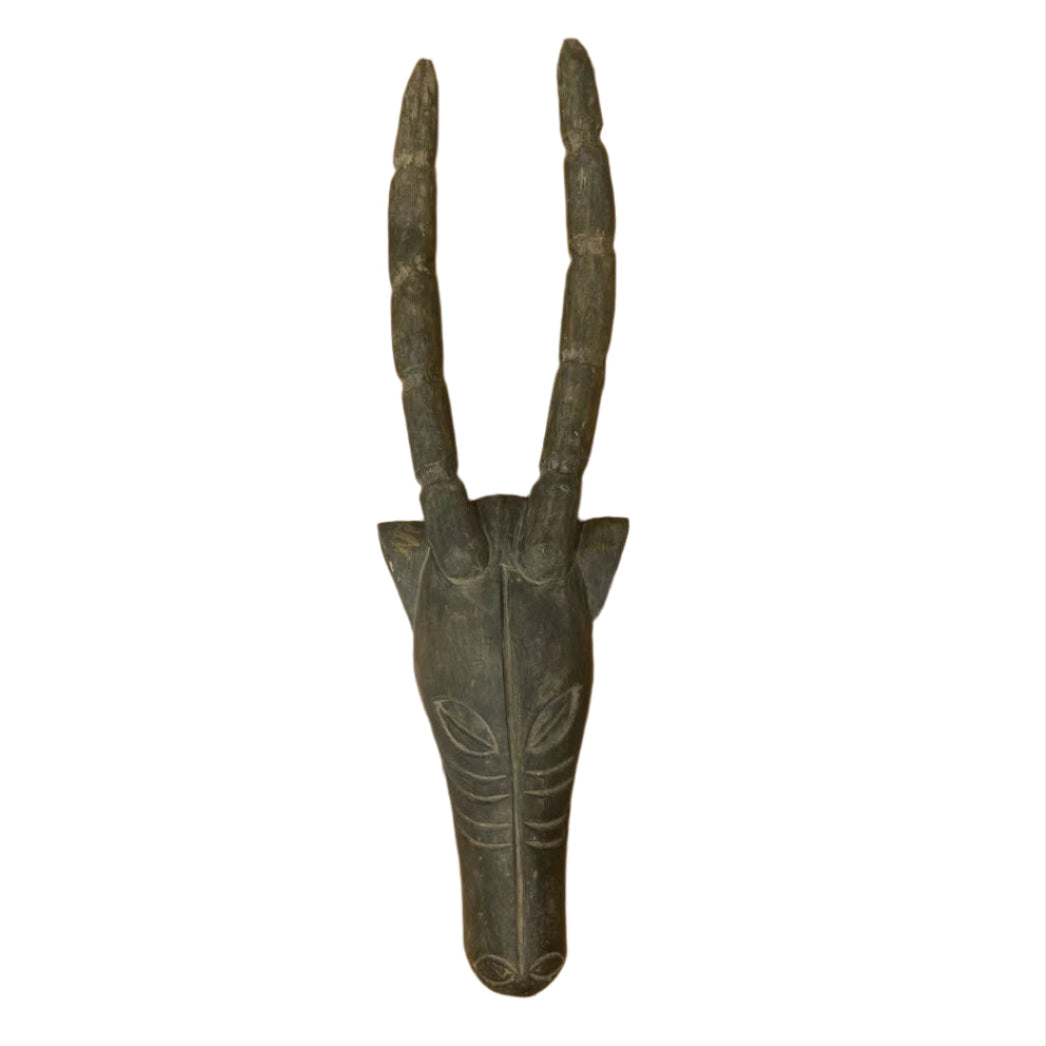 Primitive wall hanging of a gazelle, hand-carved wood.
