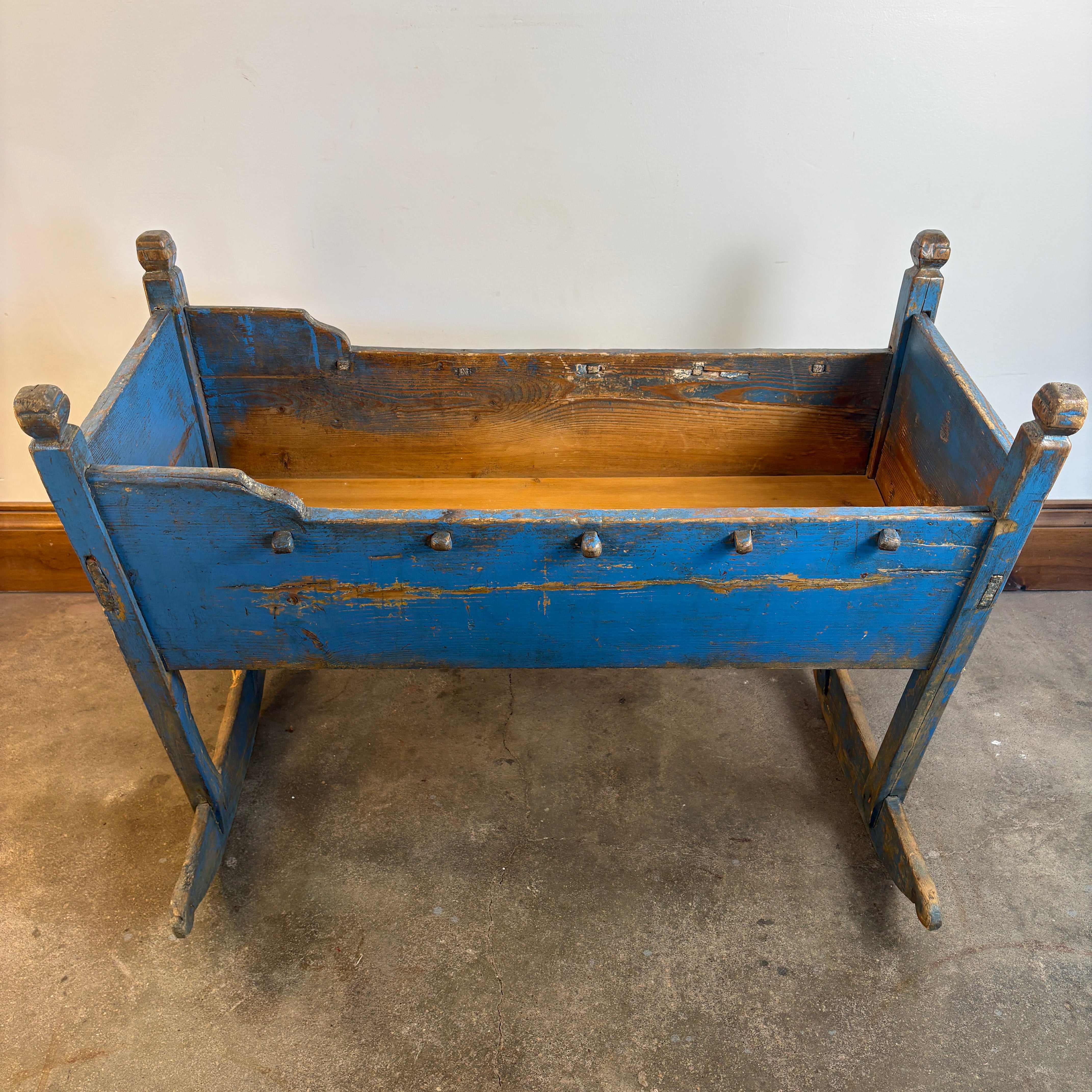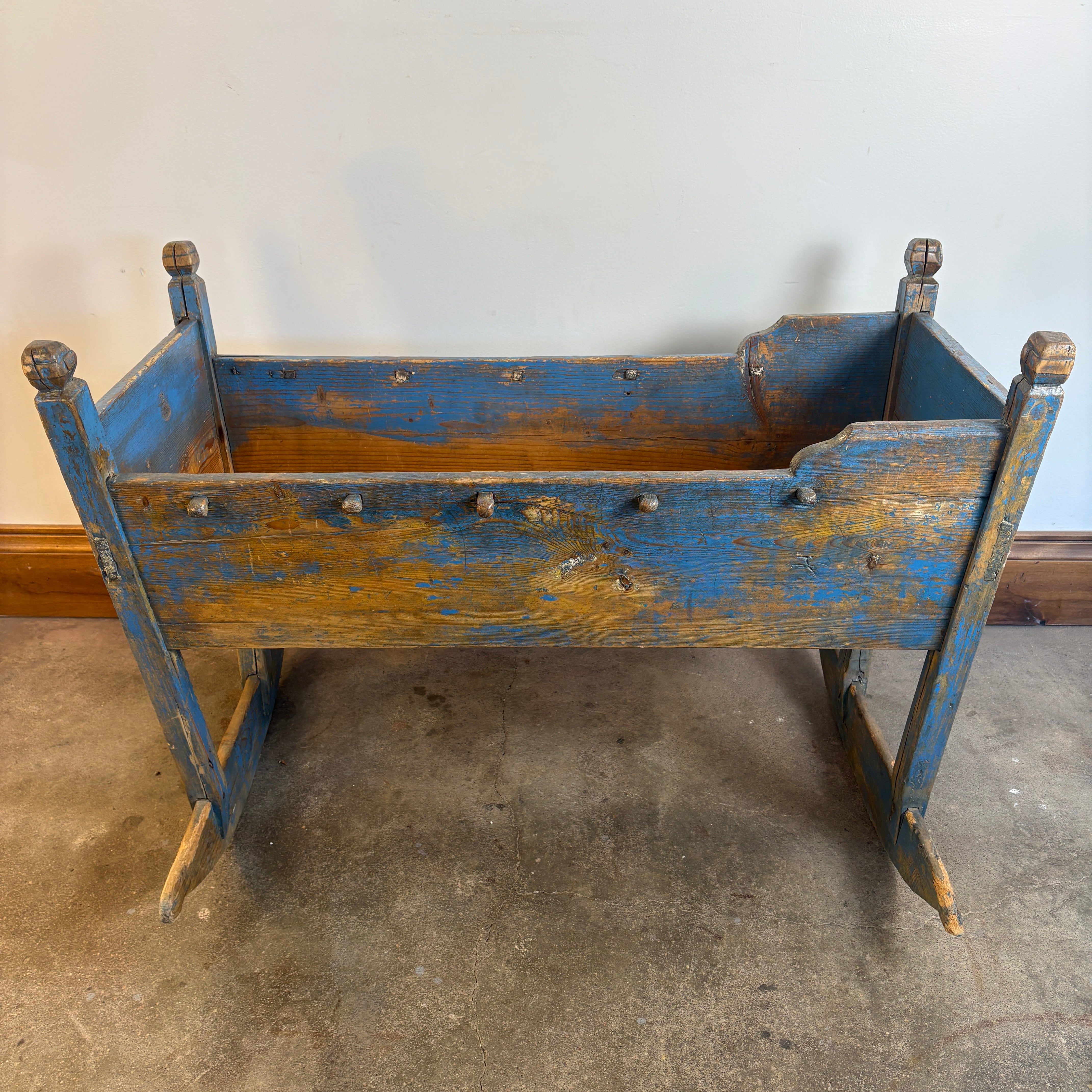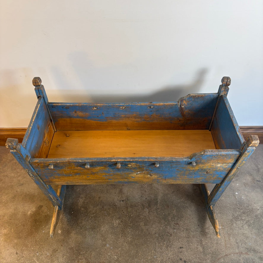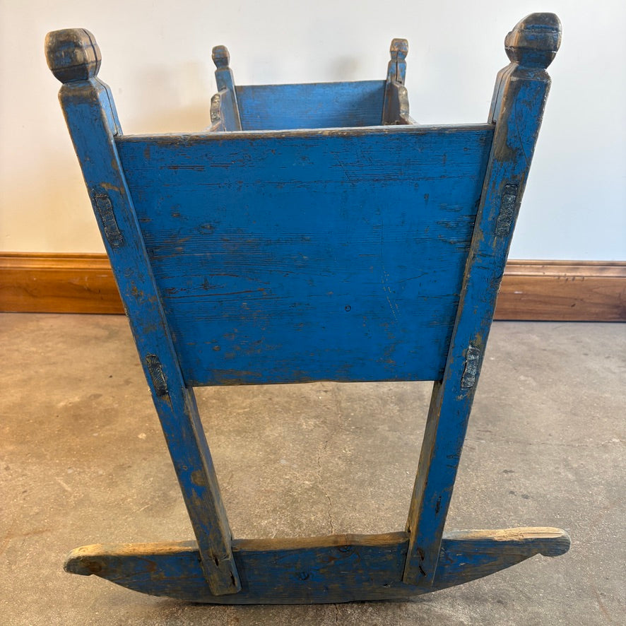 Primitive Wood Baby Cradle with Time Worn Blue Paint