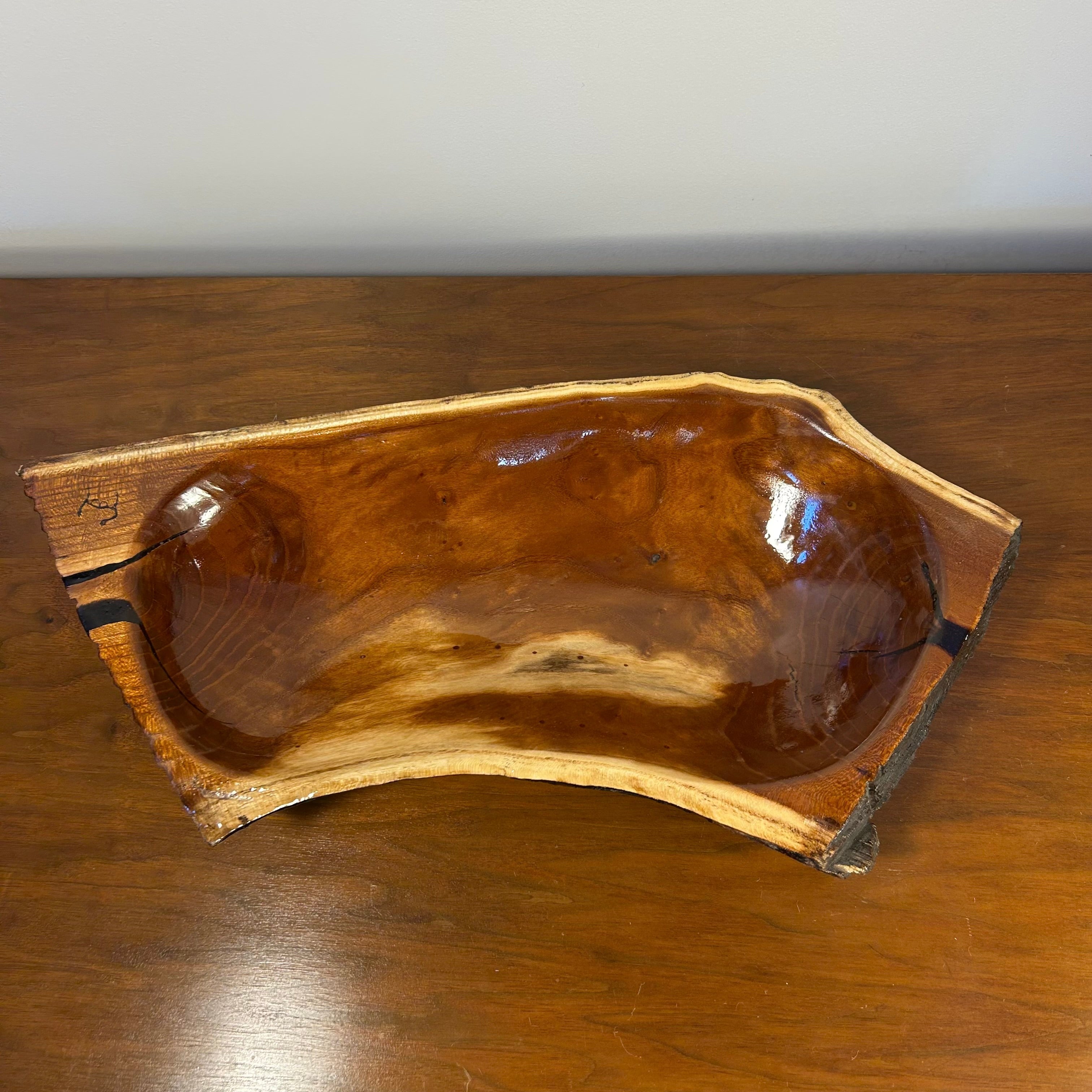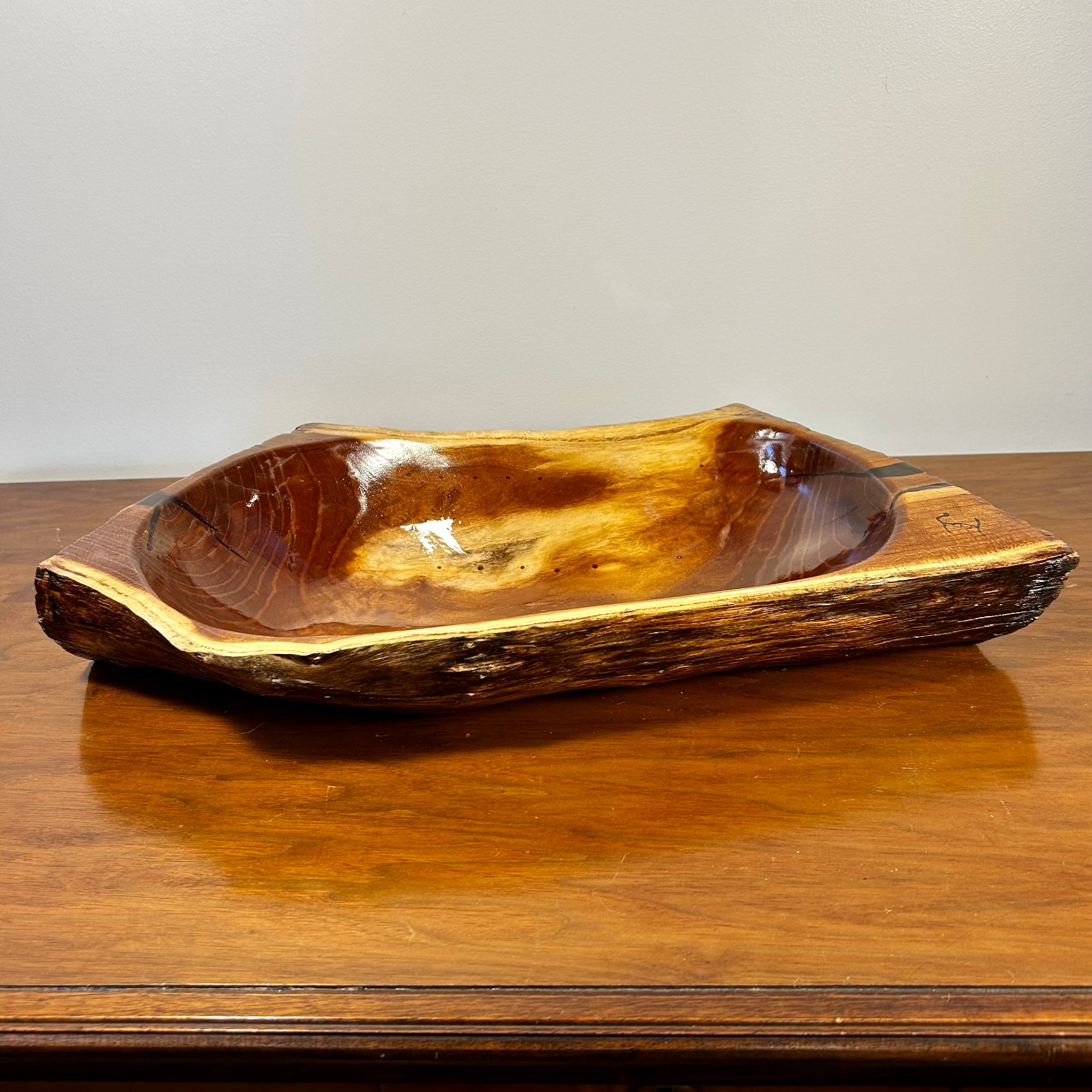 Primitive wood vessel, hand crafted by Nebraska wood worker, signed by artist.