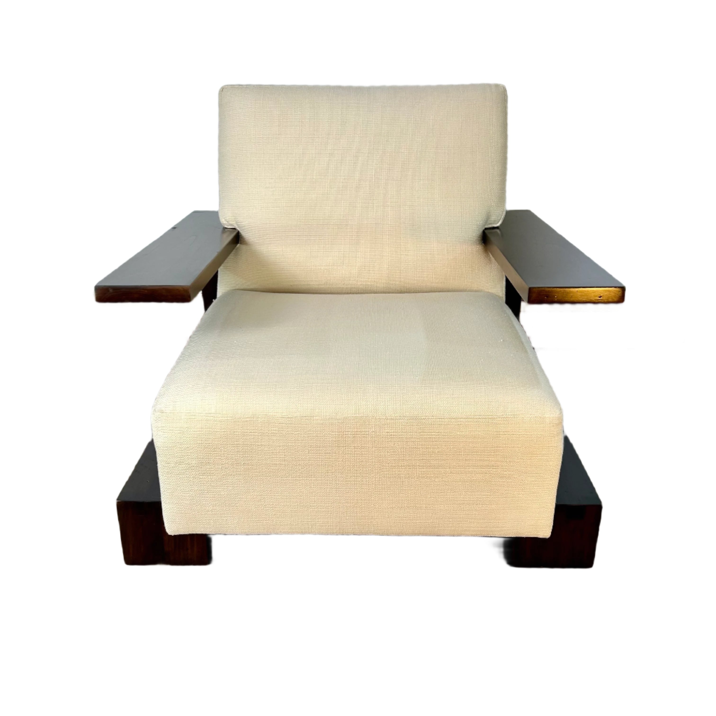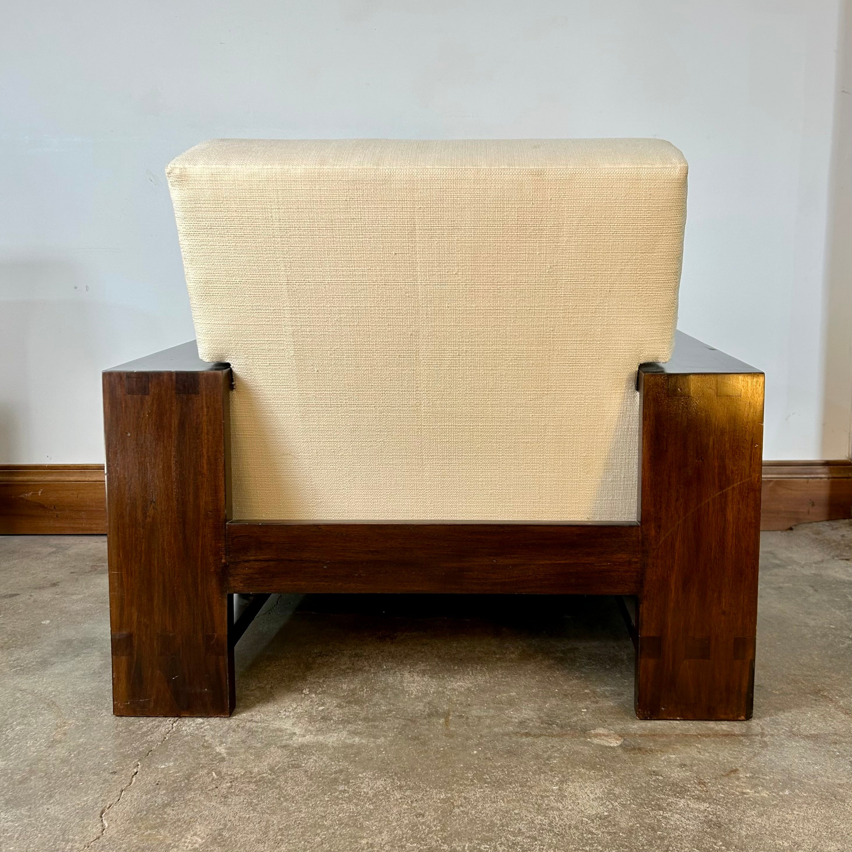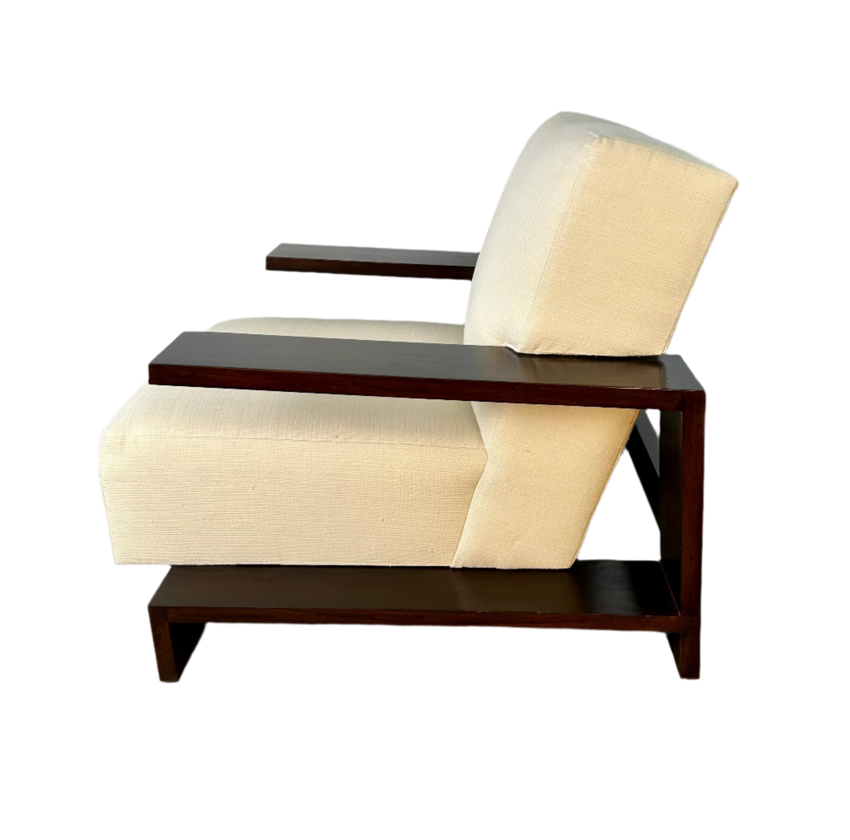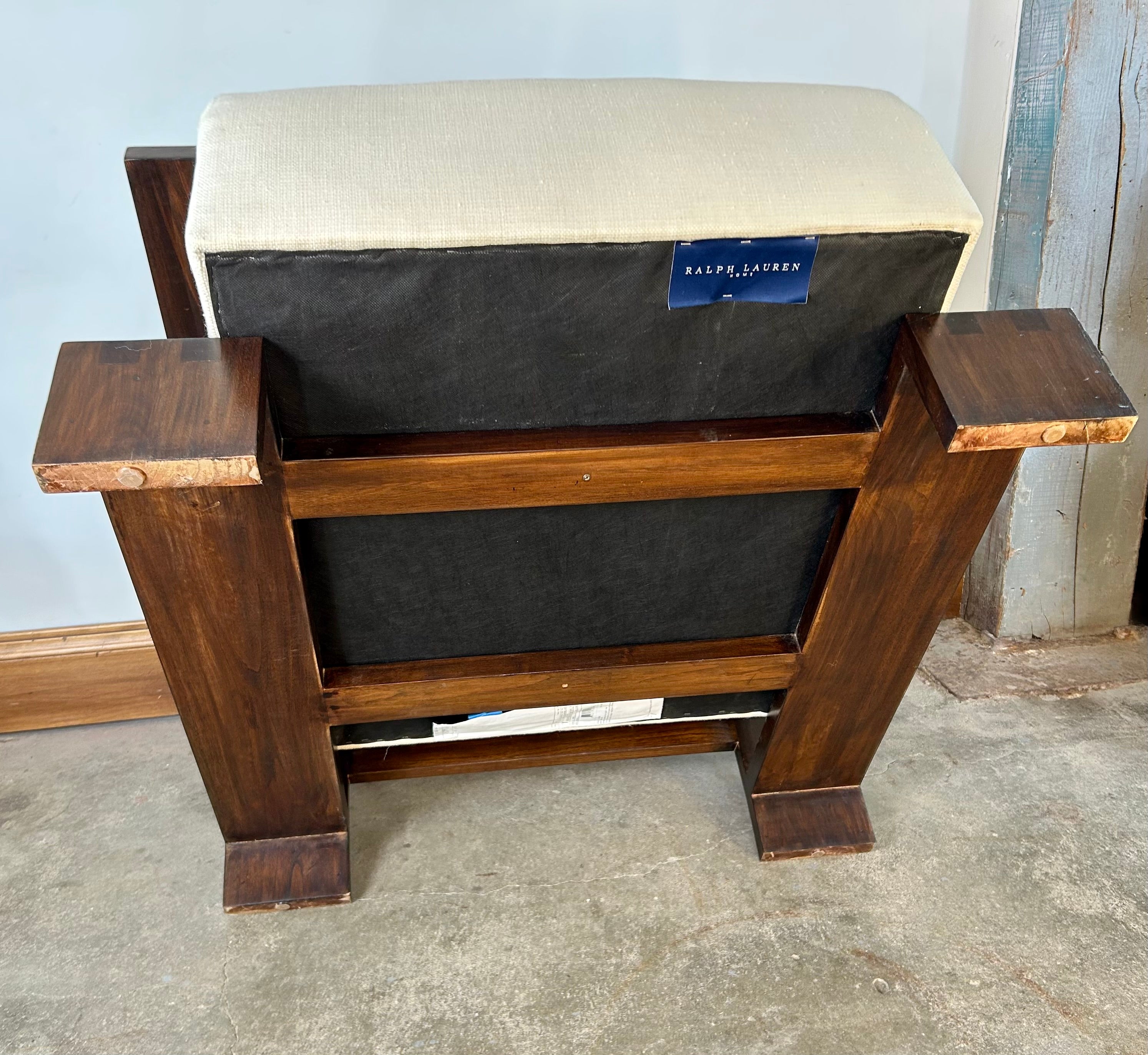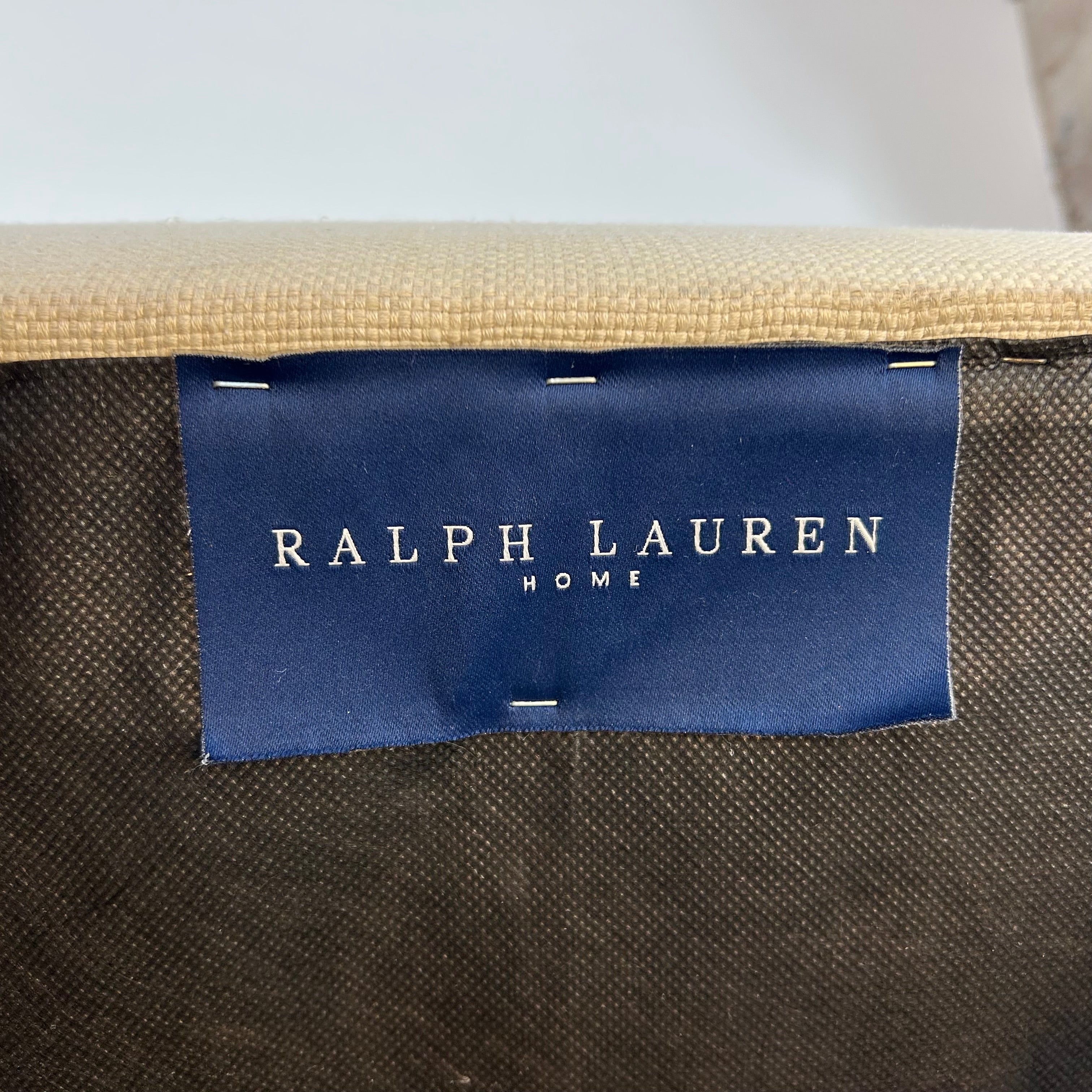Henredon for Ralph Lauren Bryant chair, linen-like fabric and burnished mahogany wood.