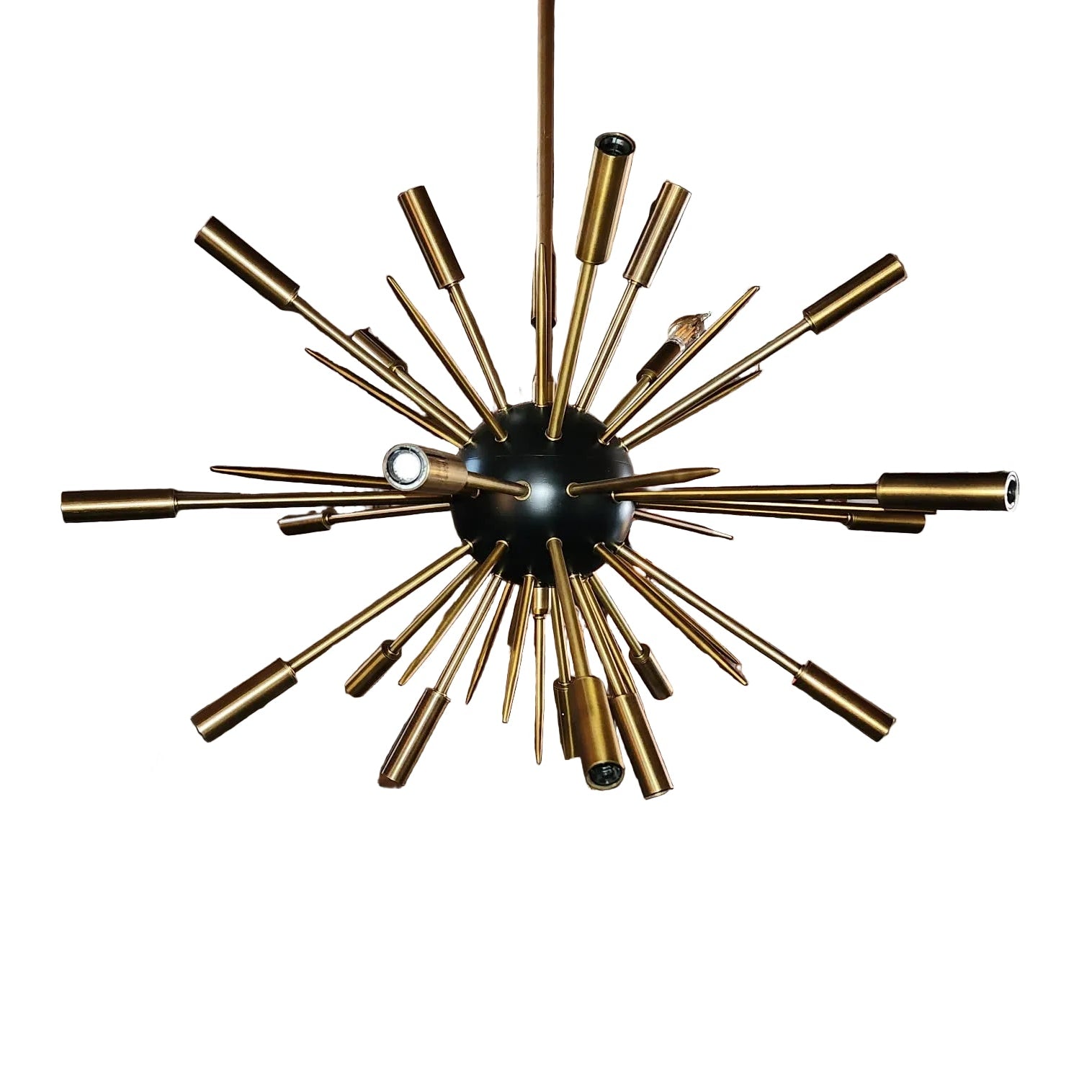 Regina Andrew Fine Lighting Sputnik Style Chandelier in Brass with Black Center Ball.