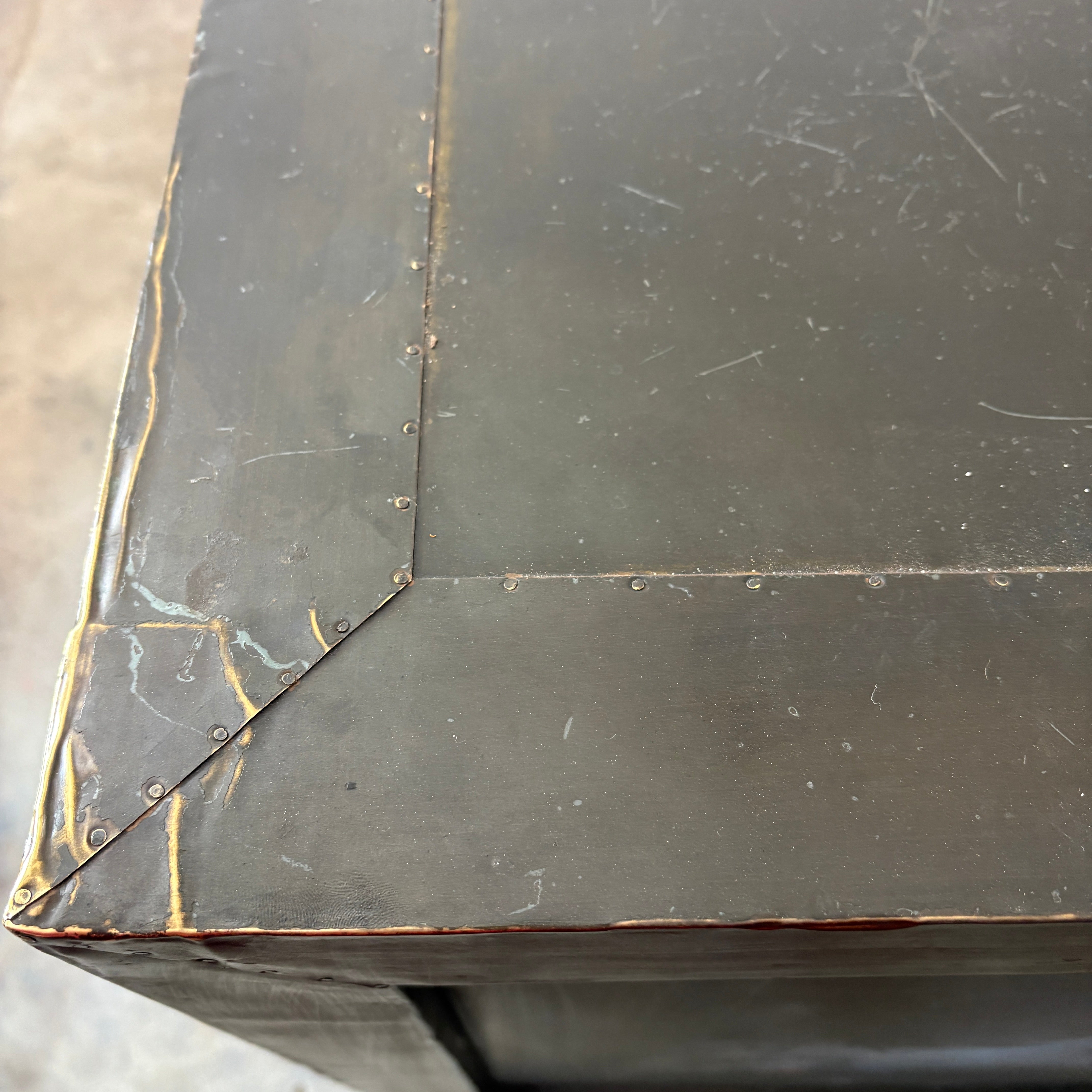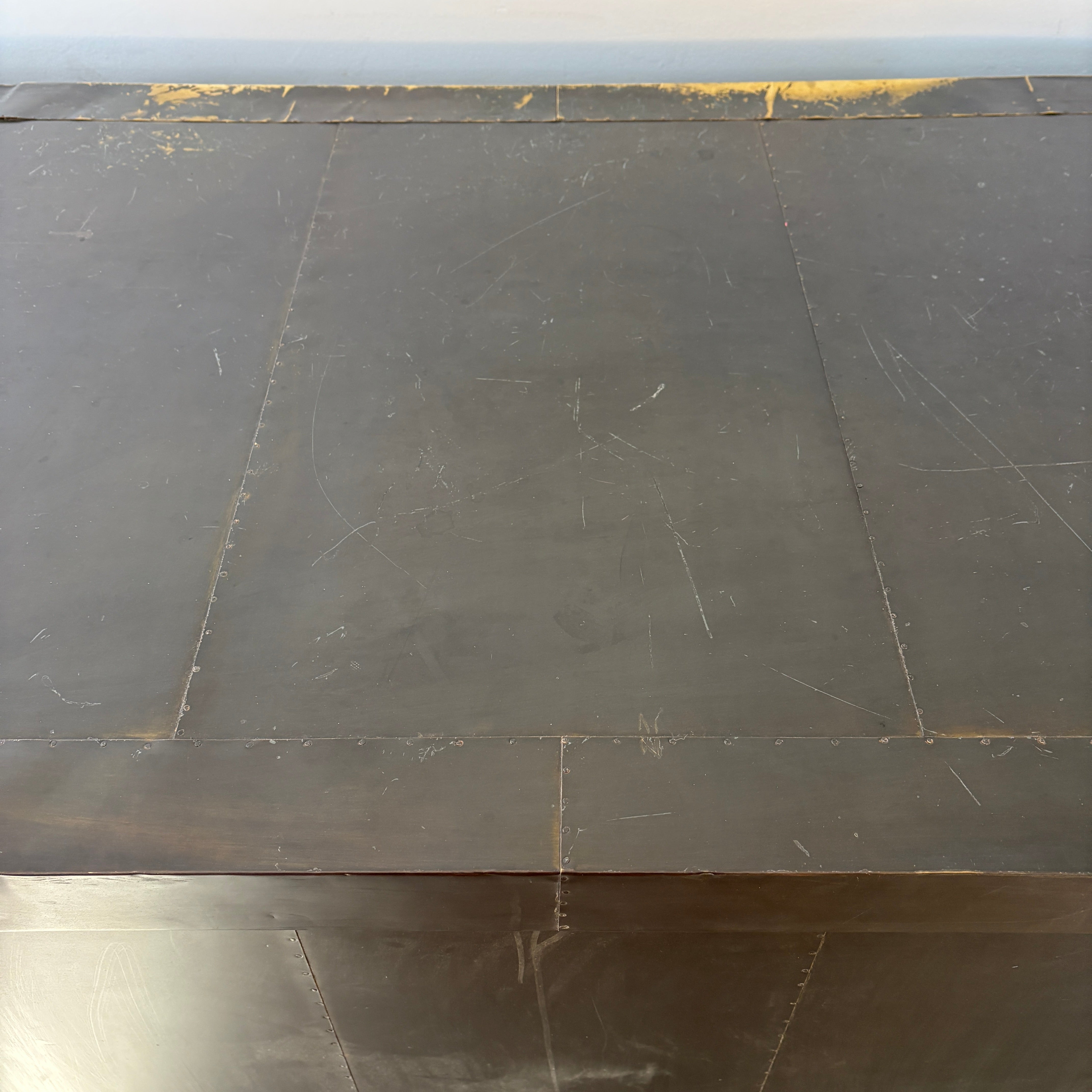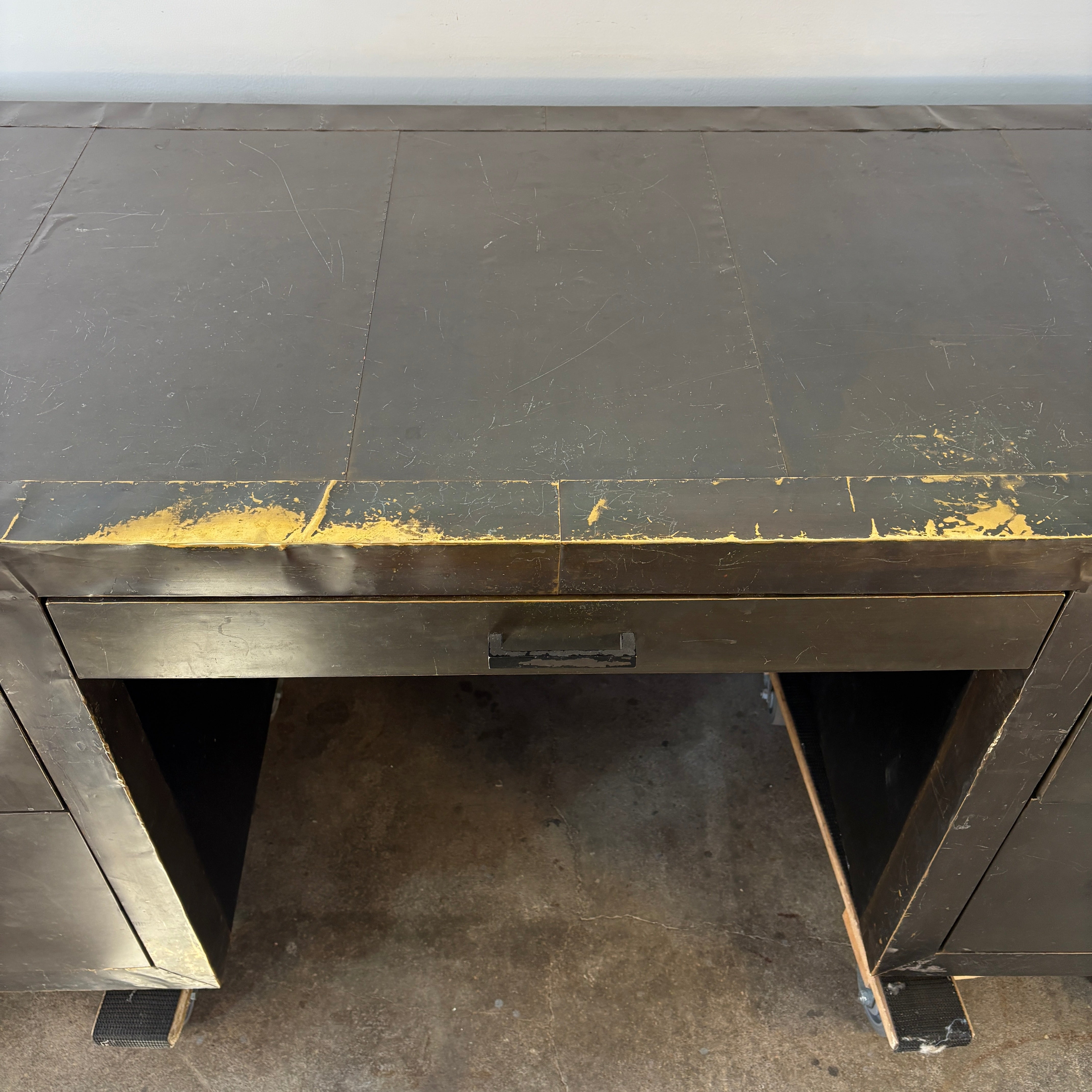Restoration Hardware, RH Metal Wrapped Desk with Aged Patina and 7 Drawers.