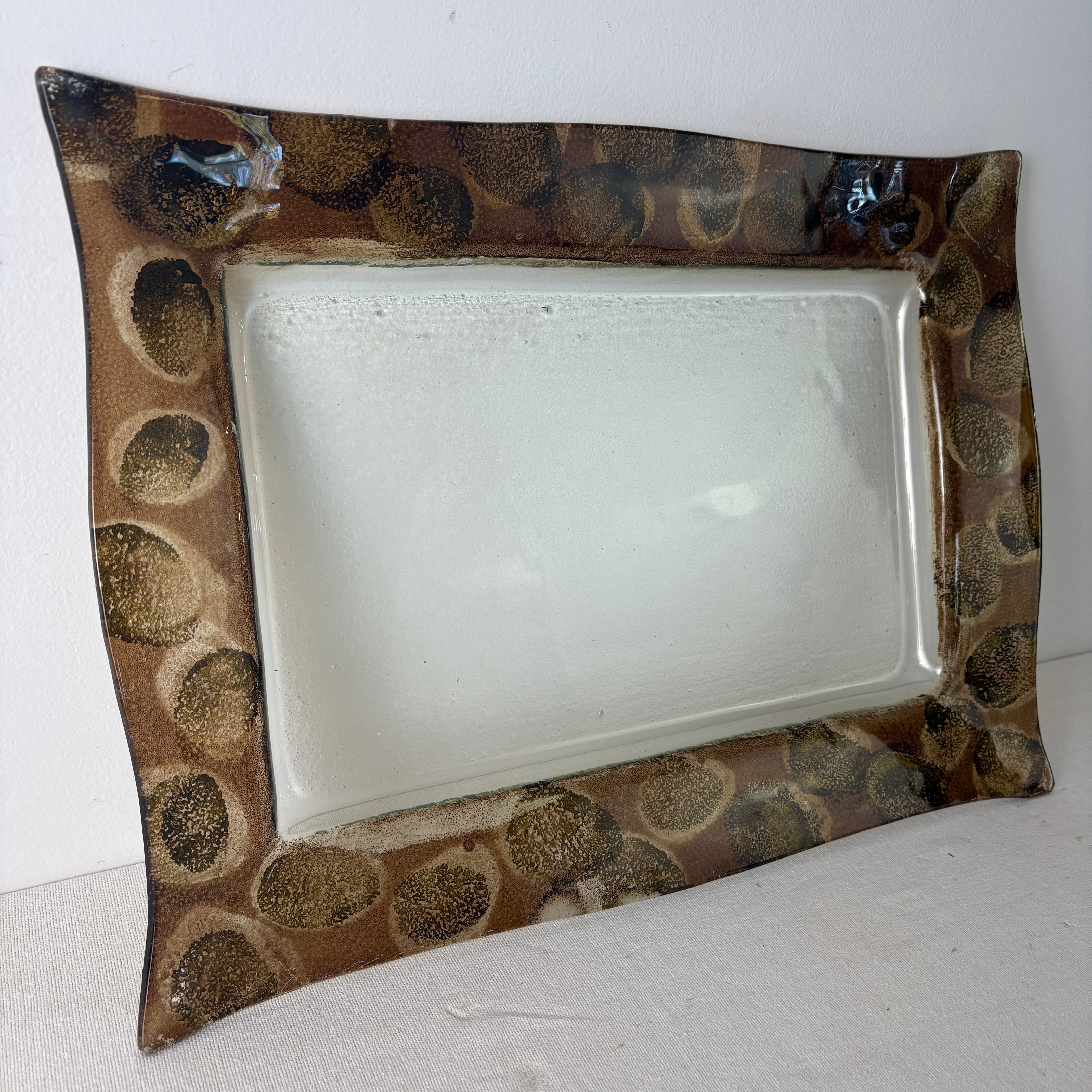 Reverse Painted Glass Tray, Brown Toned Edge Detail and Clear Interior.