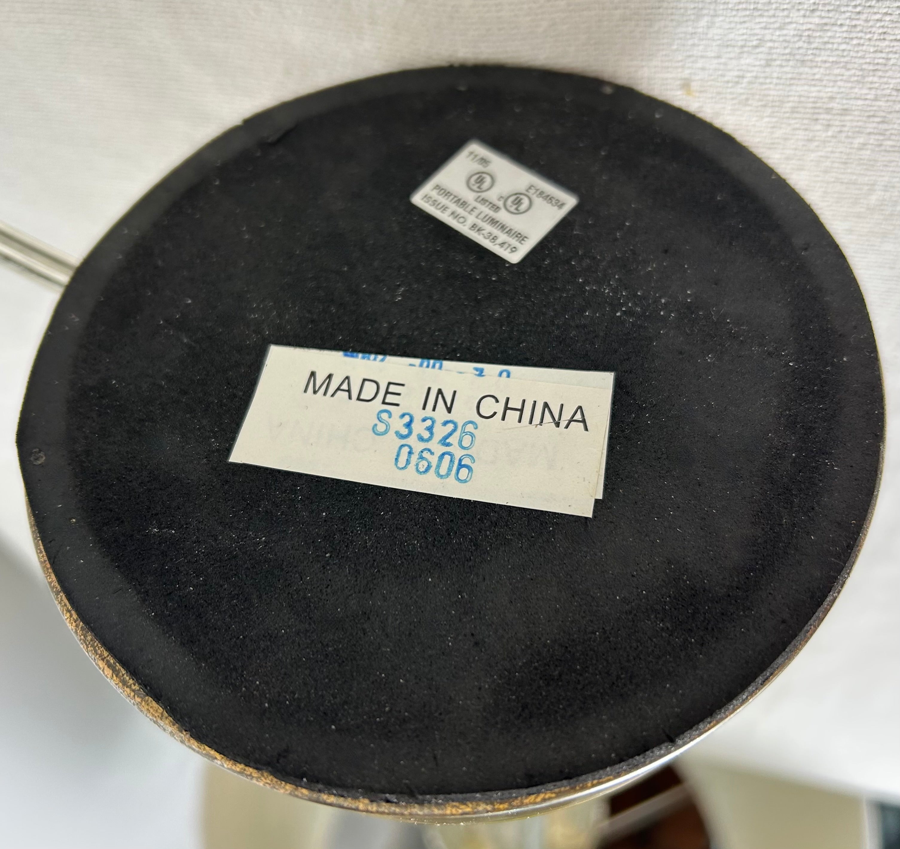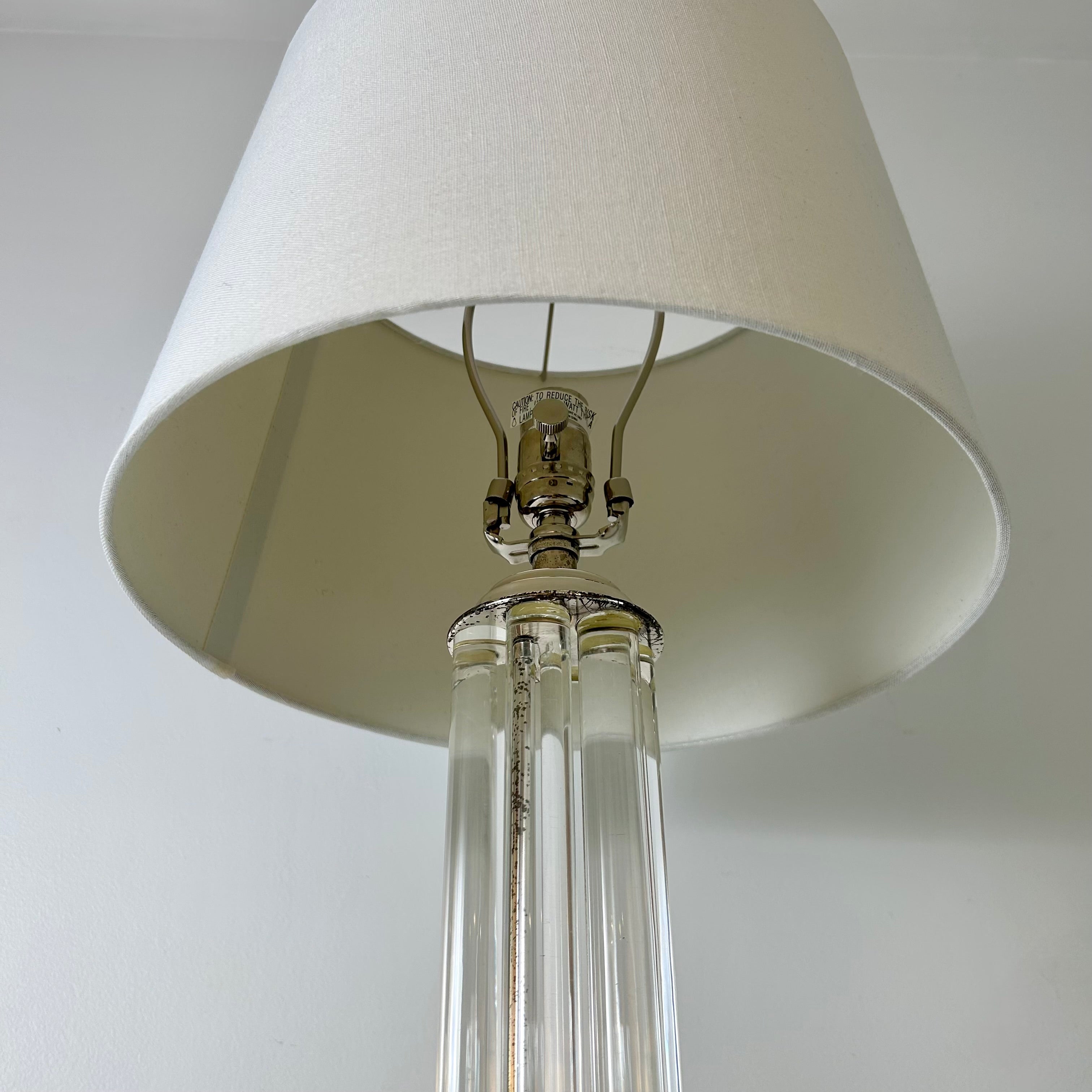 Robert Abbey glass rod and silver table lamp with linen shade.
