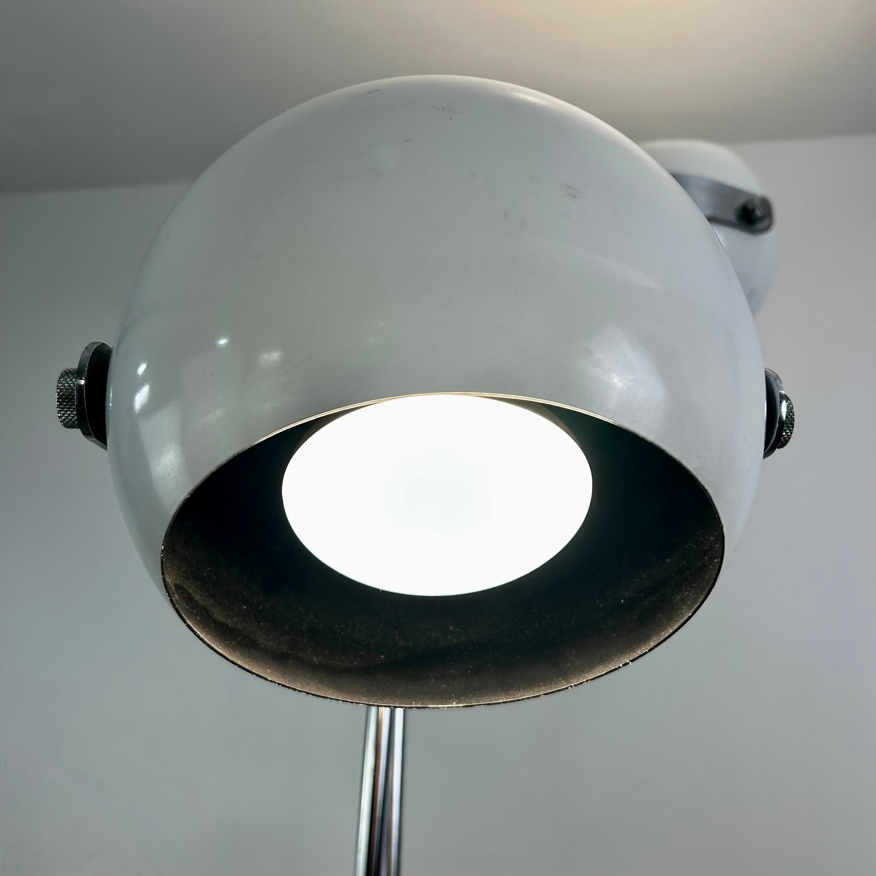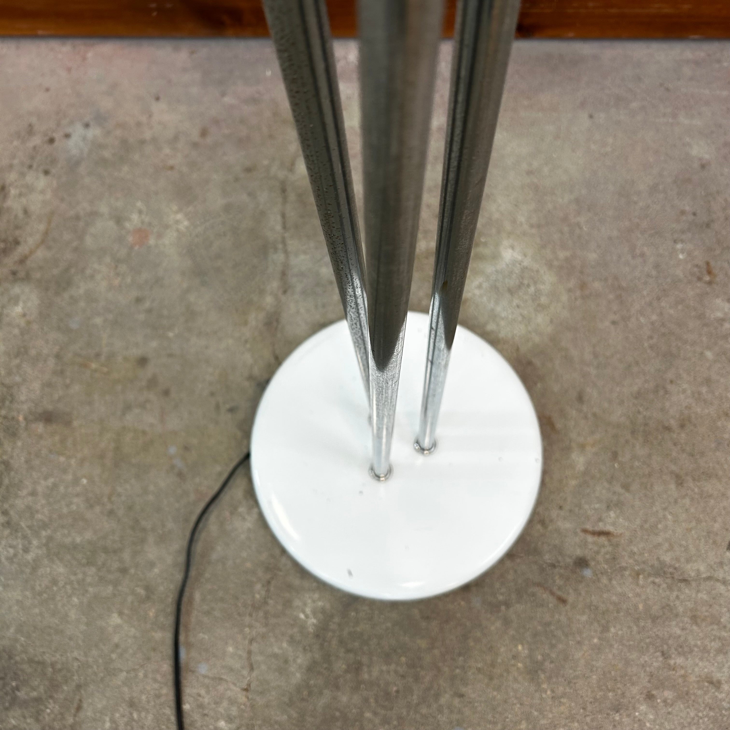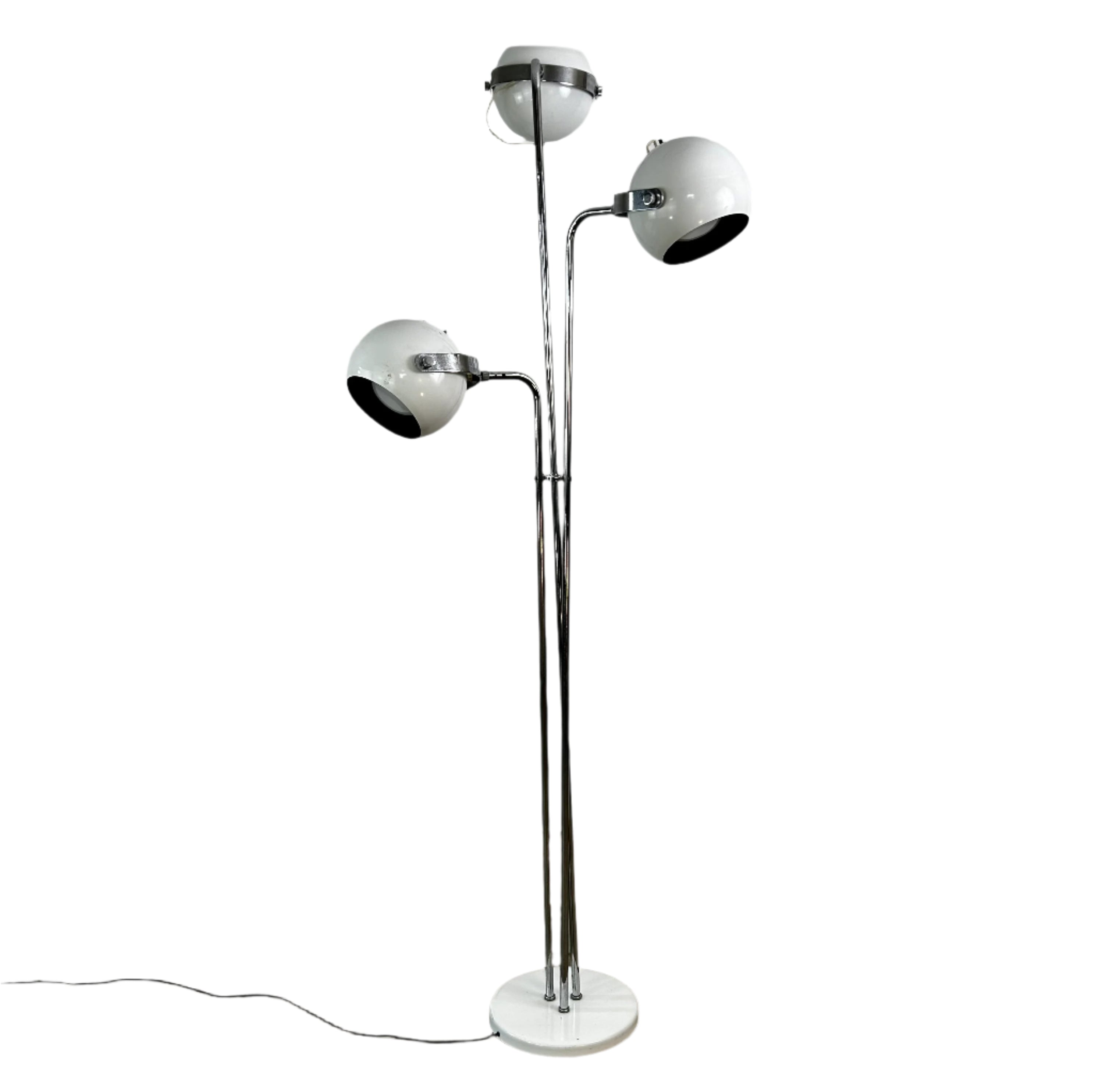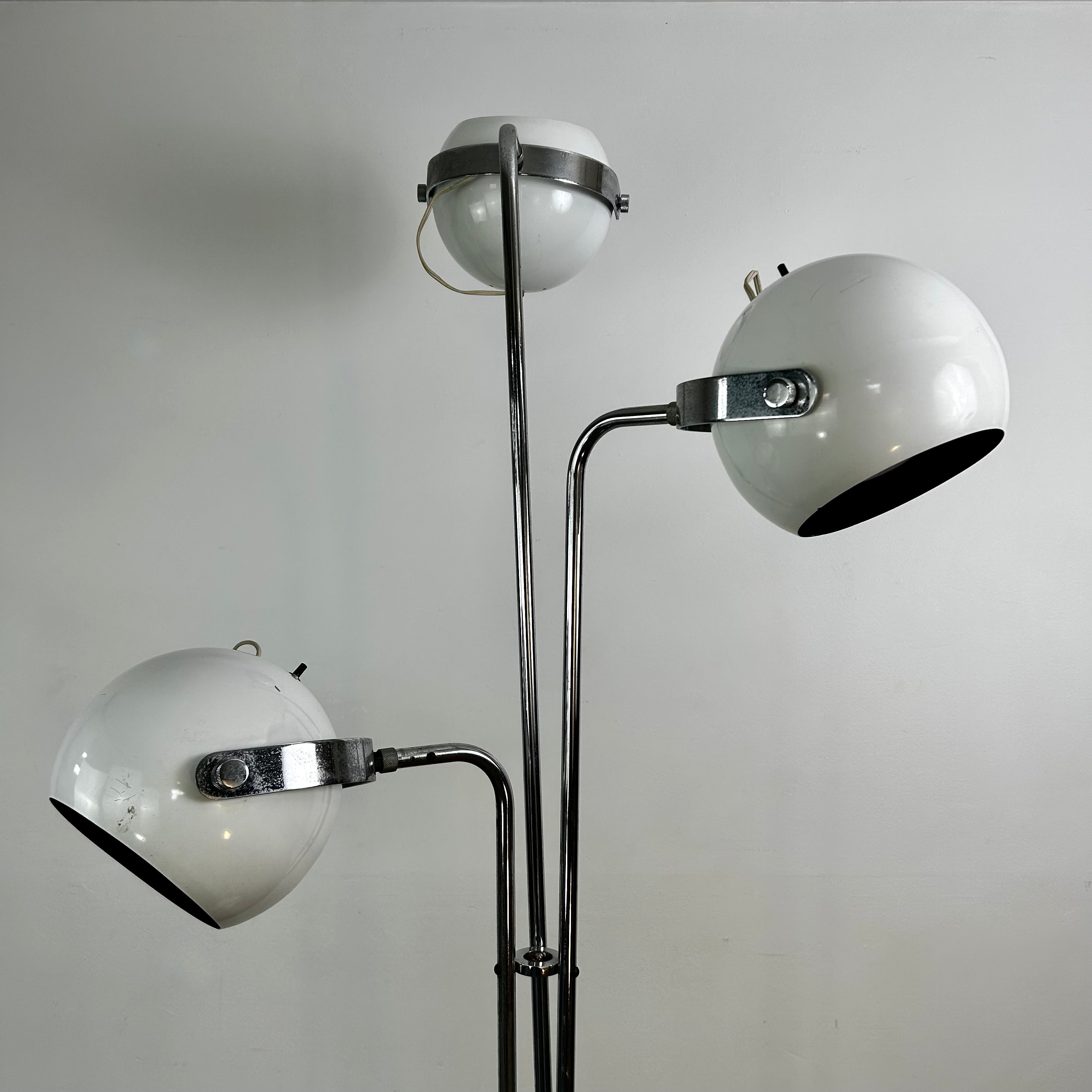 Vintage Robert Sonneman three arm floor lamp metal orbs white enamel & chrome circa 1970's, oscillating.