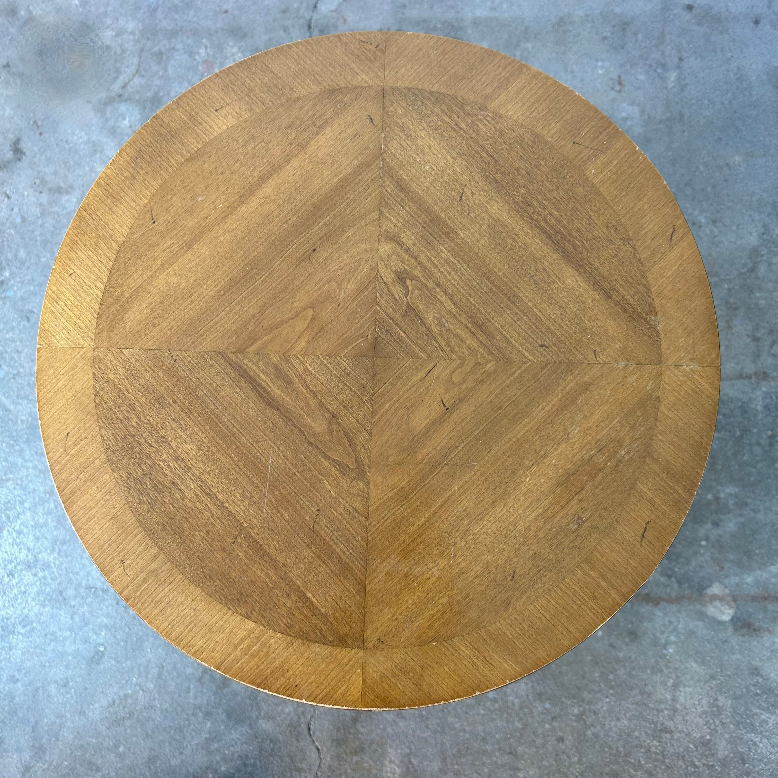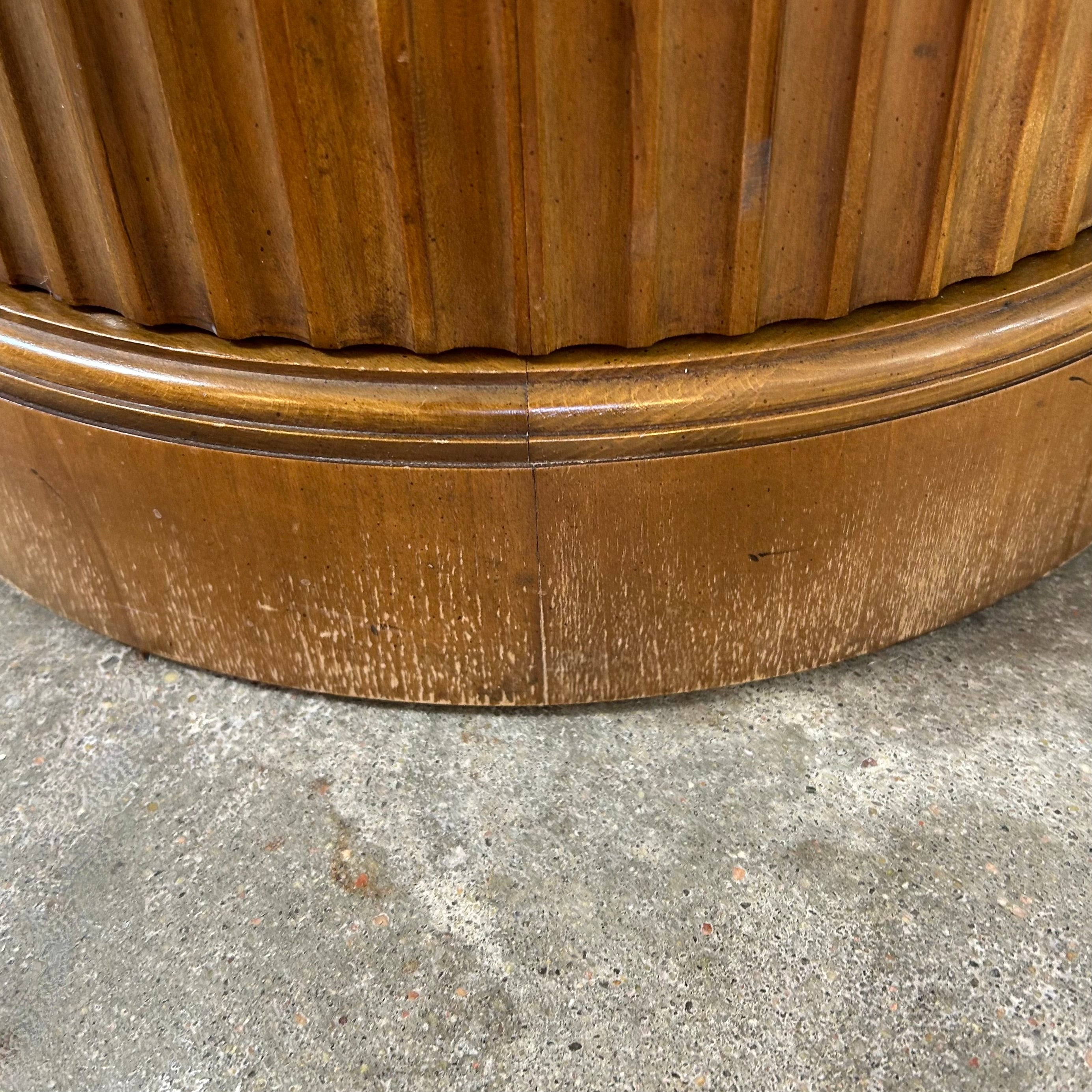 Side cabinet, round drum style end table with fluted base. Blond finish, brass hardware.