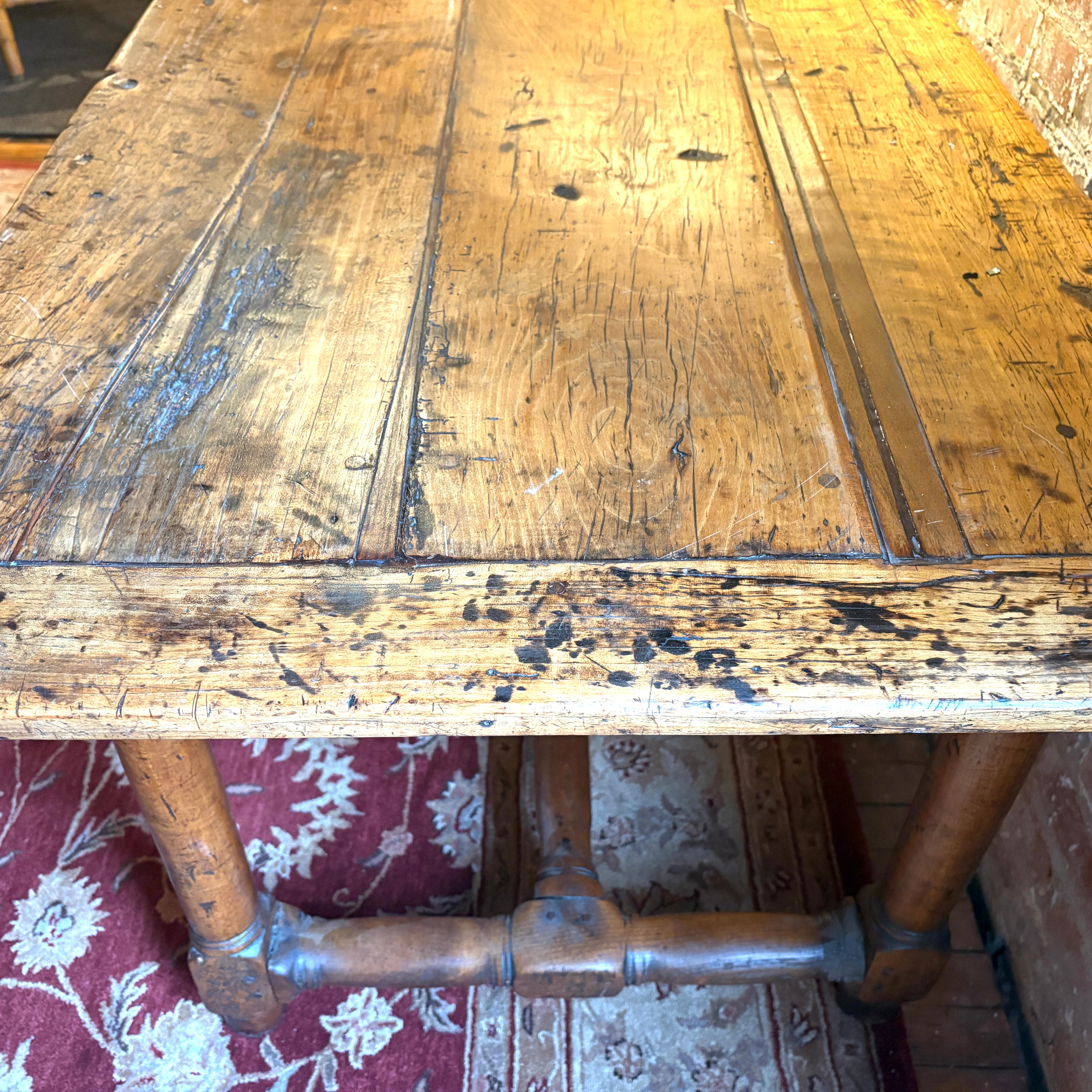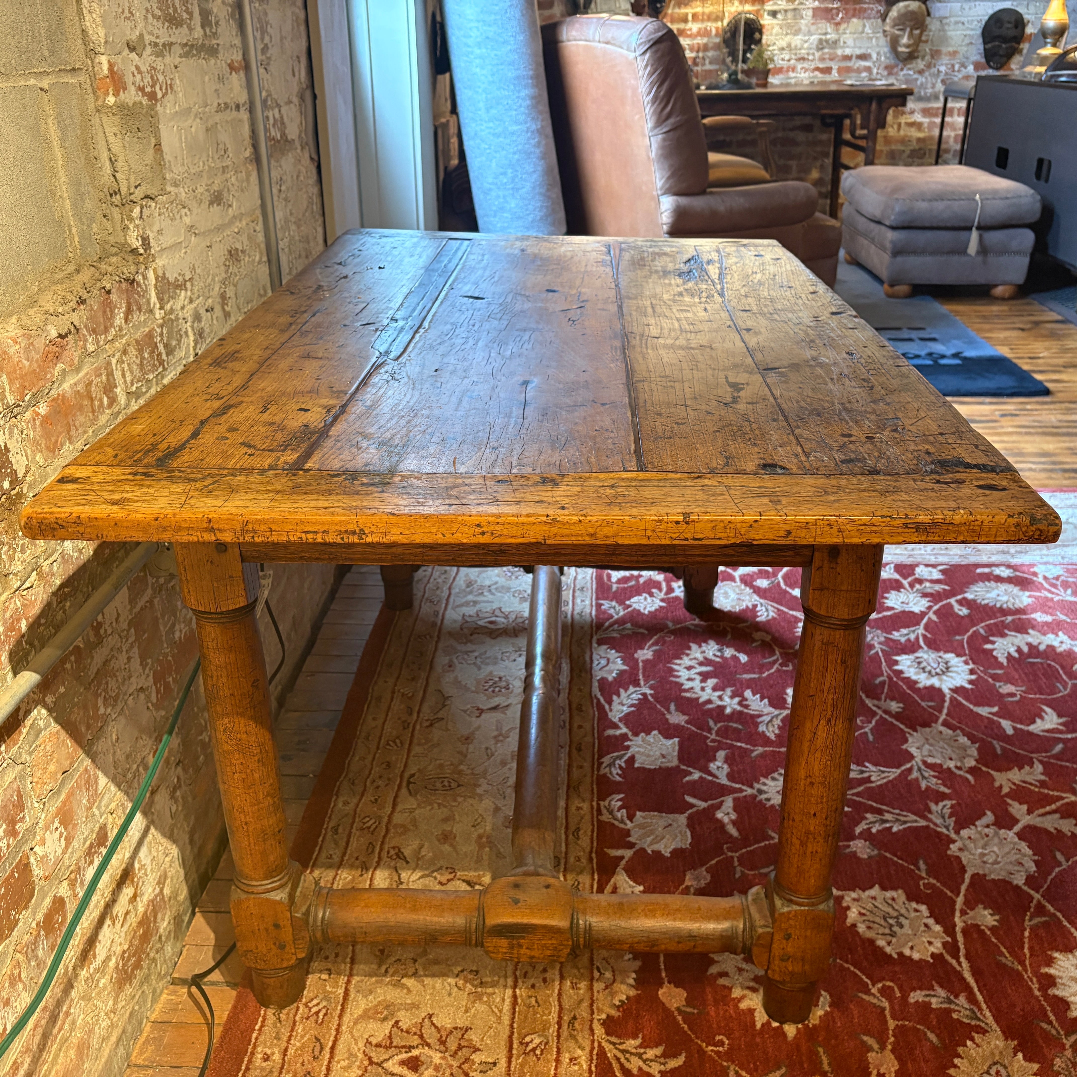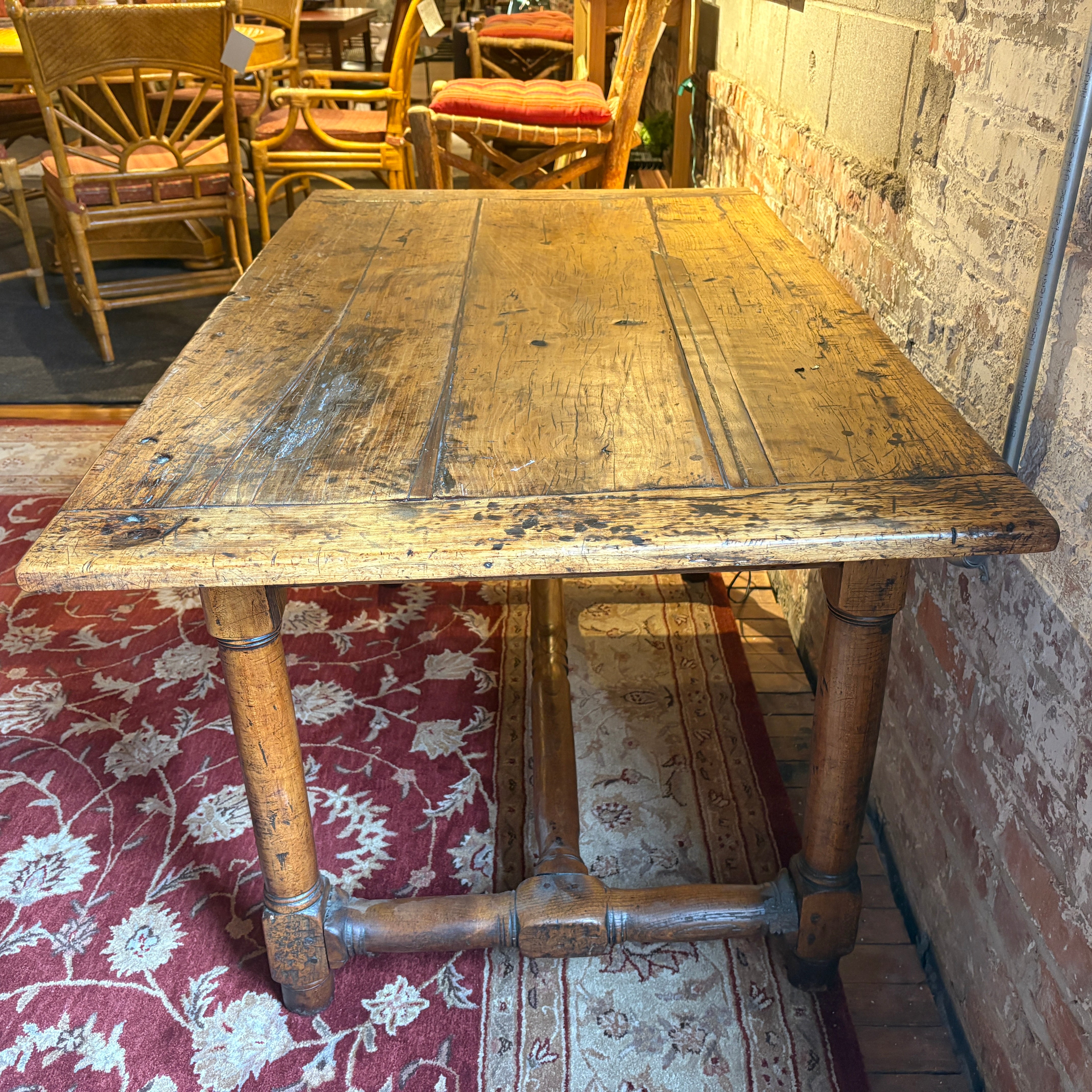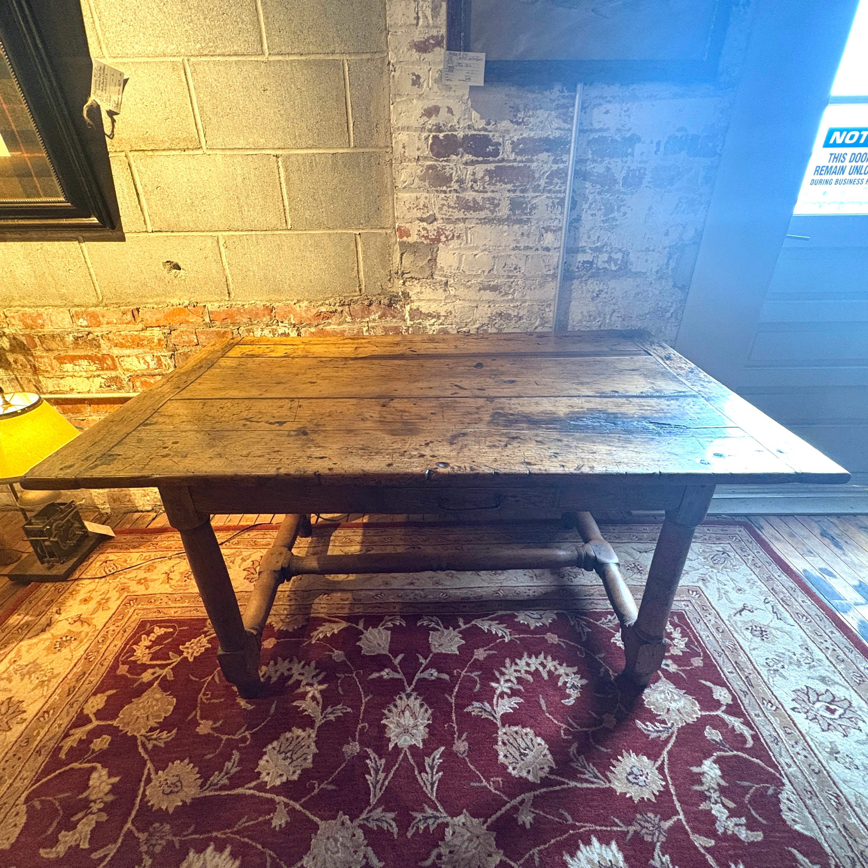 Rustic Solid Wood Antique Trestle Table with Drawer.