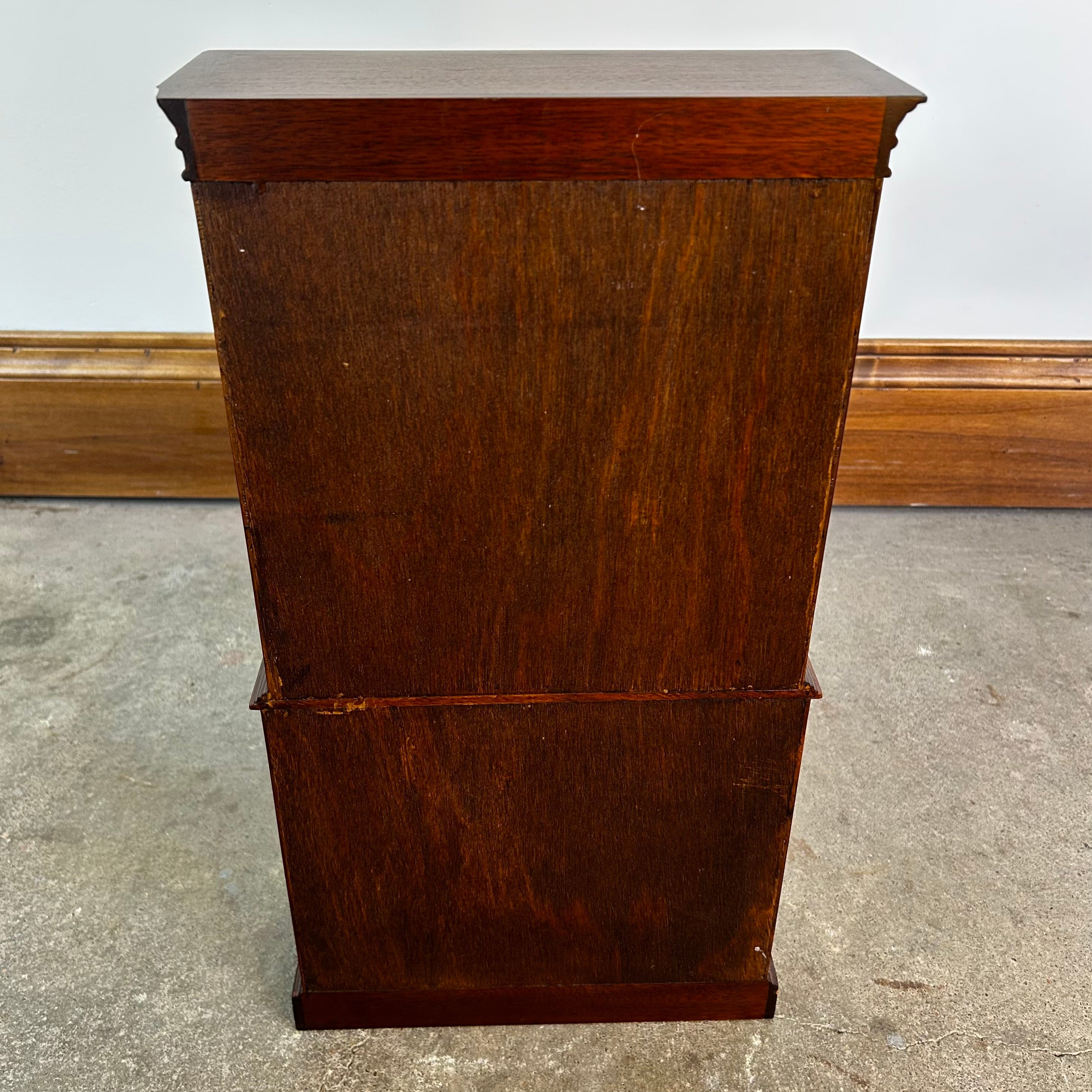 Selamat Designs Miniature Furniture octagonal glass detail breakfront cabinet in mahogany wood. Made in Indonesia.