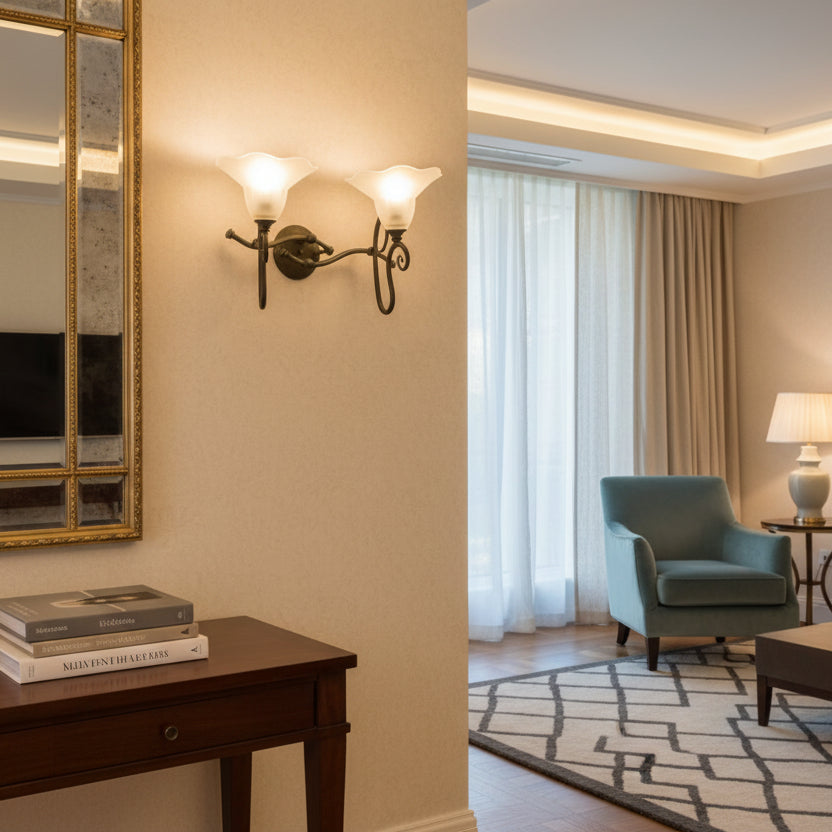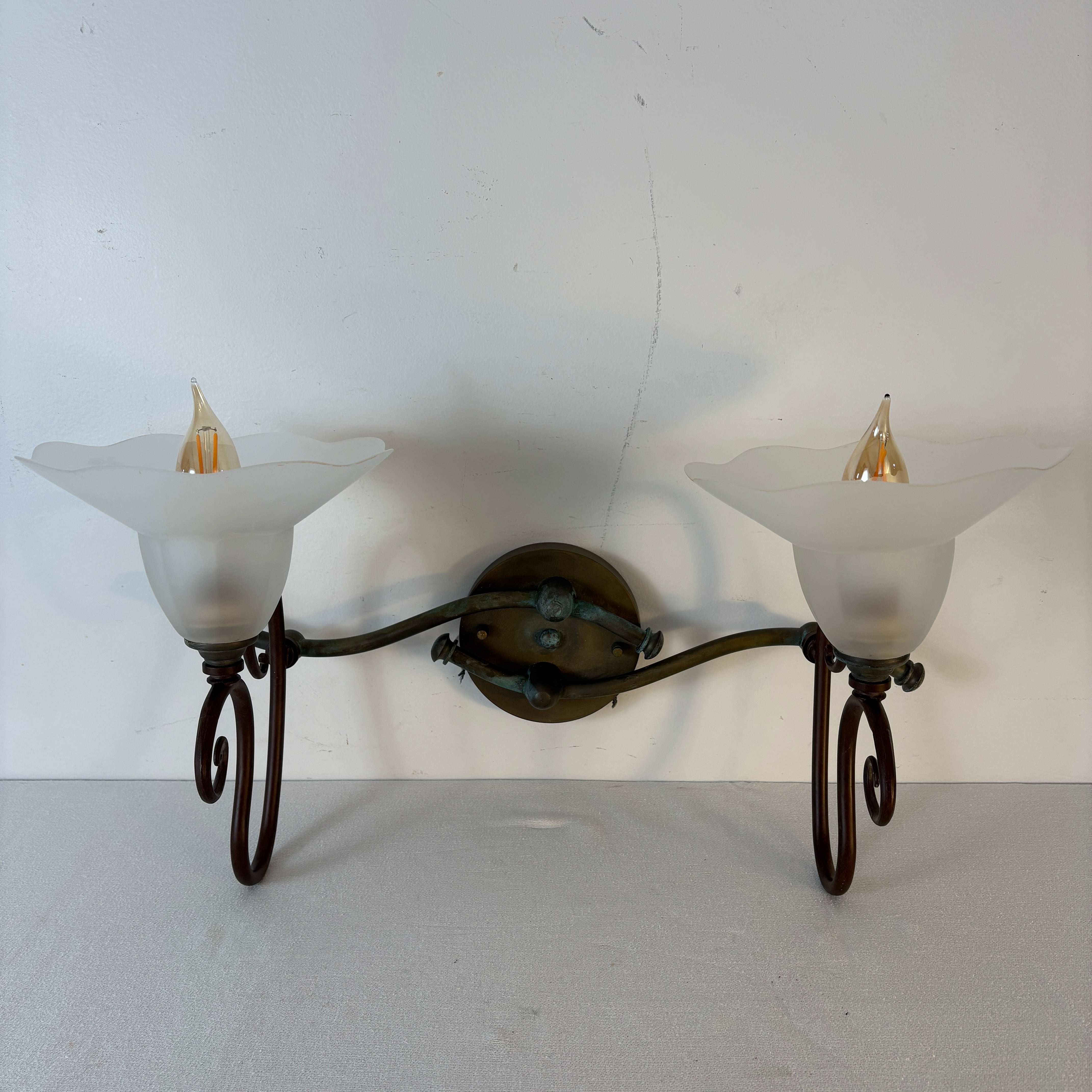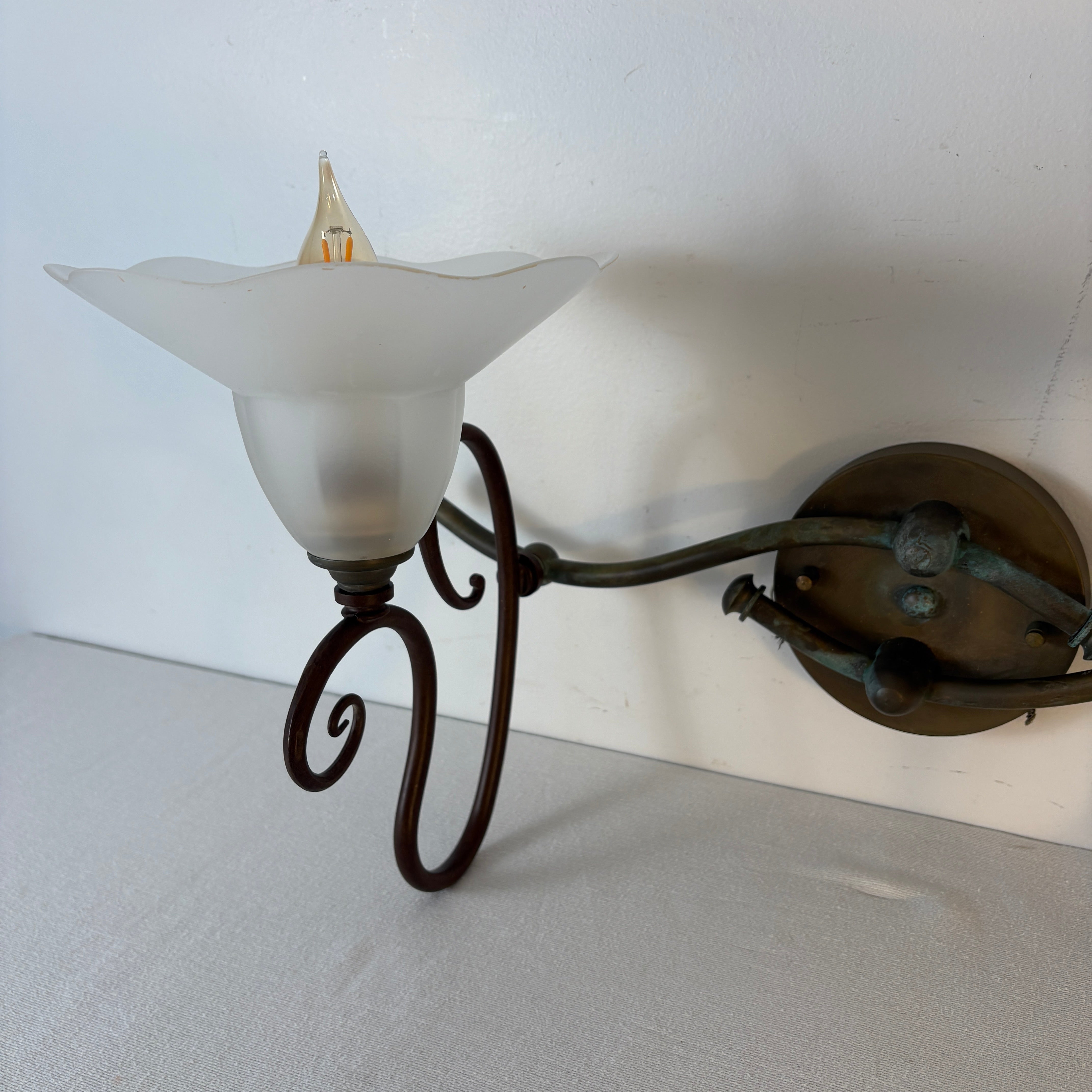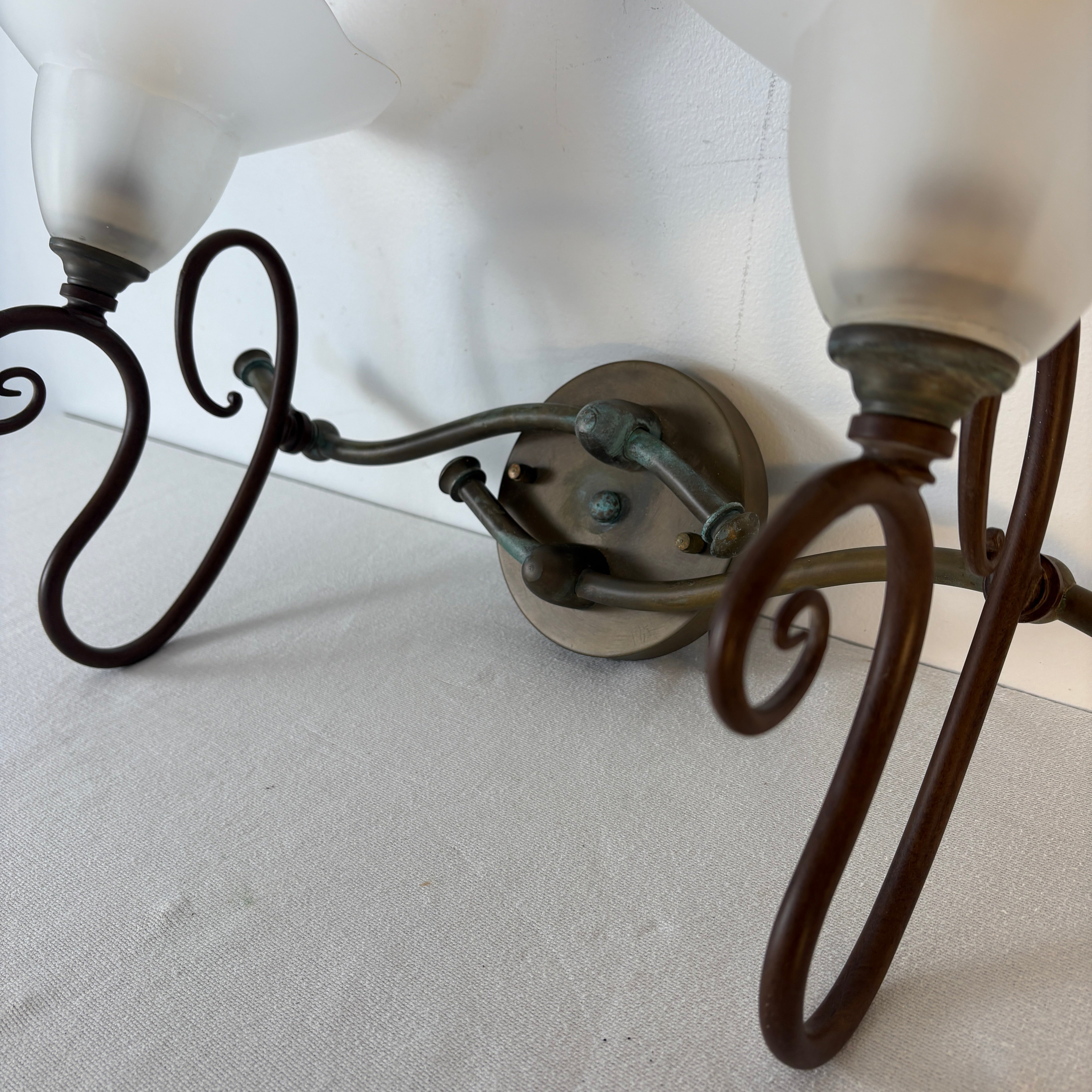 Sergio Terzani, Designer, Italian Wall Lights with Double Arm and White Frosted Tulip Glass Globes.