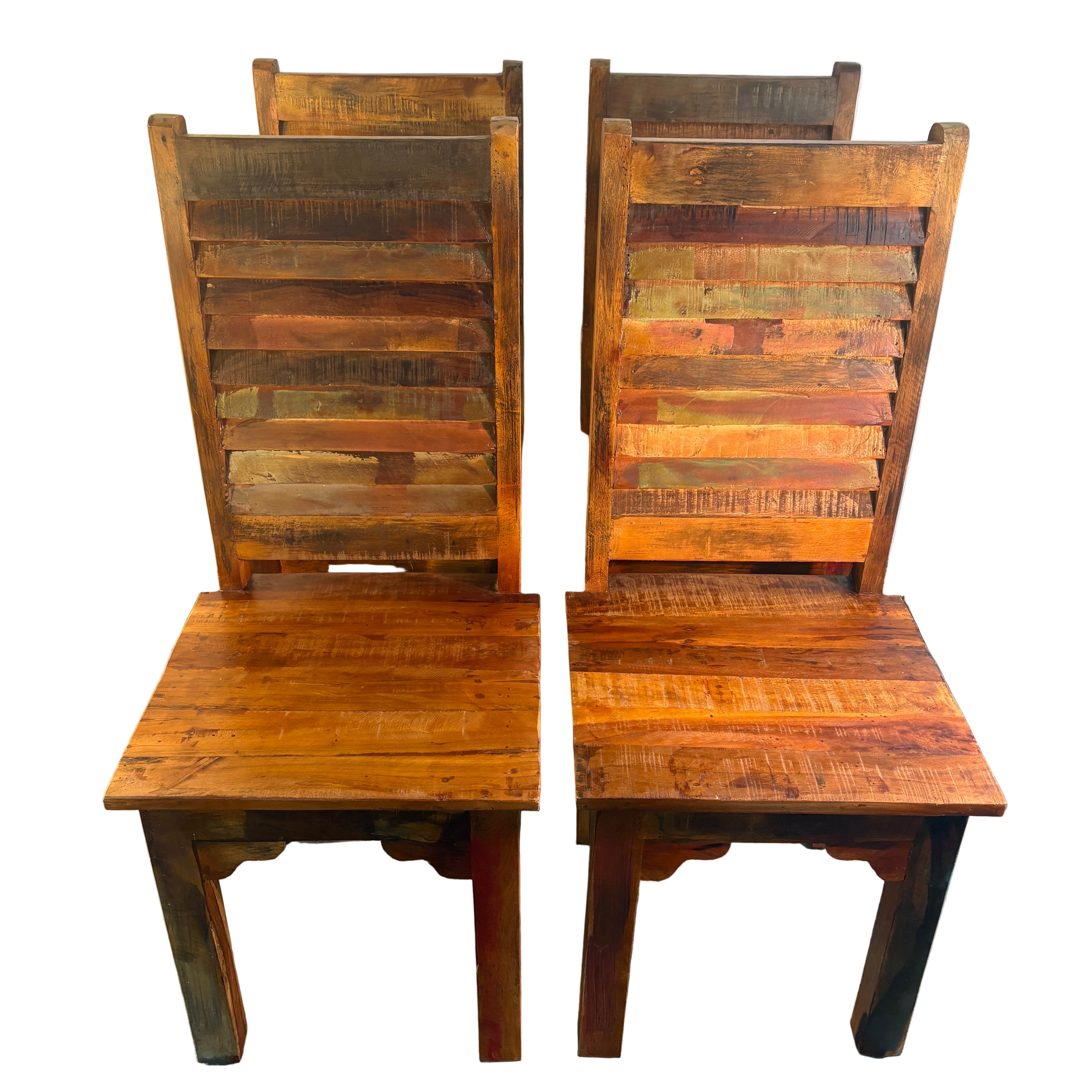 Dining Chairs - Shutter Back Style Side Chairs Primitive Patina made from Reclaimed Wood and each chair is Handcrafted. Price Includes Southwestern Fabric Pads. Sold as a set of four.