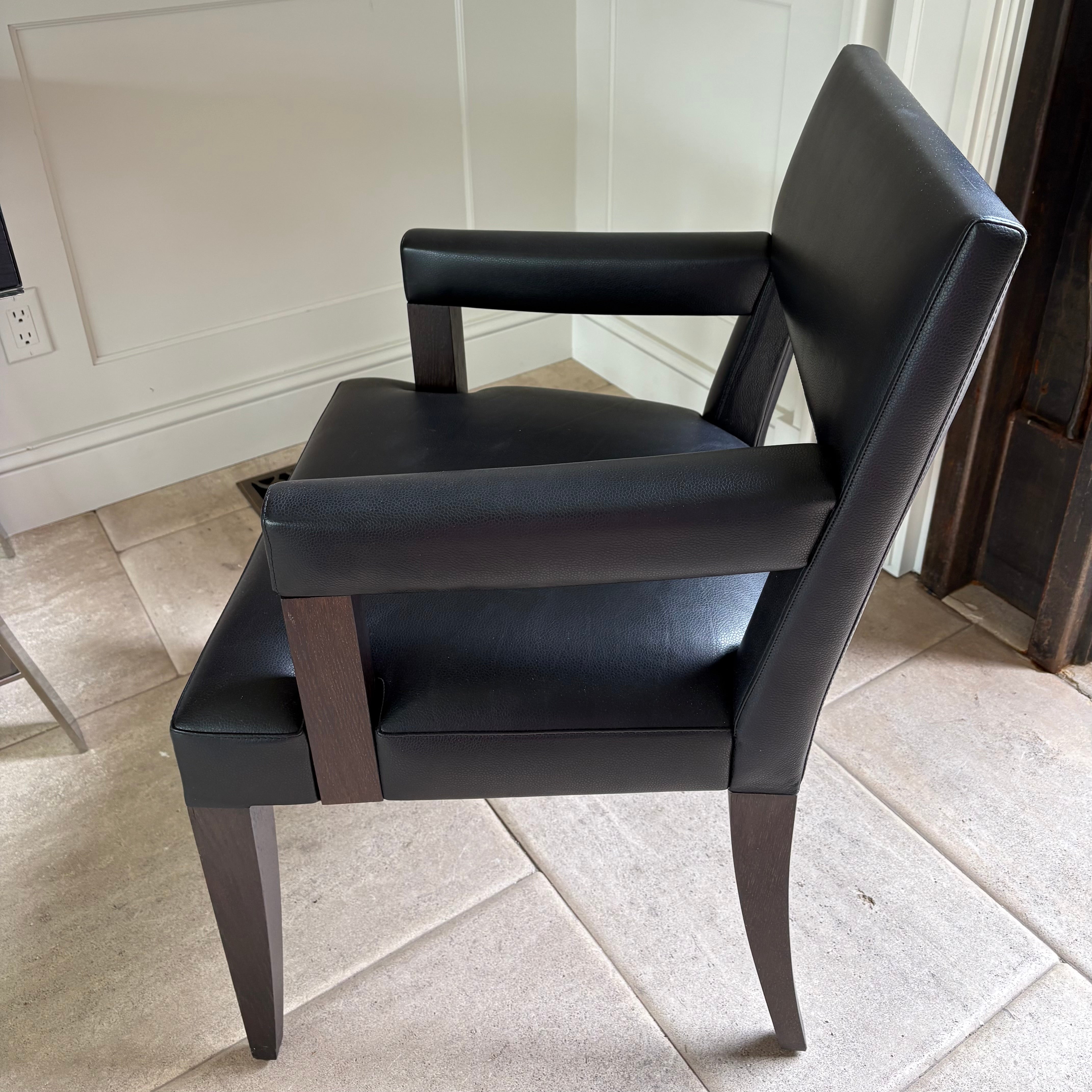 Accent chair, black leather with dark brown wood frame. Also ideal for an office area.