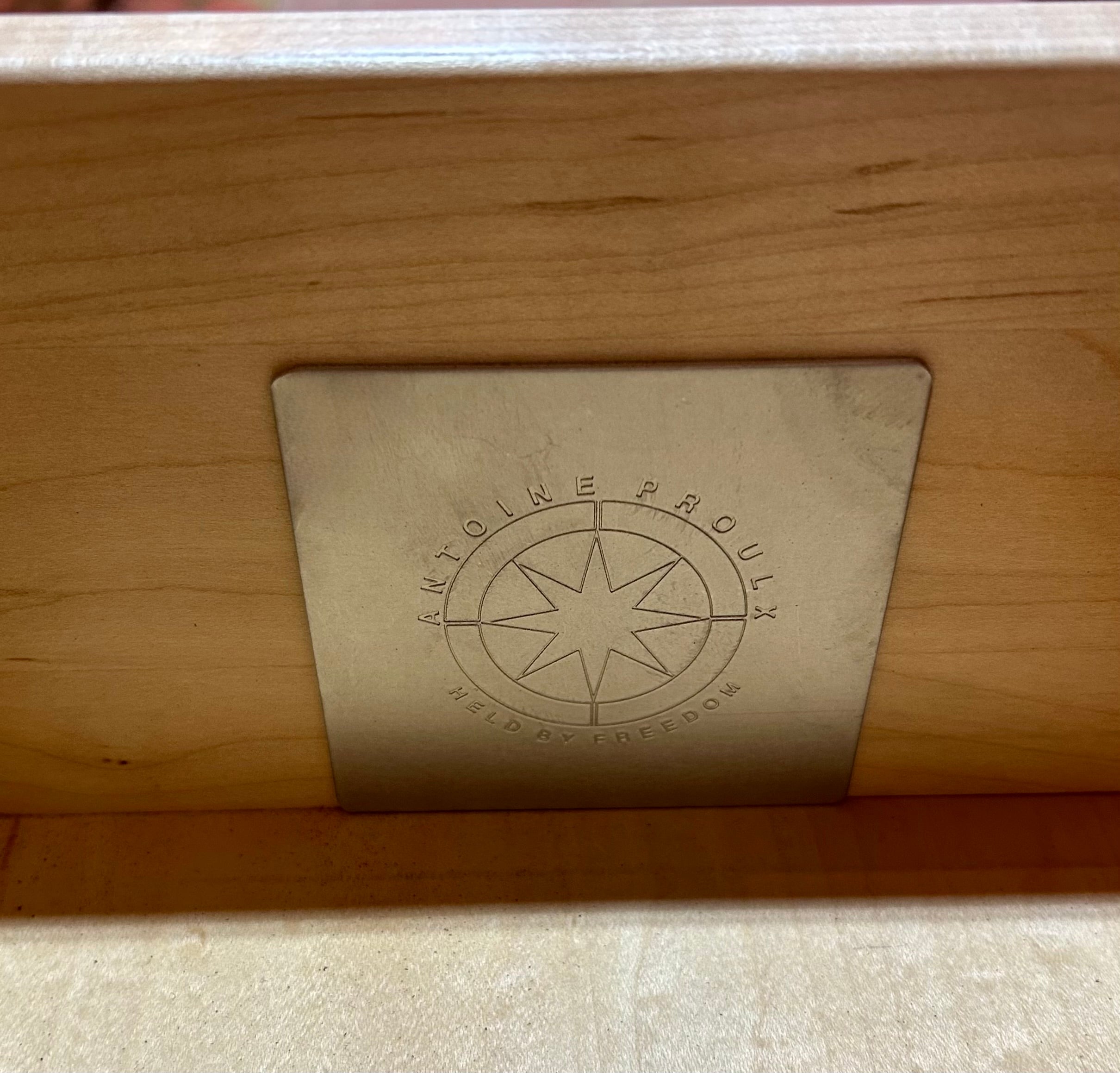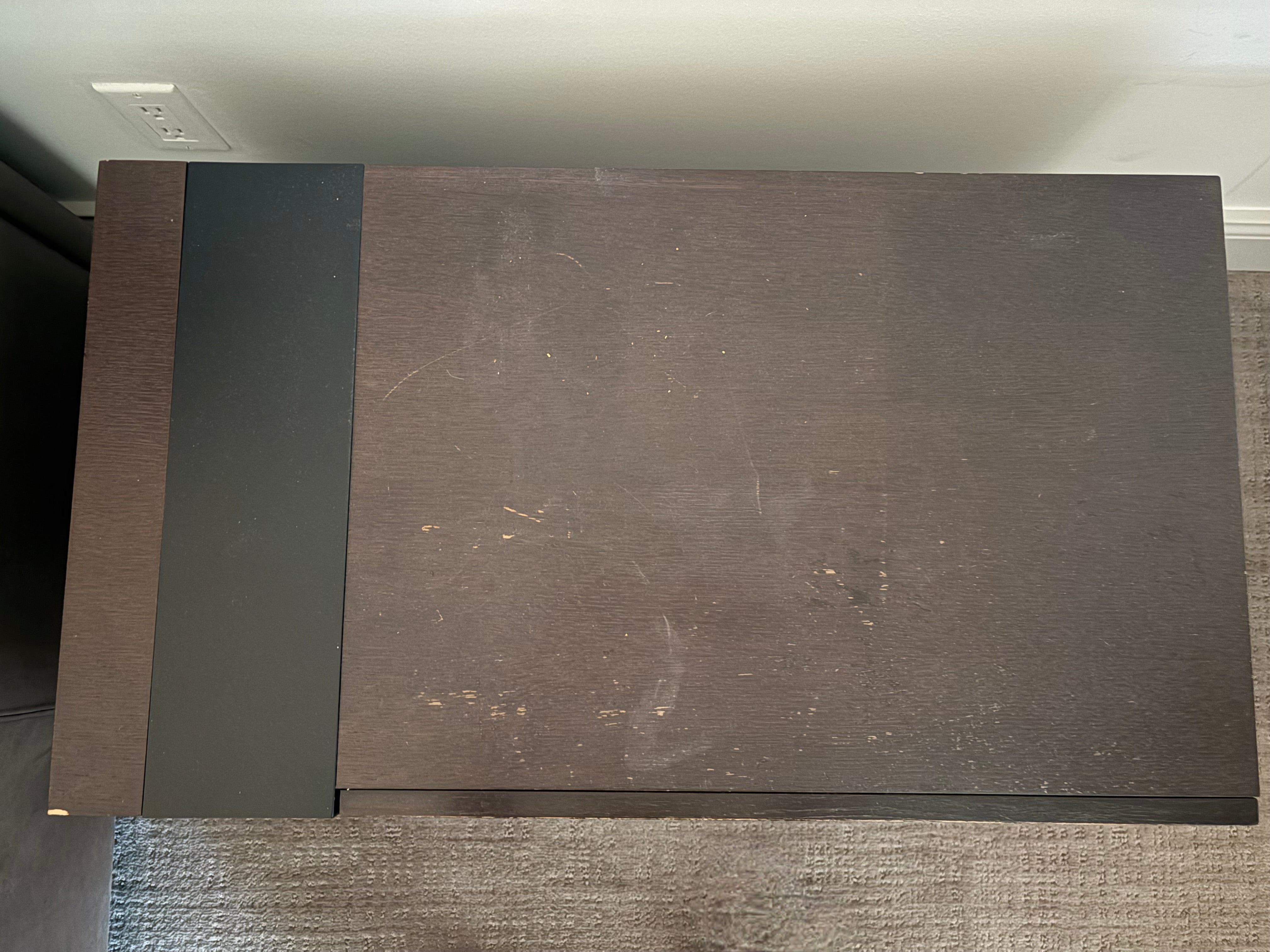 Condition: gently used, very good. Some minor scratches. The top surface has been re-stained. Structure is sound.