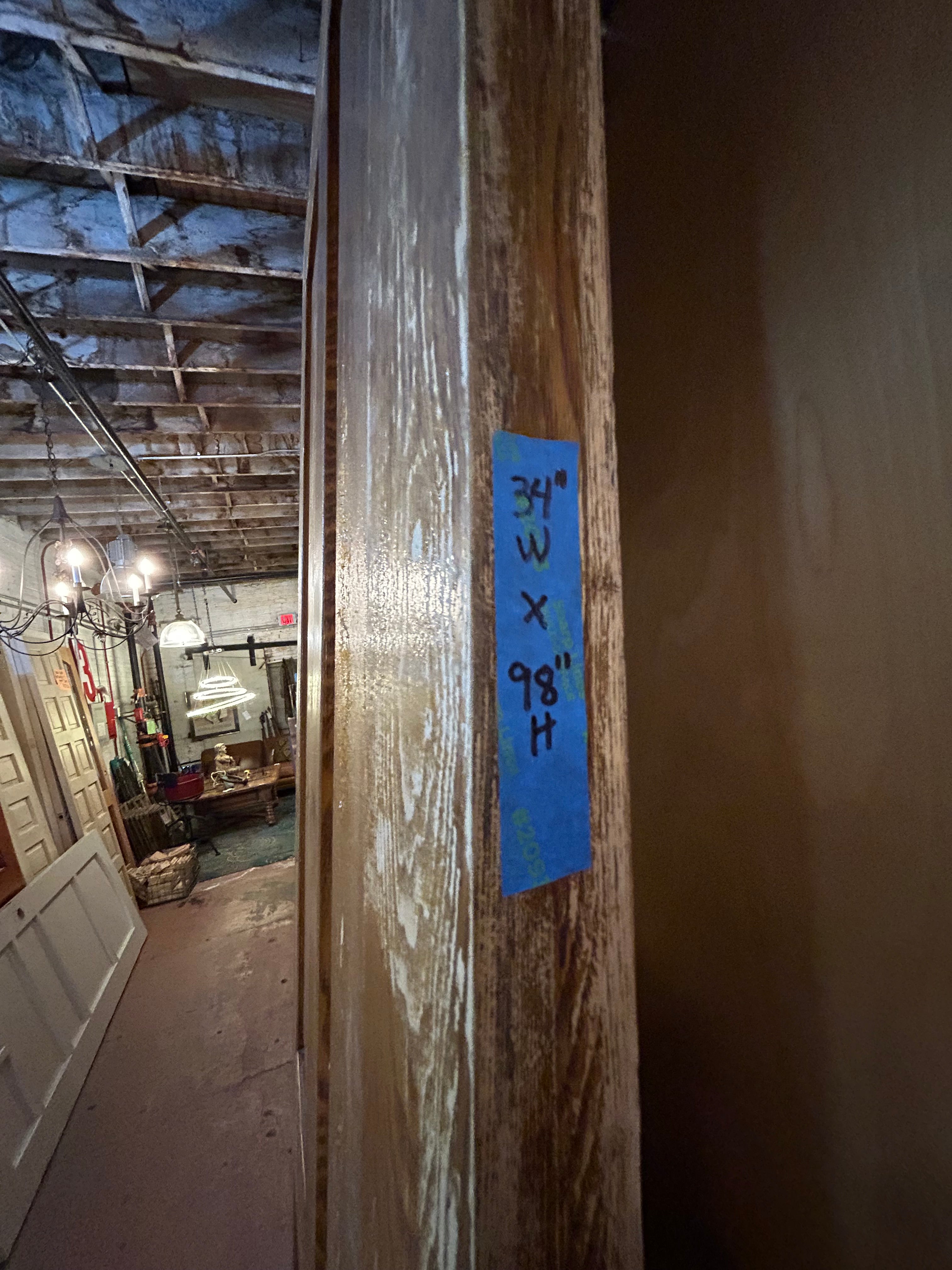 Solid wood oak door with five panels. Holes are drilled for a handle. Does not include hardware.