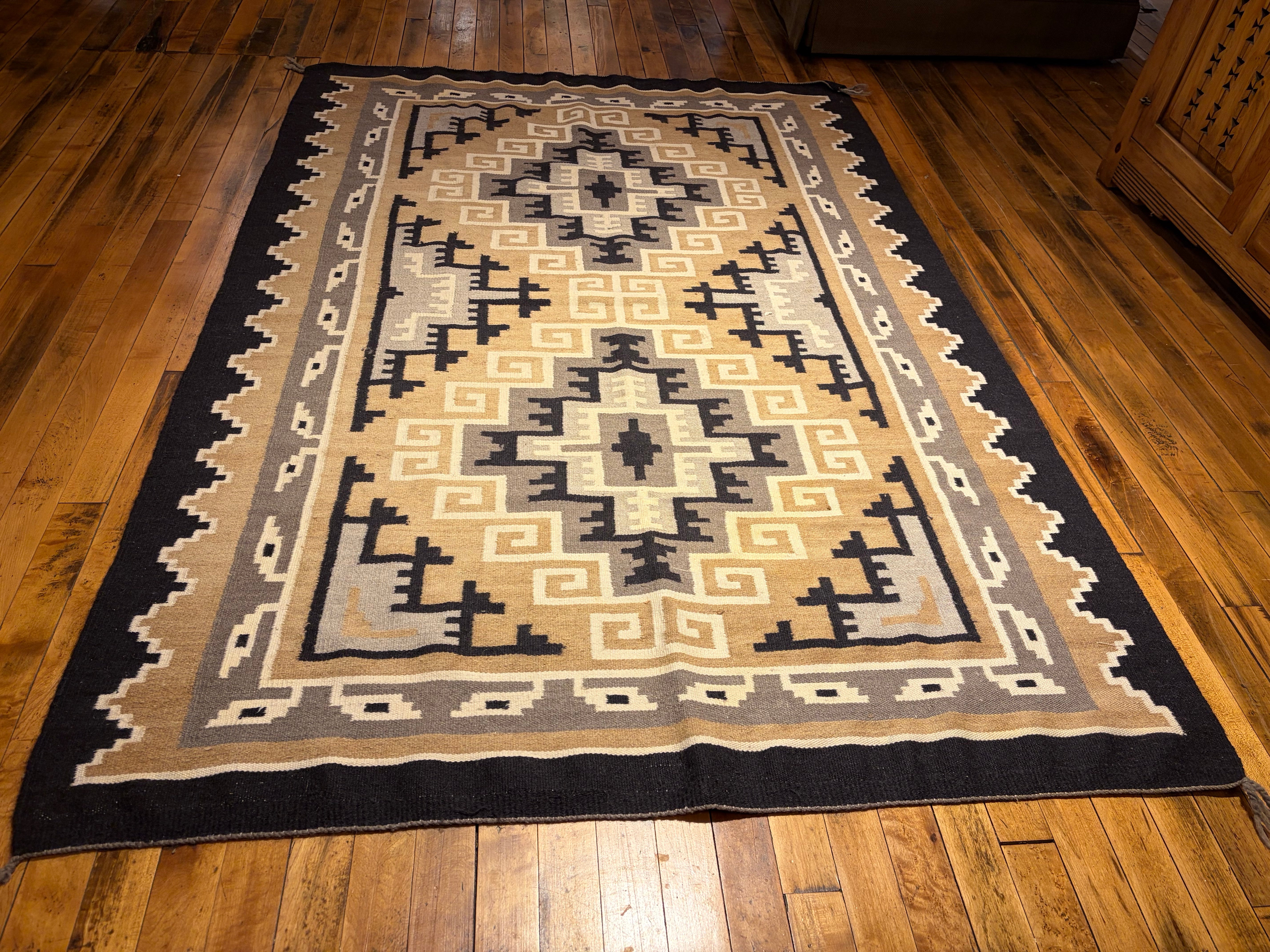 South West Design,Throw Rug, 100% Wool, Beige, Black, Grey, Taupe