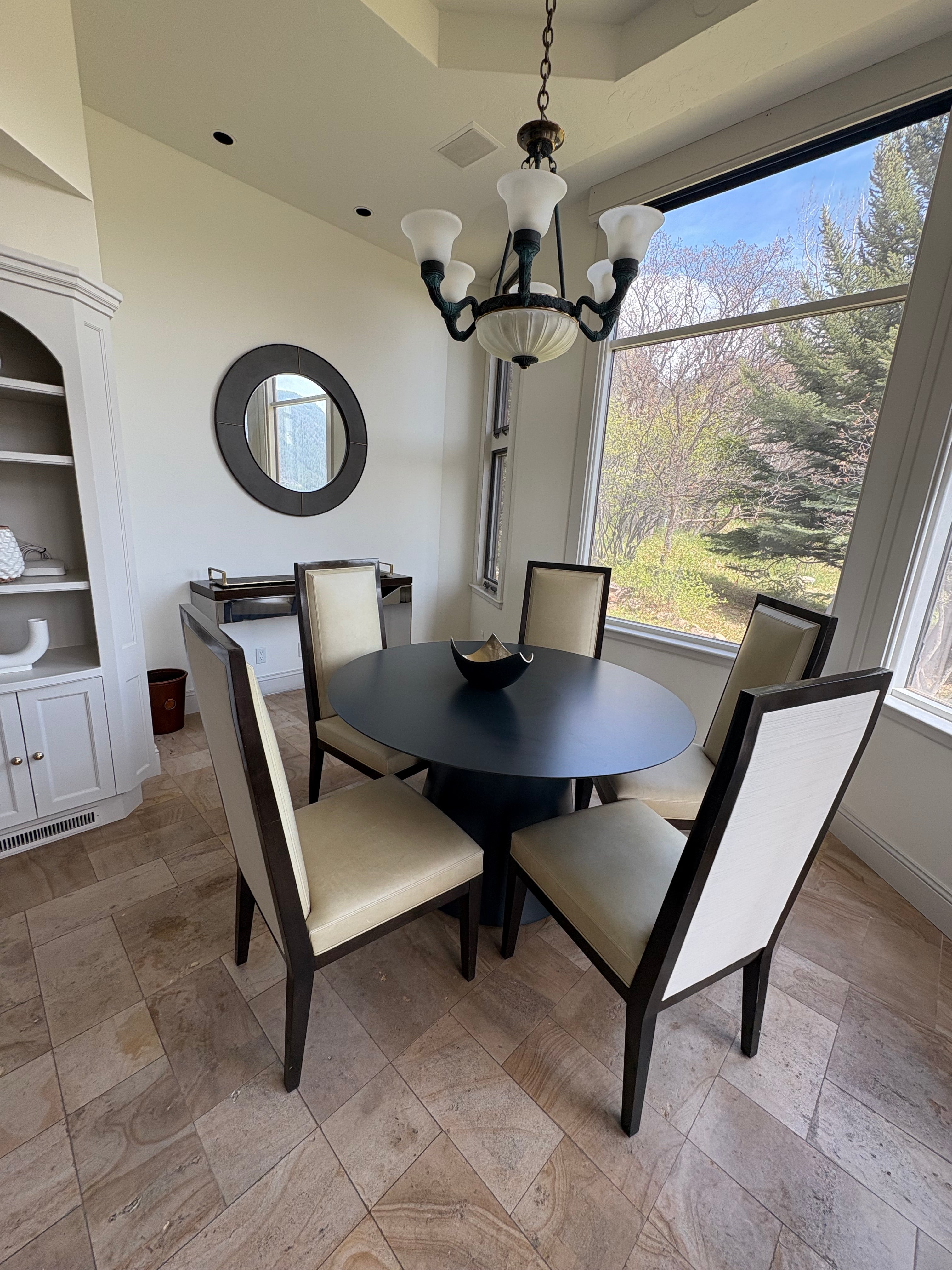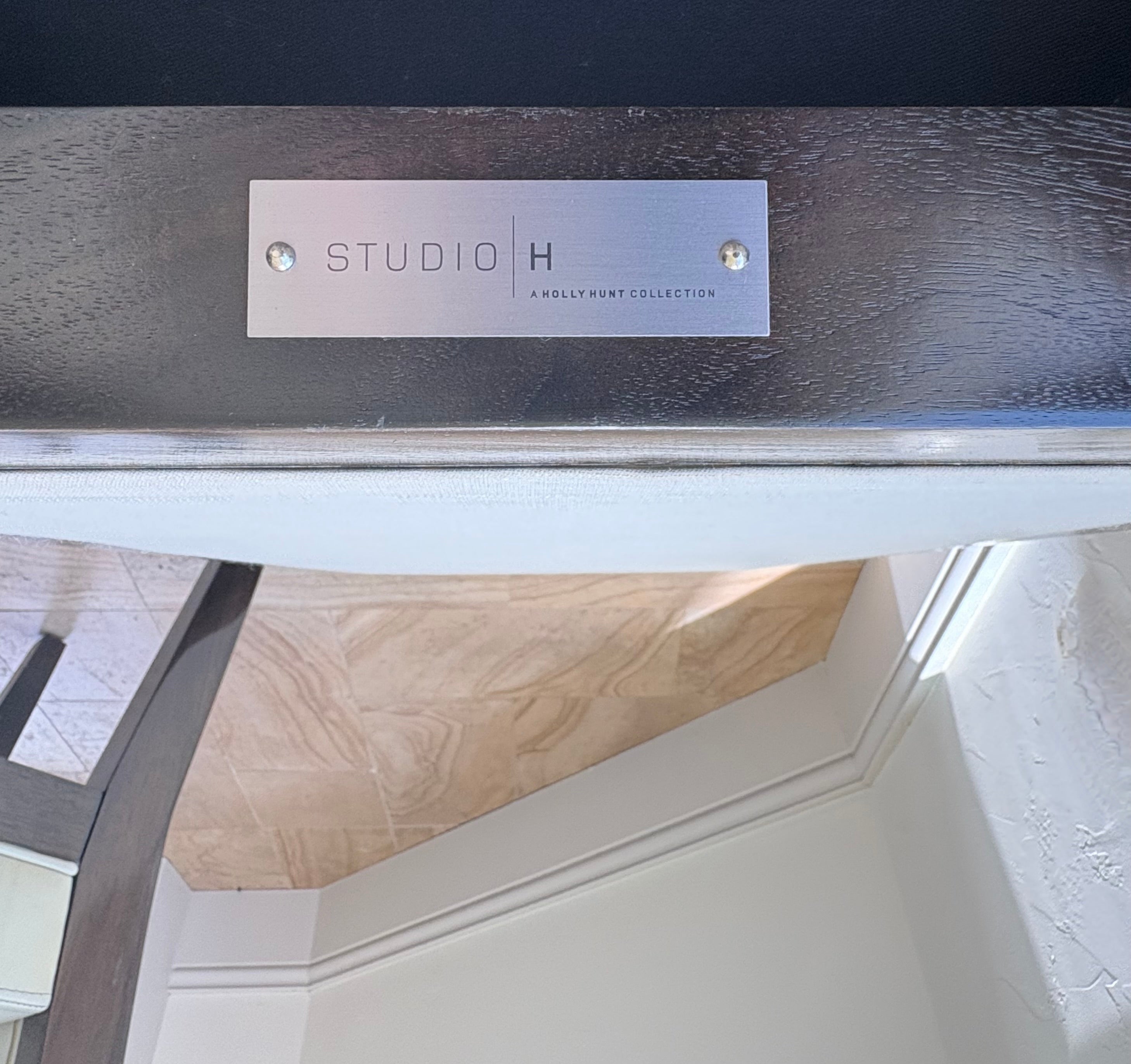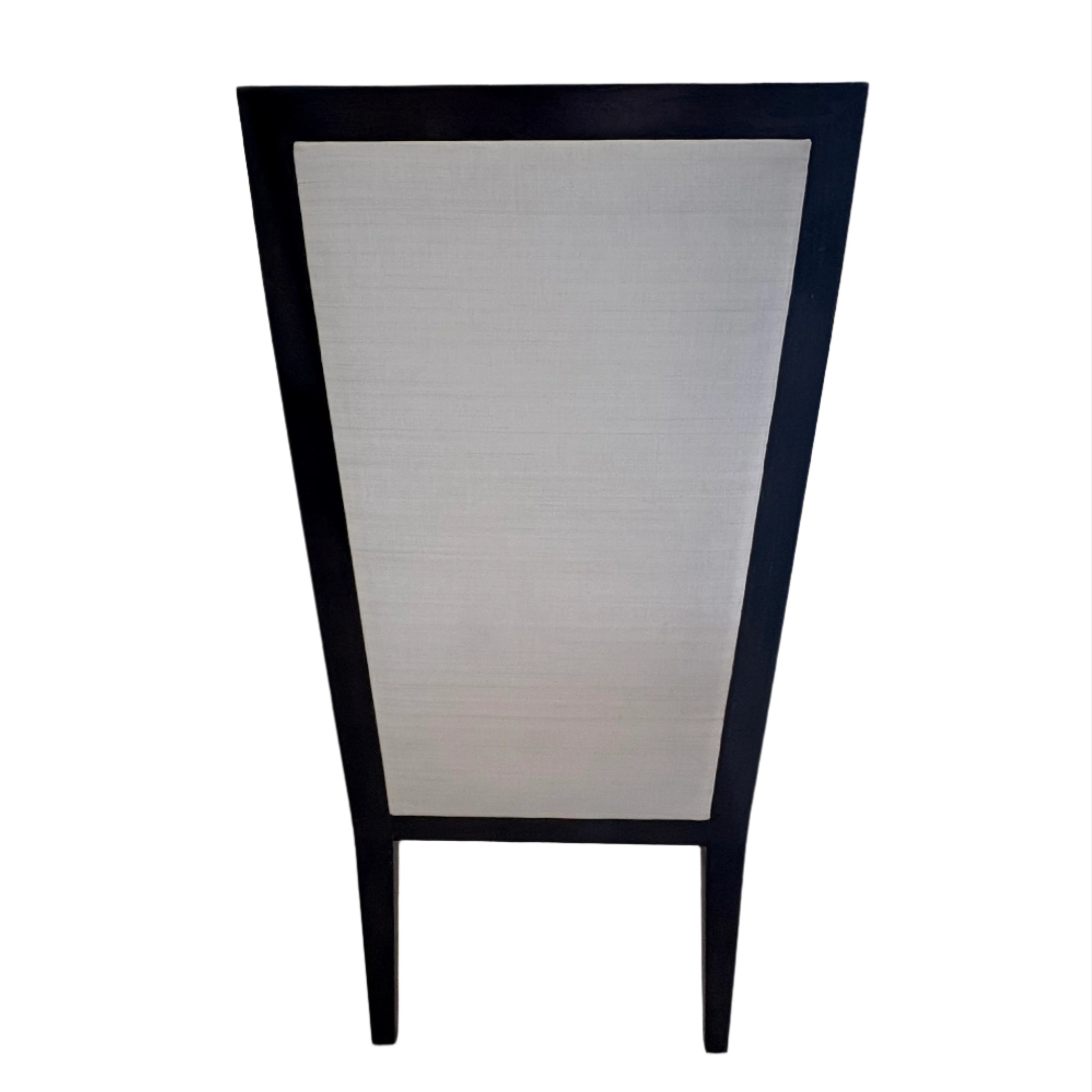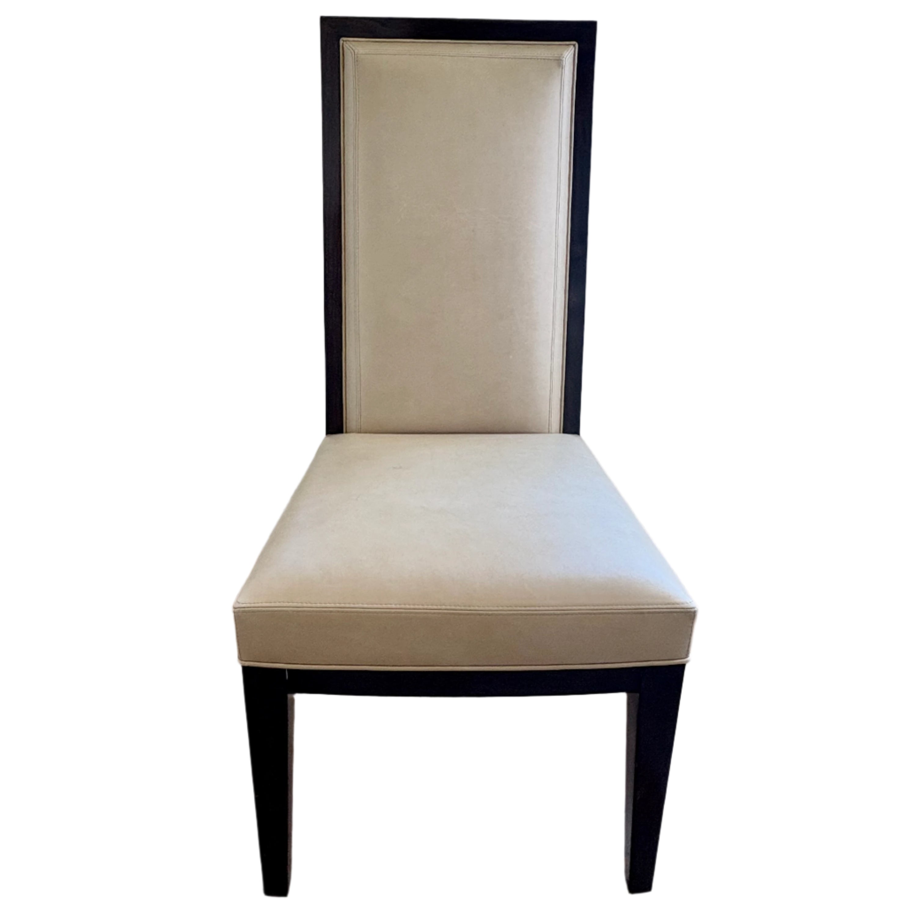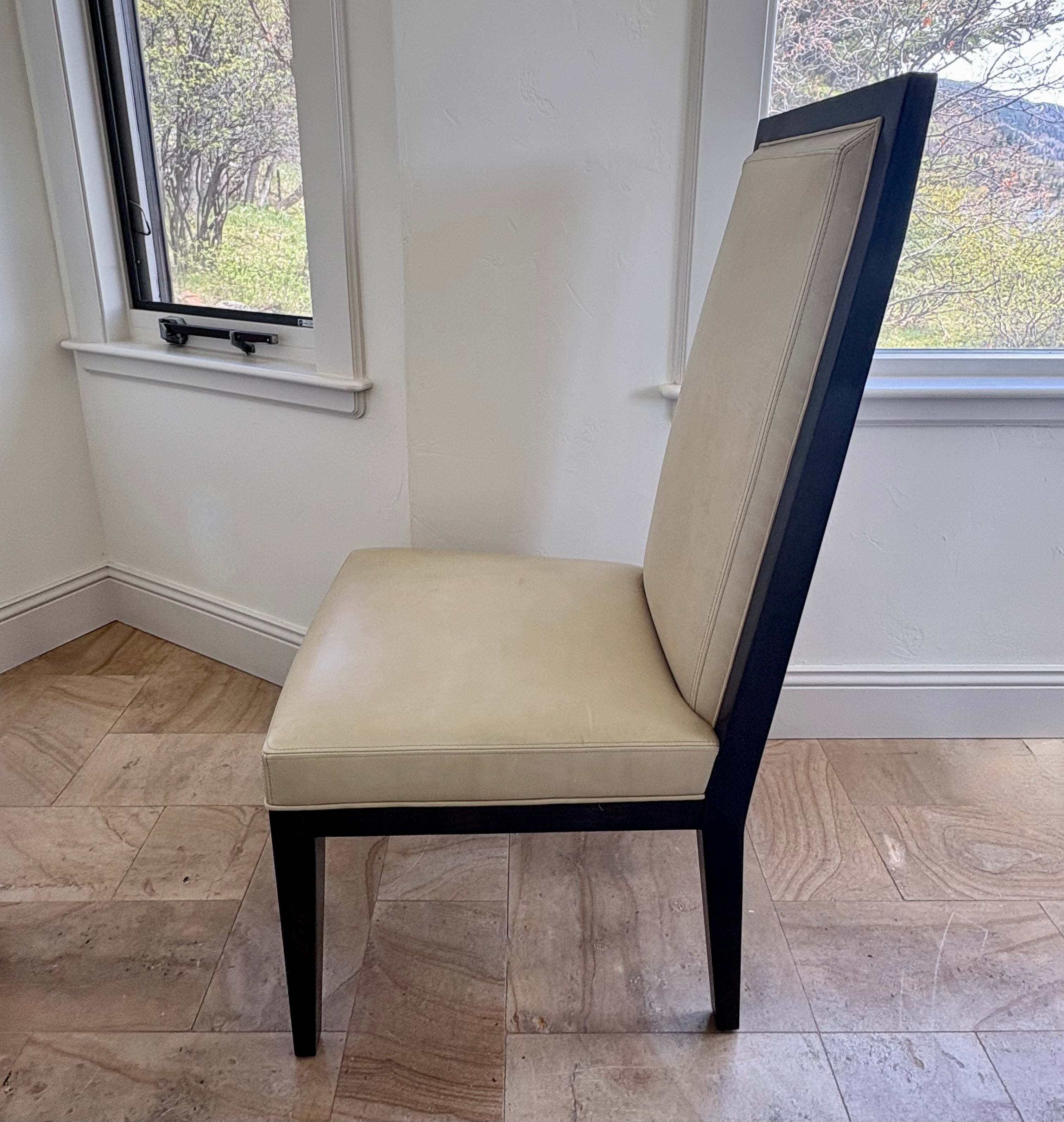 Studio H, Holly Hunt Collection creme leather wood frame dining chairs, set of eight.