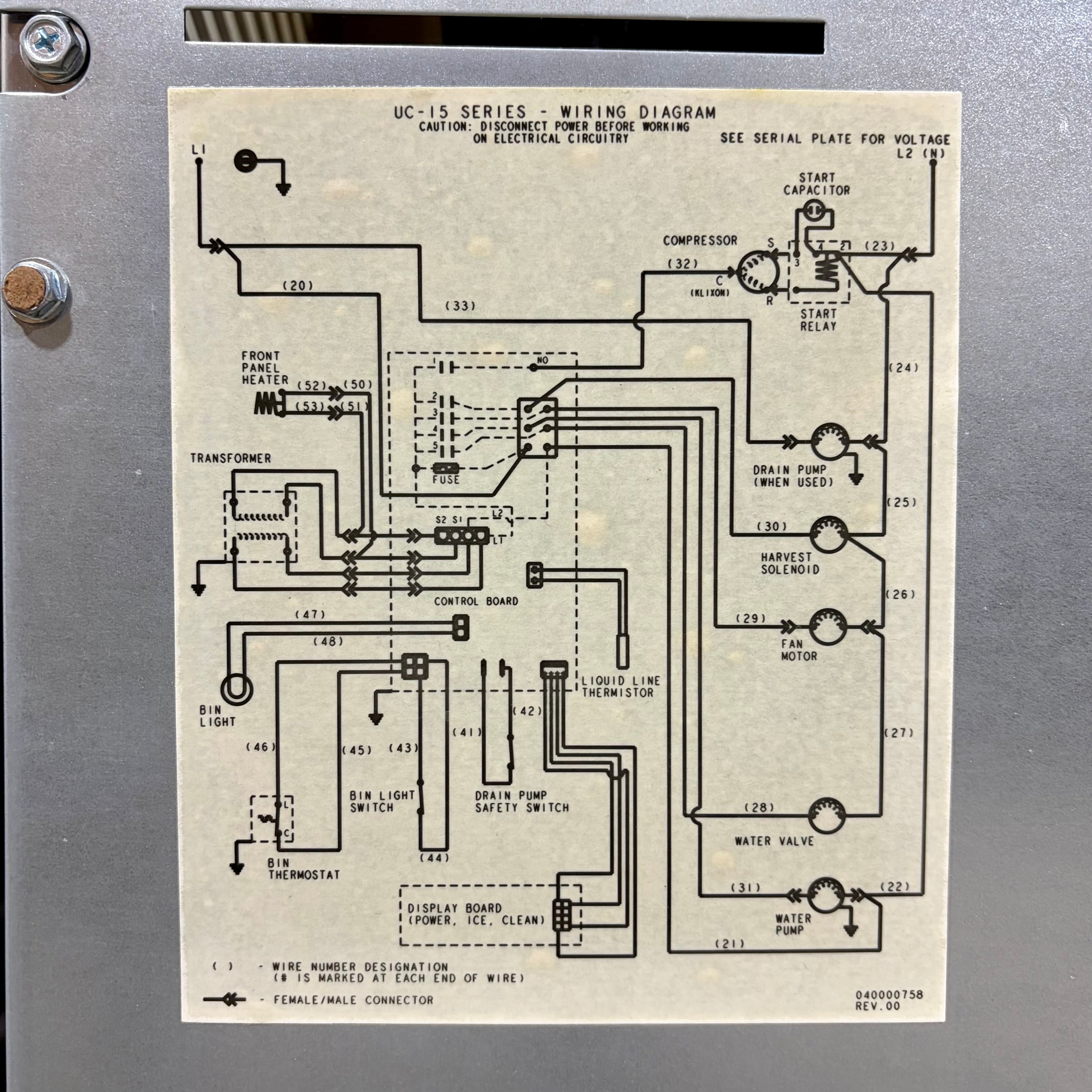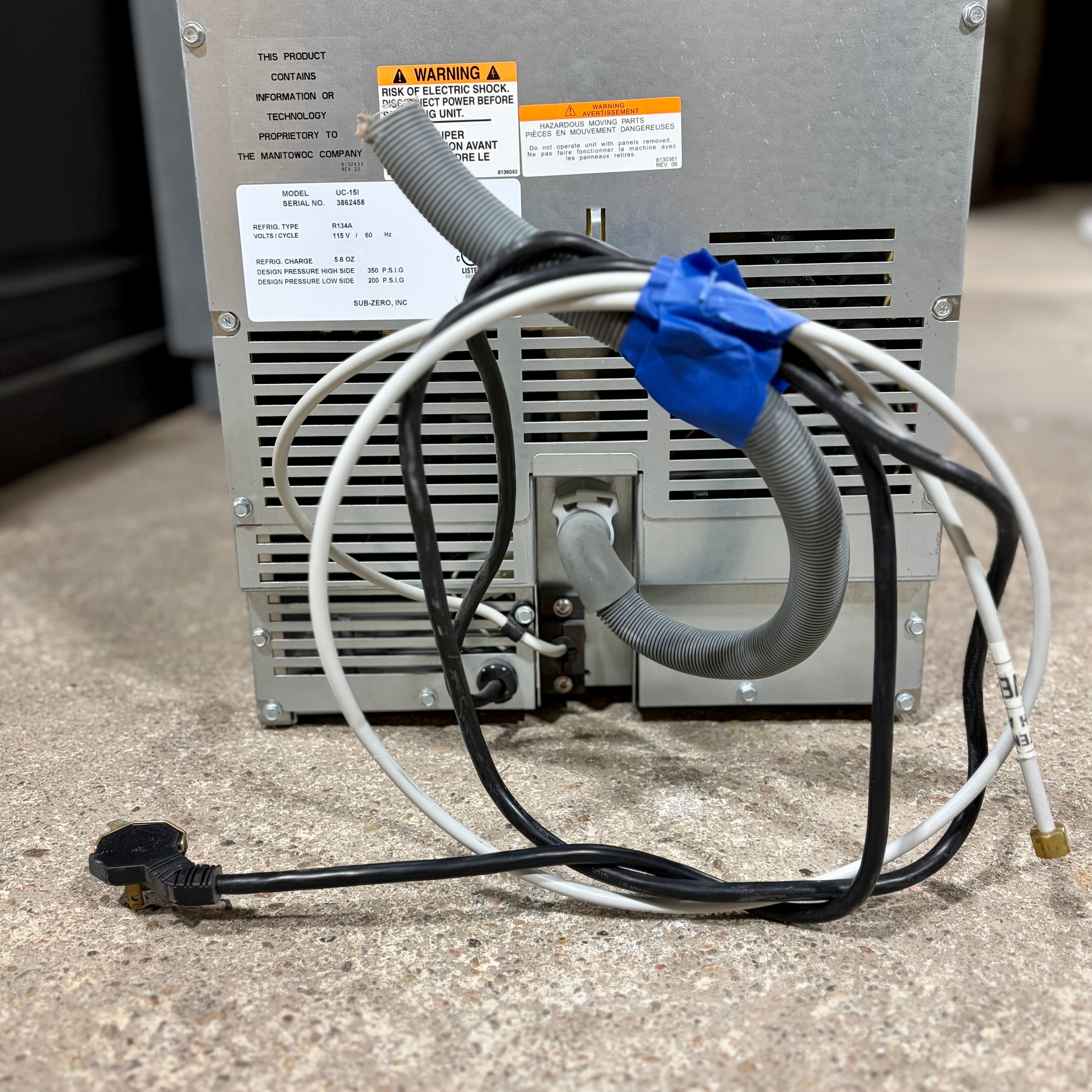 Sub Zero Ice Maker with Wood Face in Almond Color. Note: coordinating wine cooler on the right is sold separately, Sku: 033186.