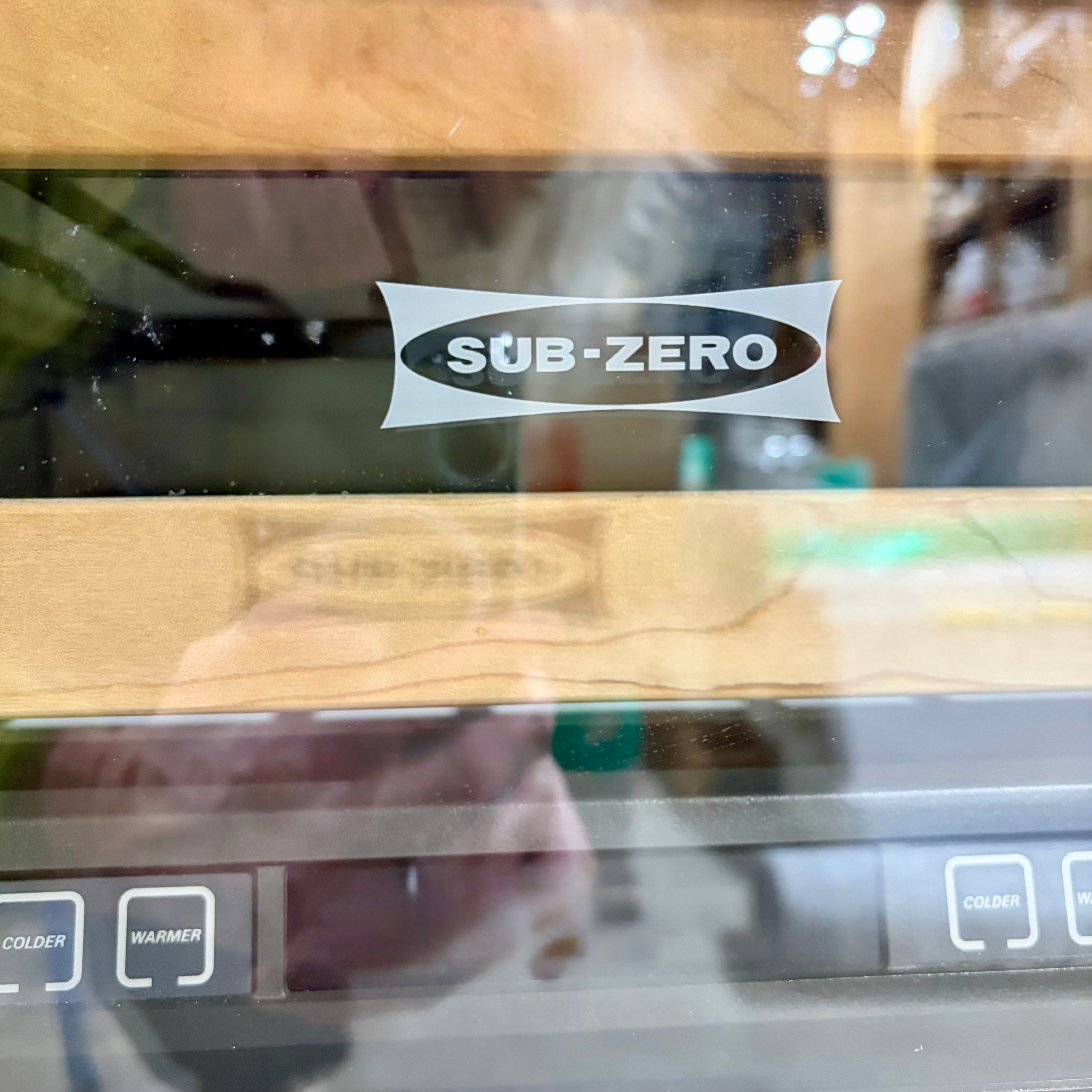 Sub Zero Wine Fridge with Blond Wood Face. Five Drawers. Note: there is a coordinating Sub Zero ice maker, sku: 033189 (available at time of publishing).
