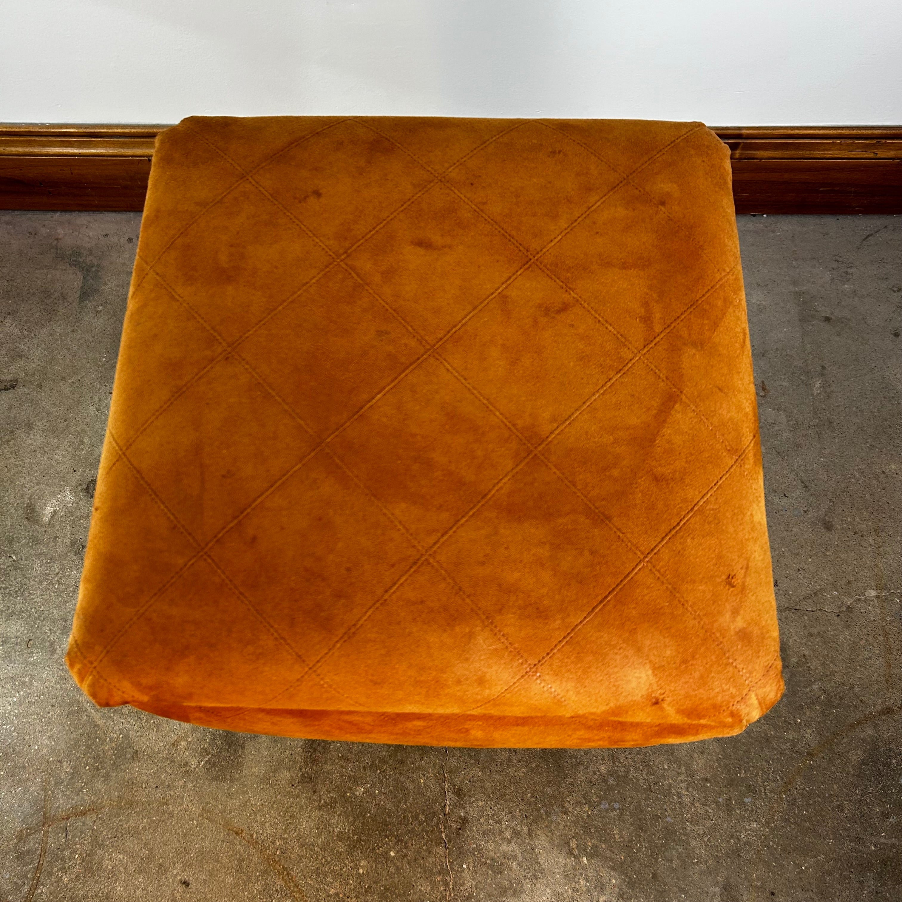 Condition: gently used, excellent. Frame is strong and supportive. One stool's center is a bit more sunken than the other. Only minor wear on the suede leather.