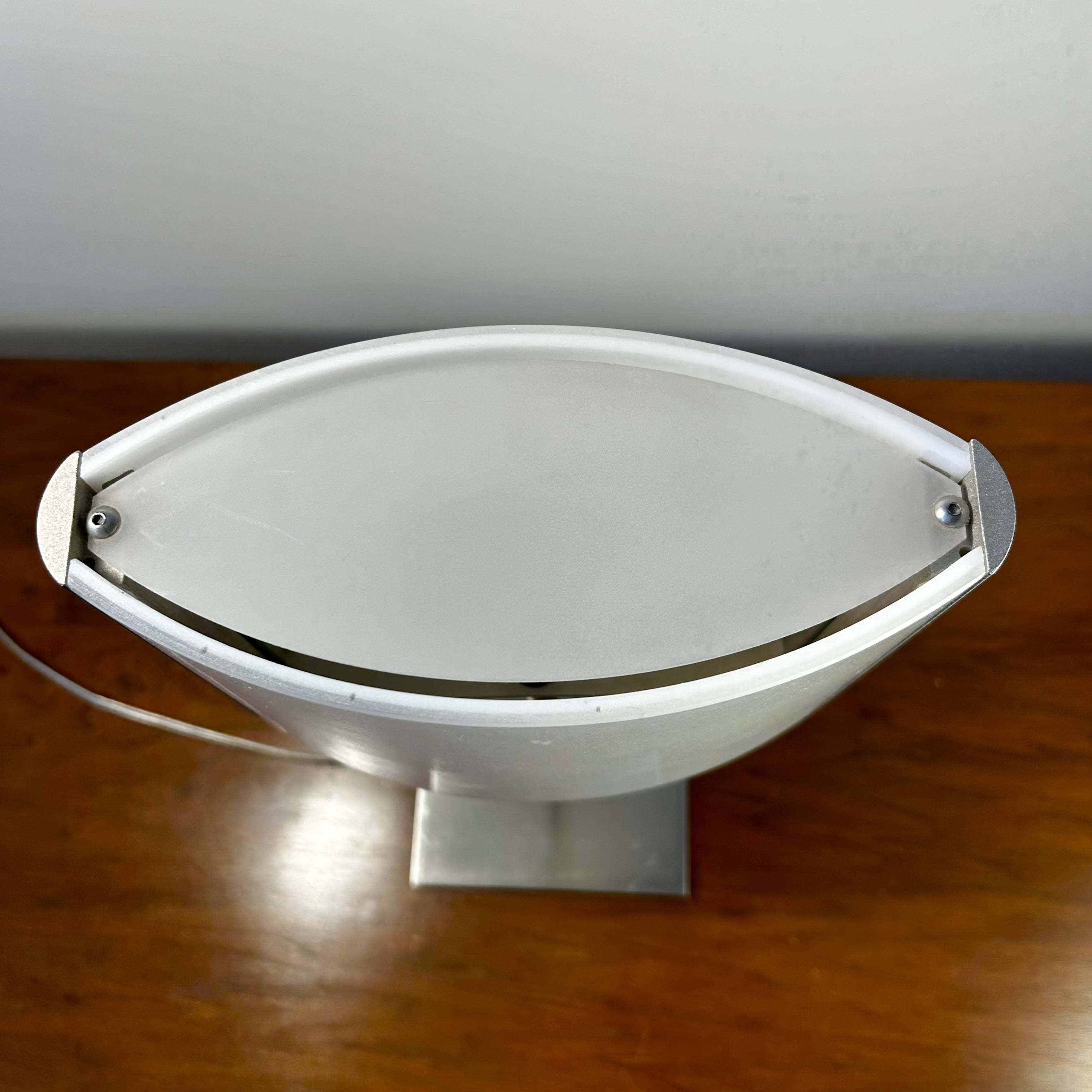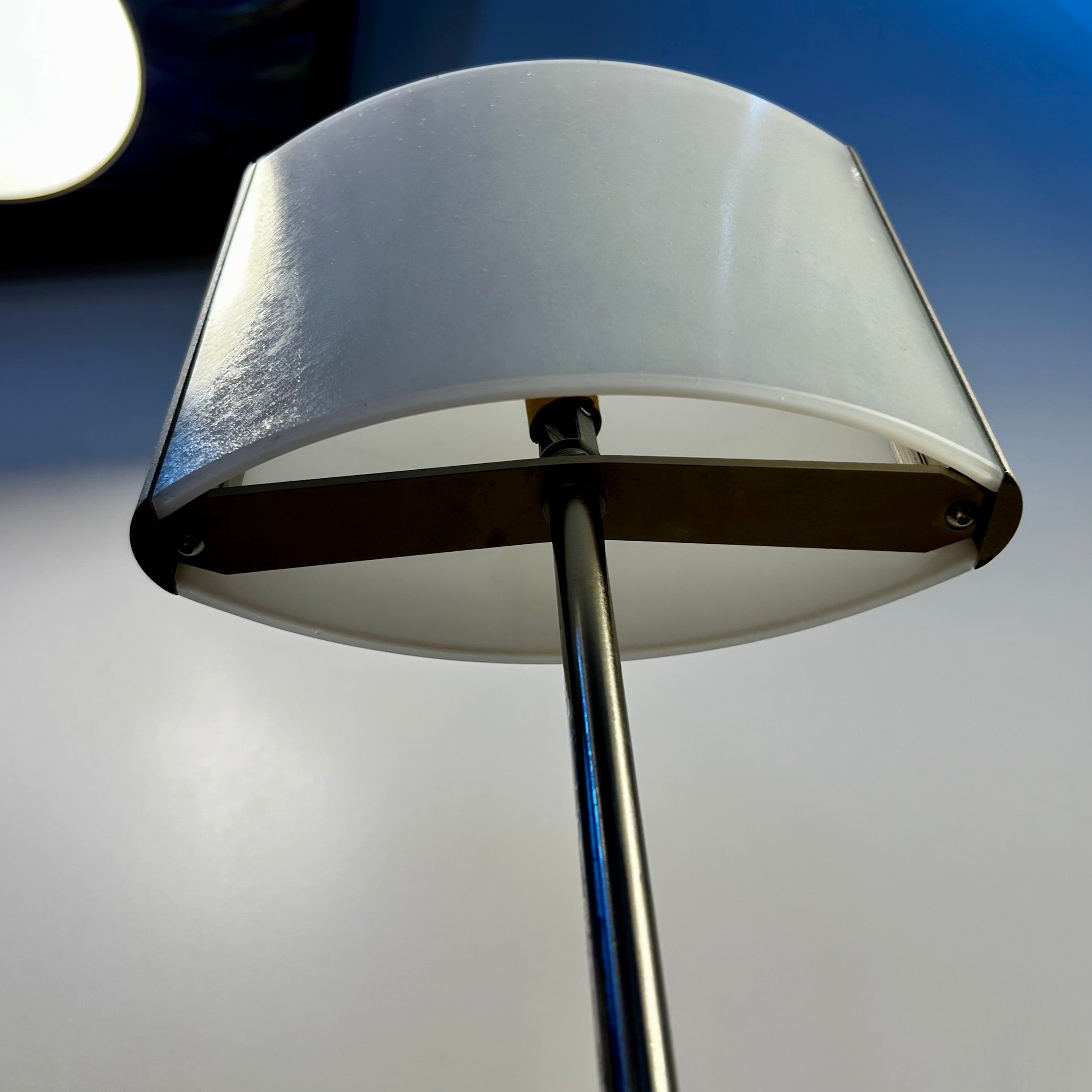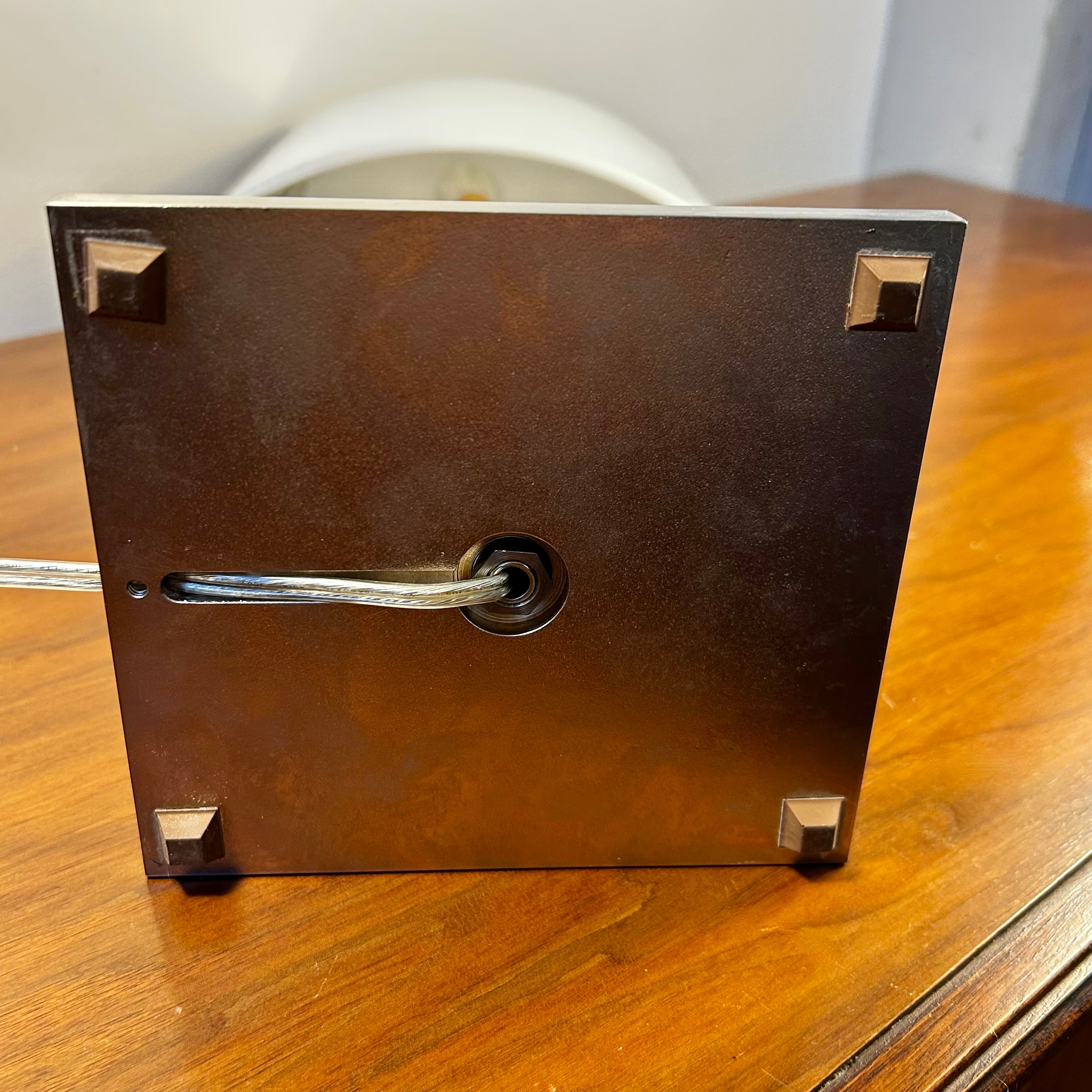 Table Lamp, Contemporary, Composite Shade, Brushed Nickel Frame, Stand. Uses one small socket bulb.