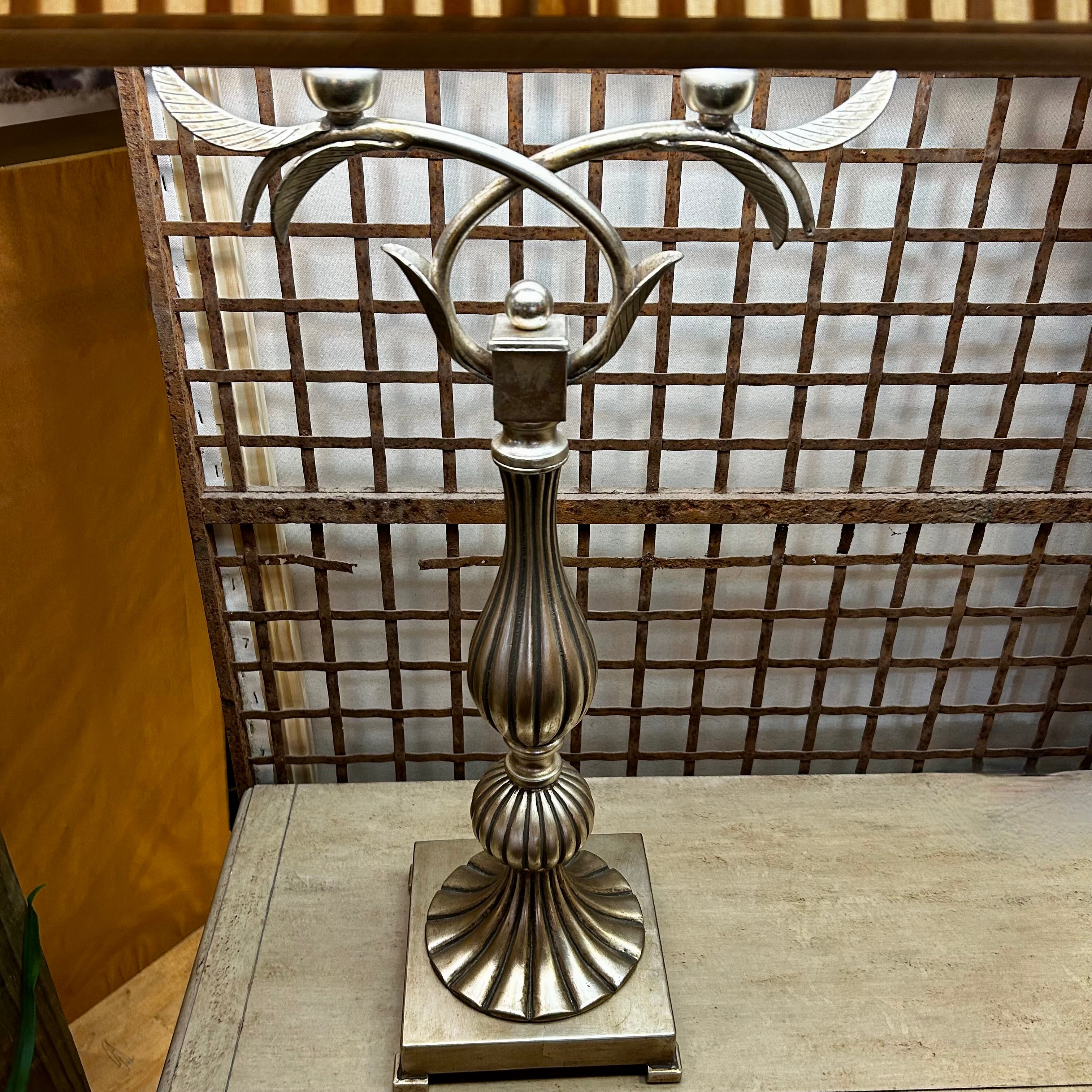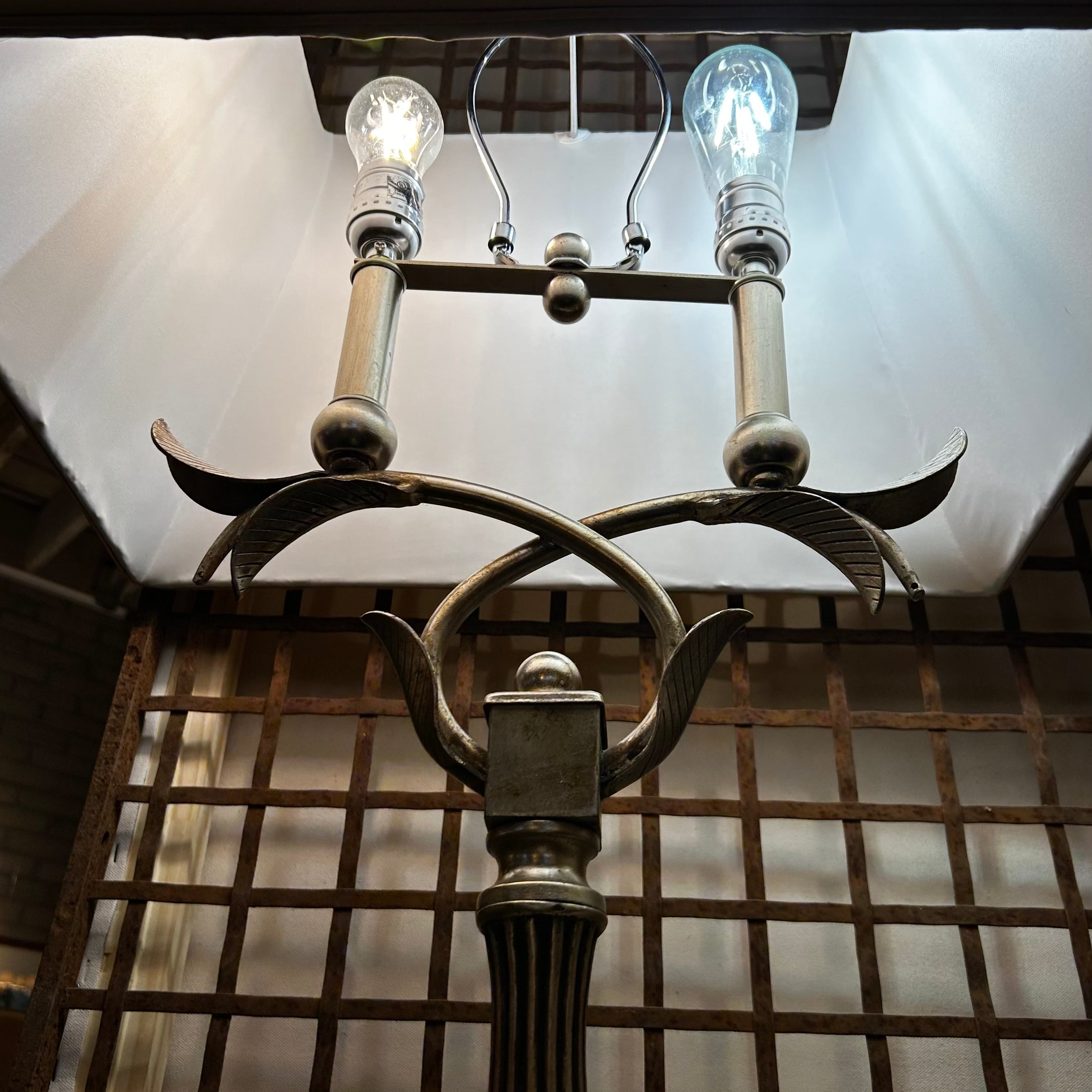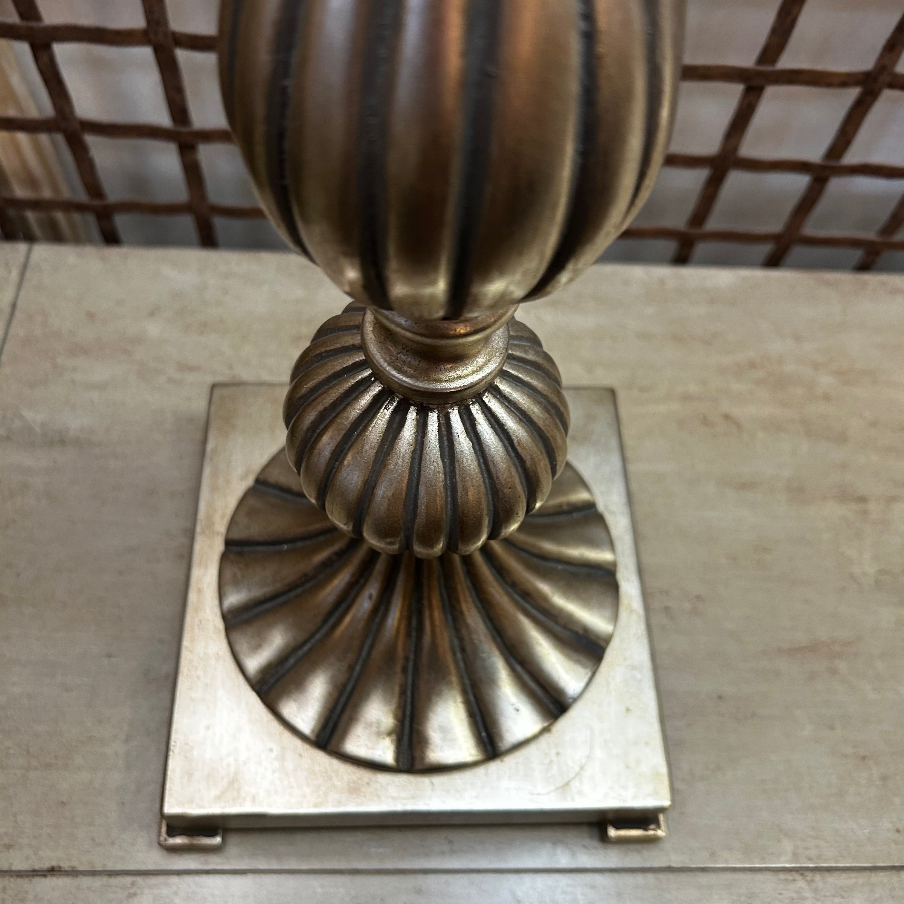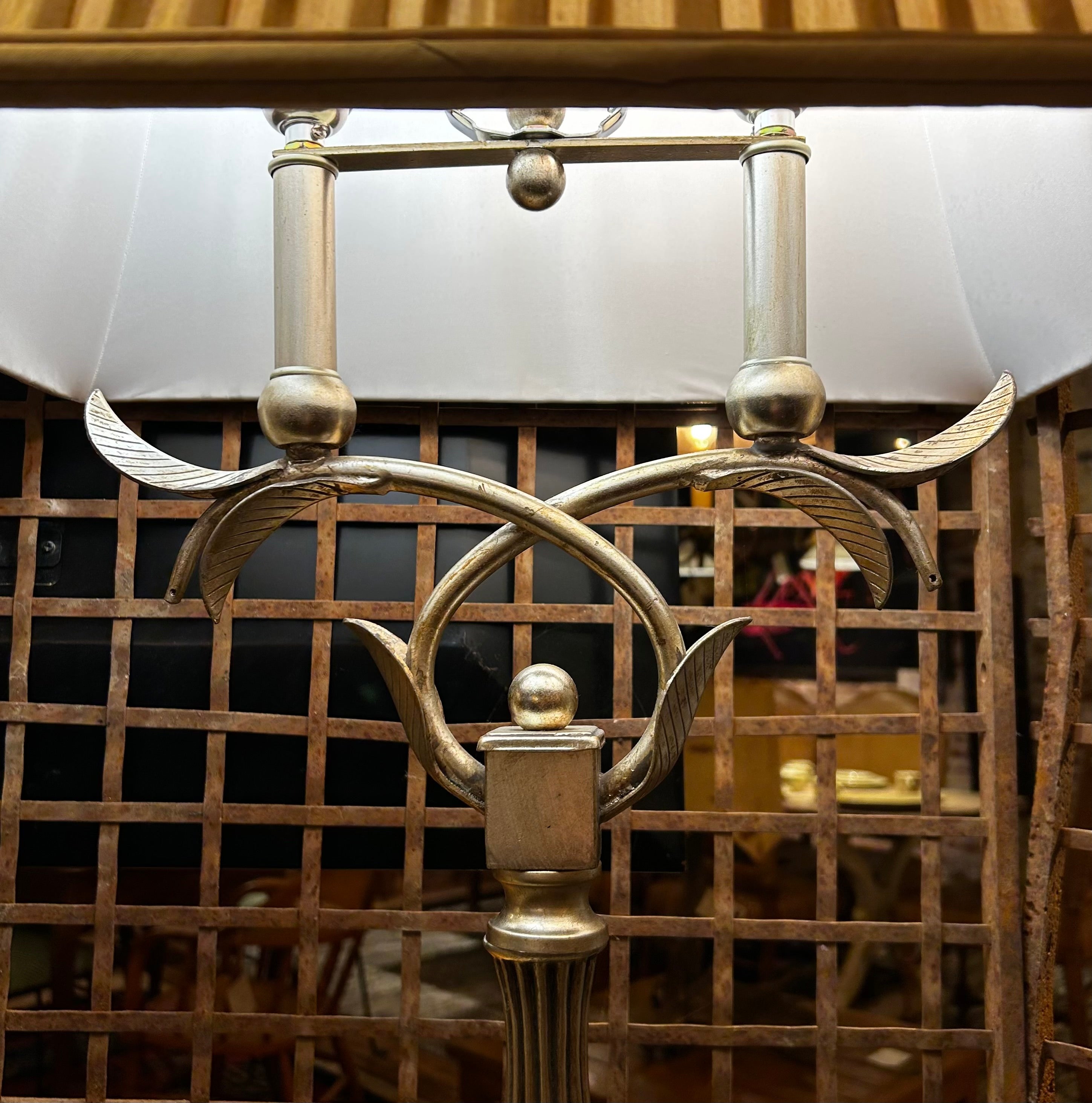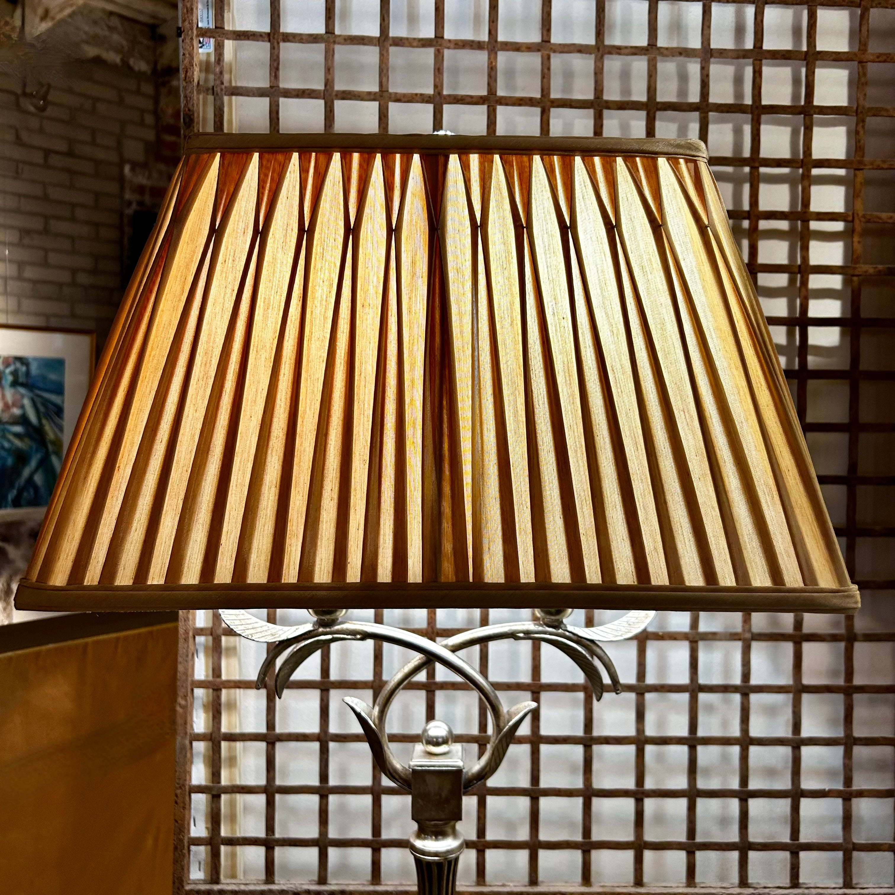 Table Lamp, Metallic Leaf Finish with Custom Pleated Shade, Rectangle.
