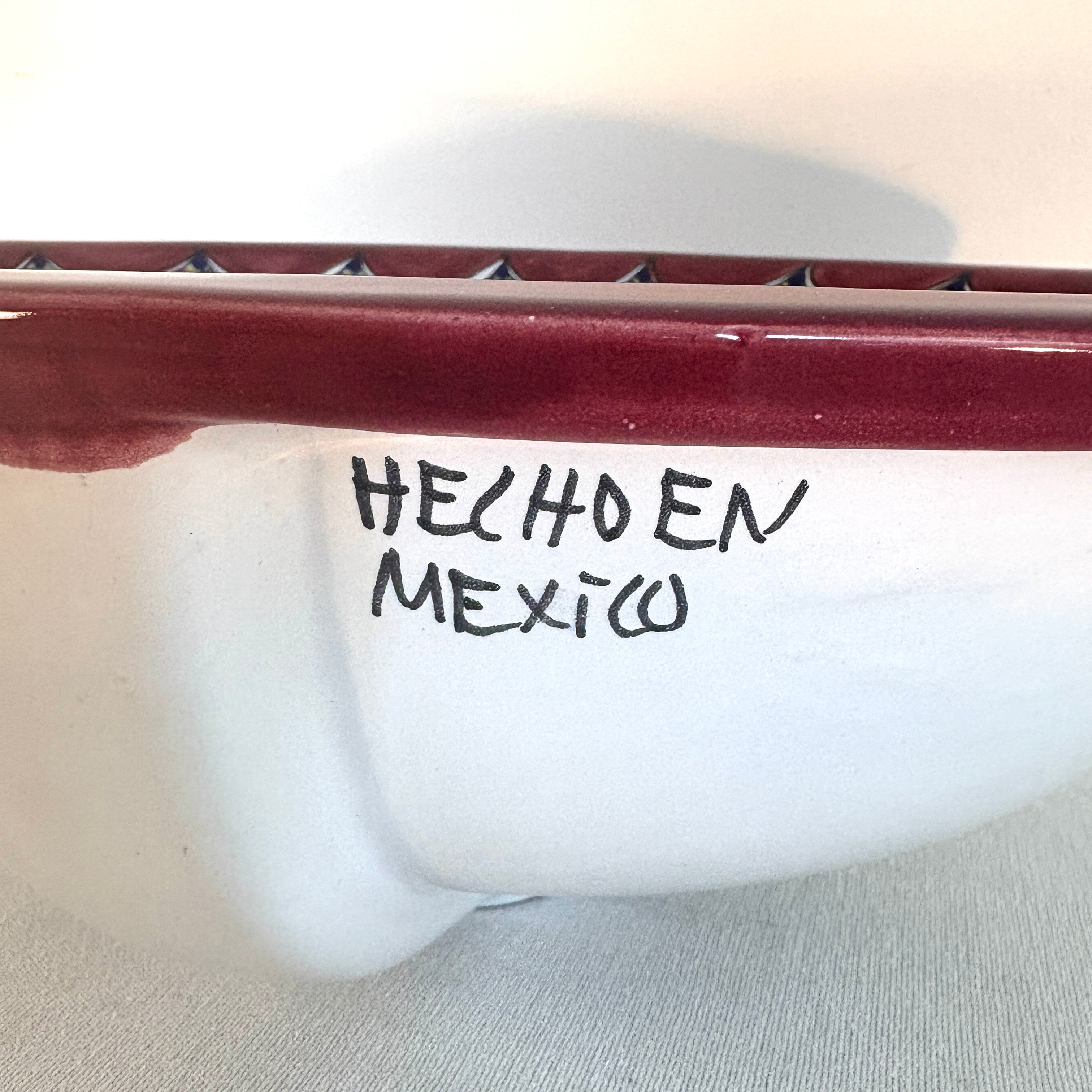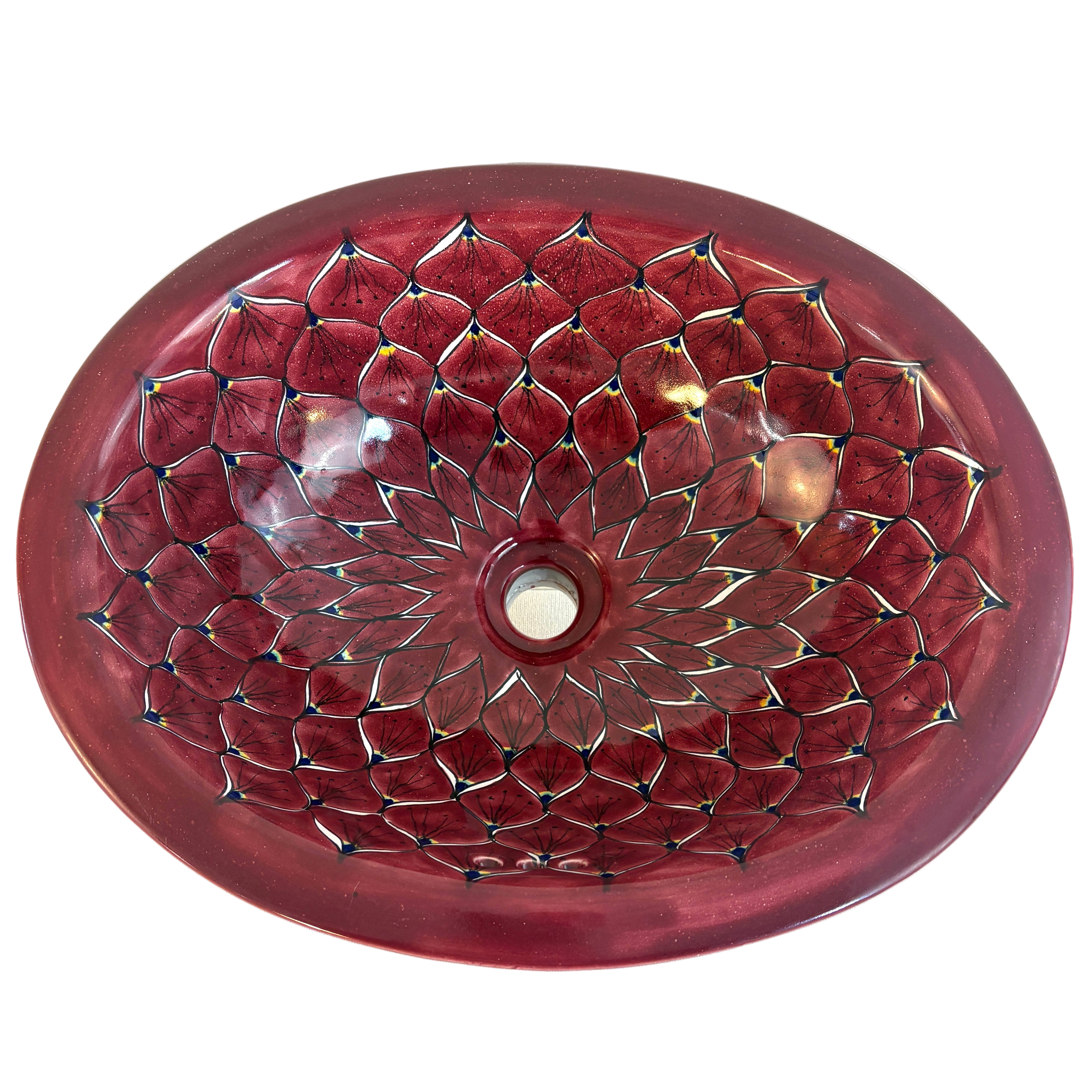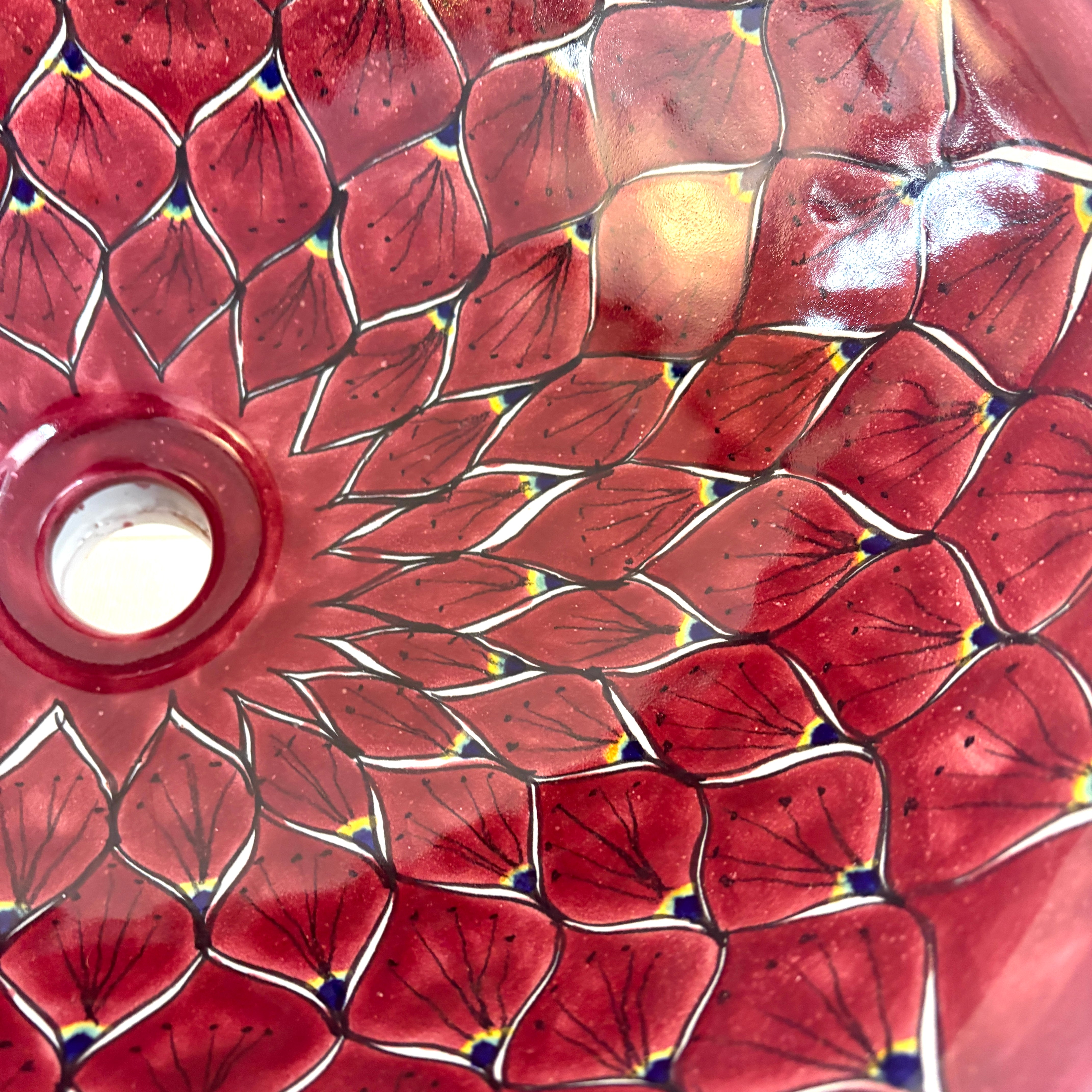 Talavera Mexican Folk Art Painted Sink Stylized Feather Design