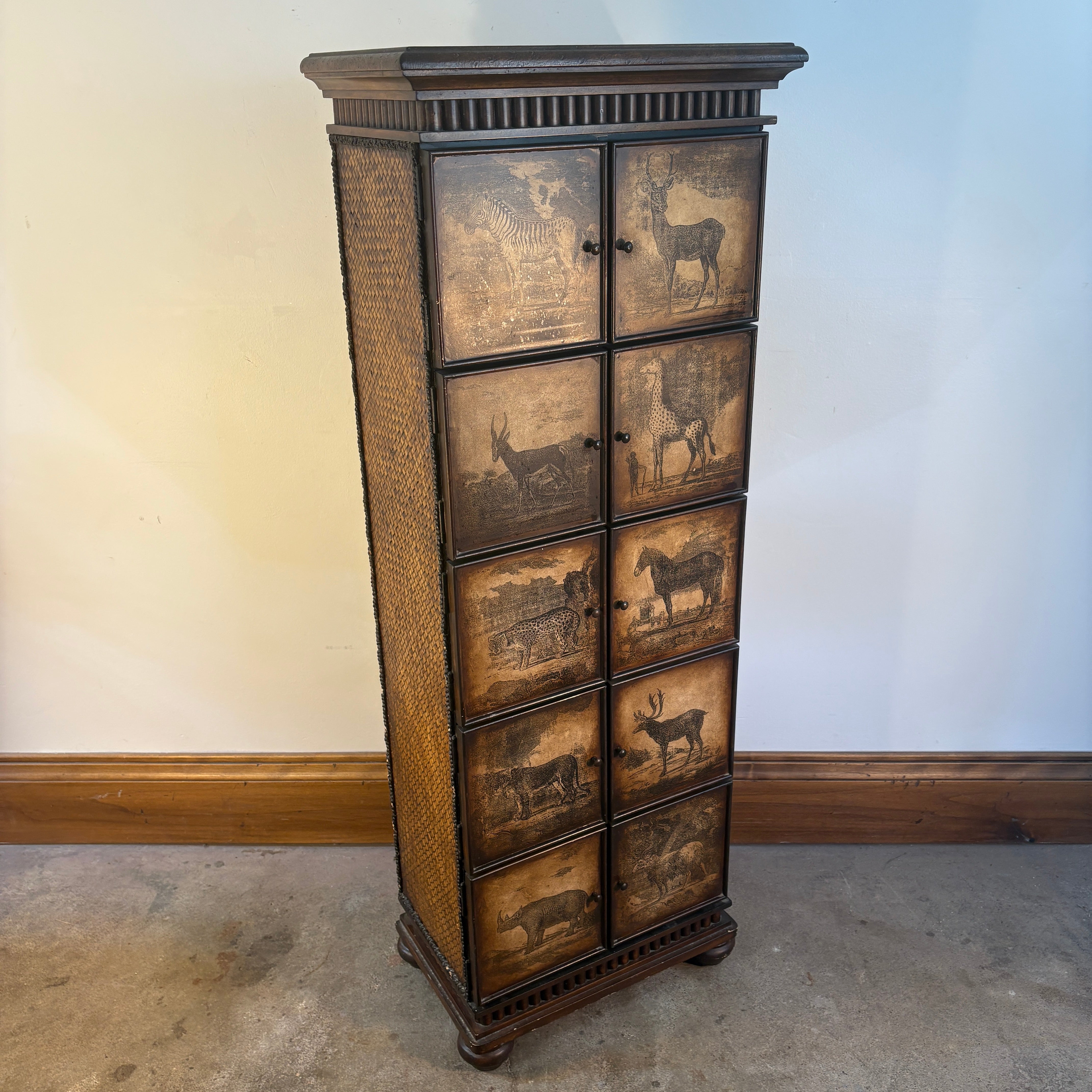 Tall Animal Themed 10 Door Cabinet with Woven Sides.
