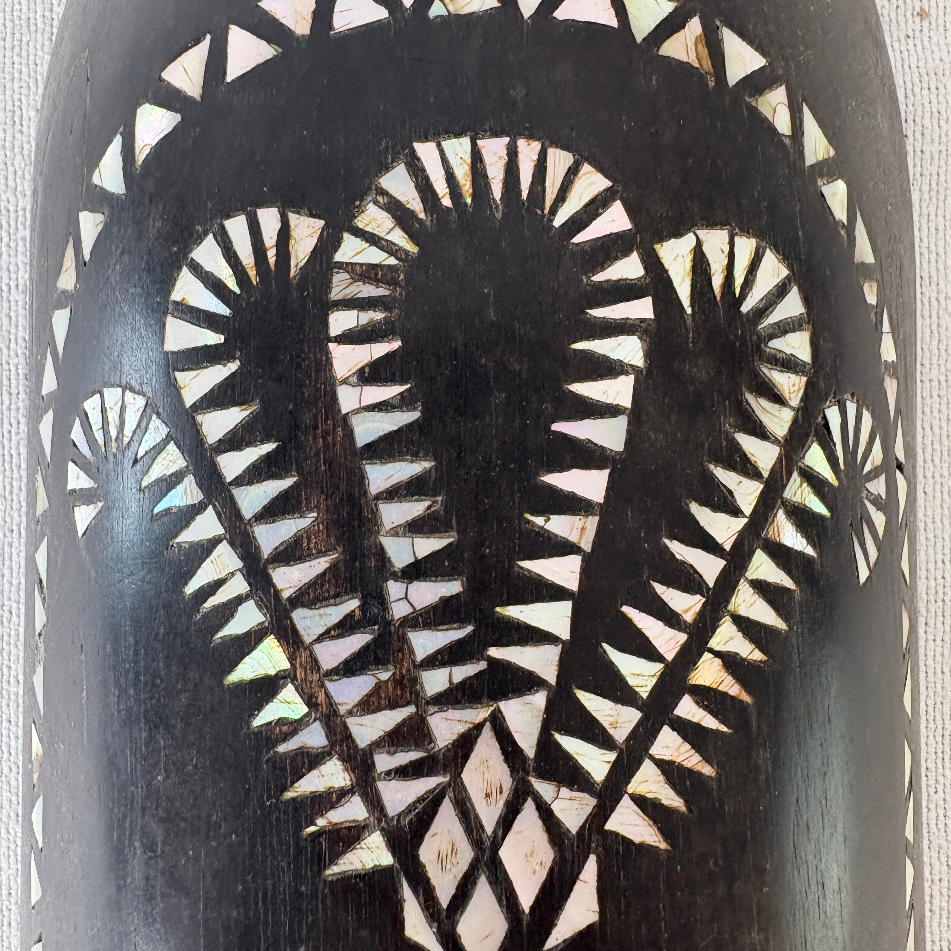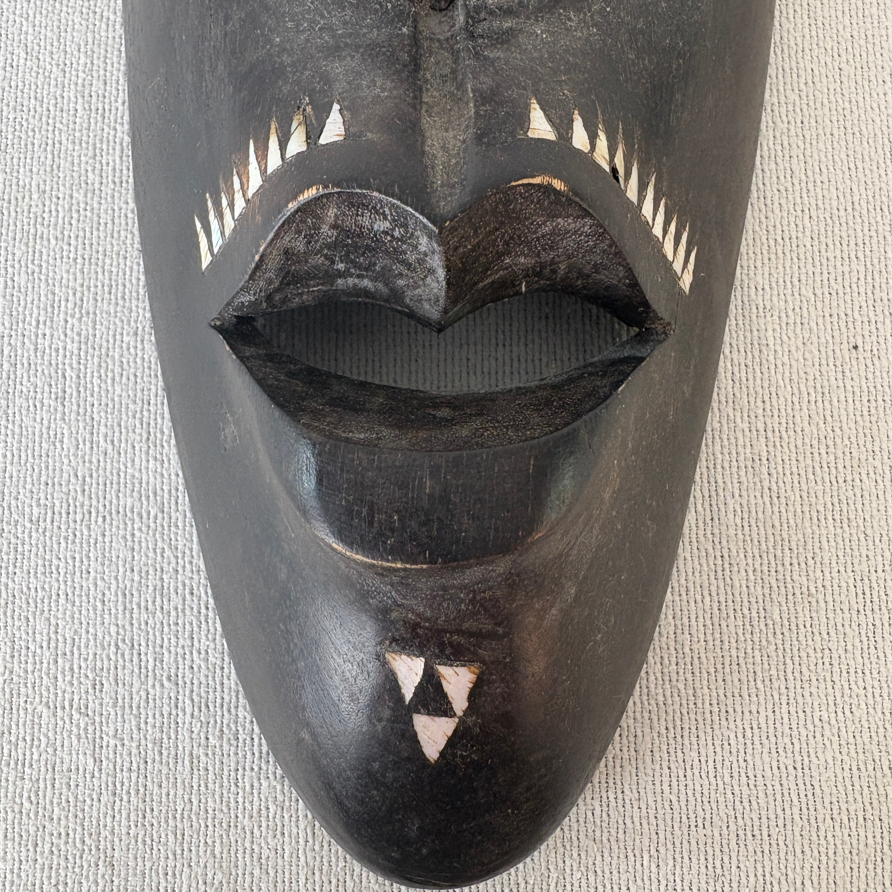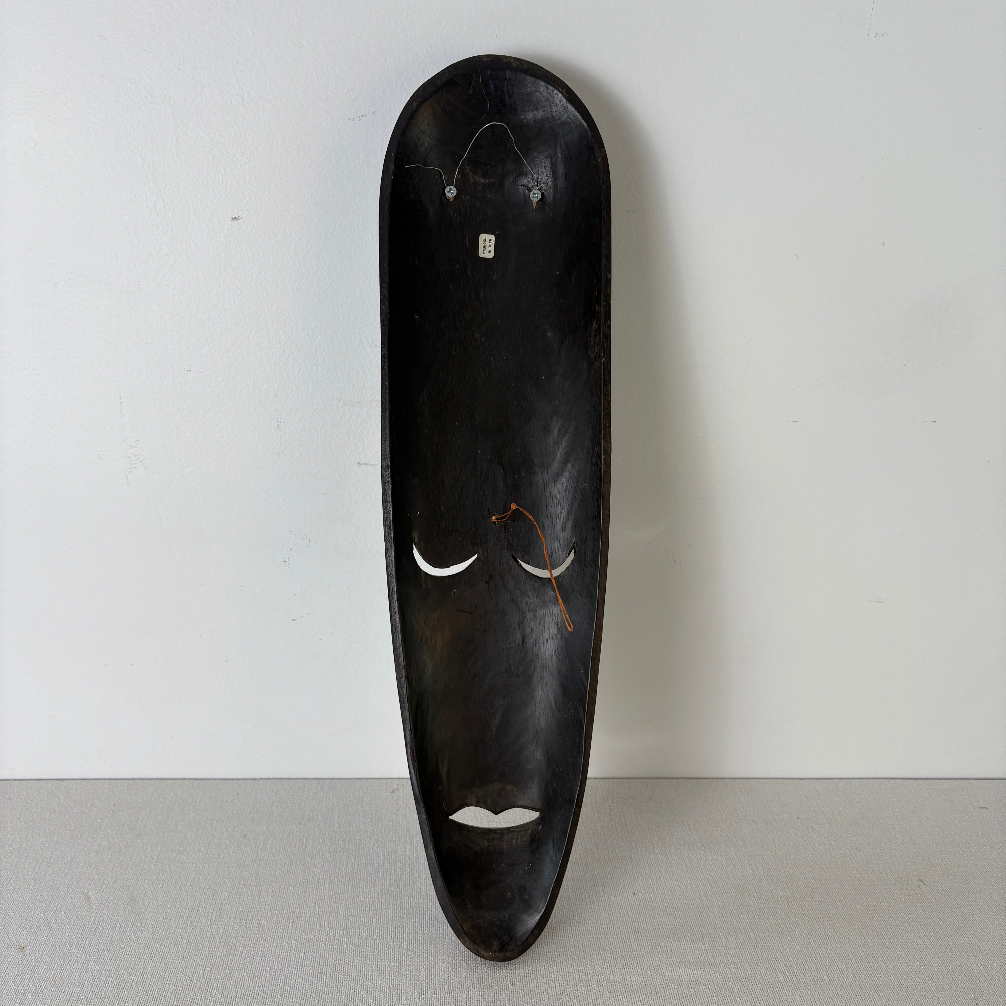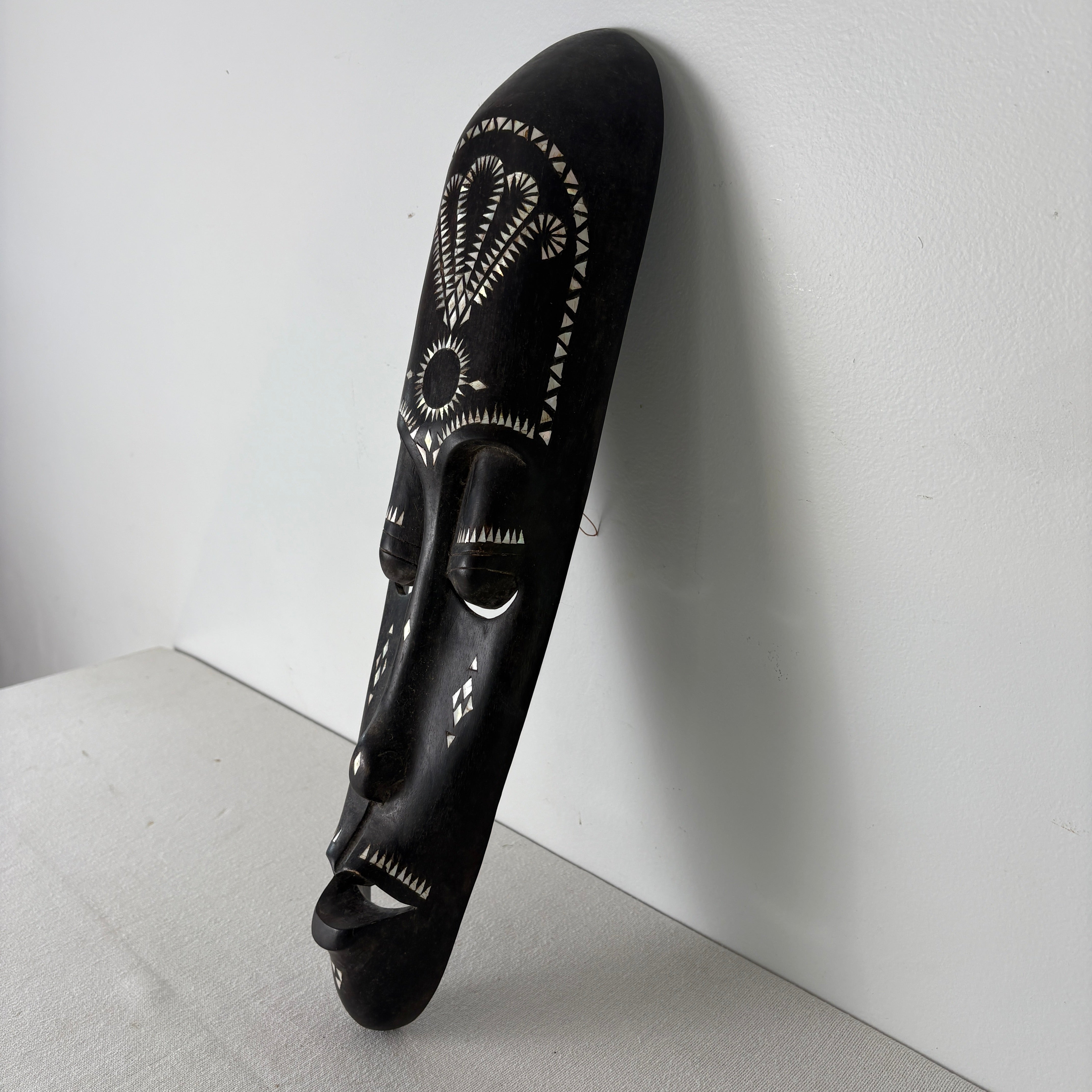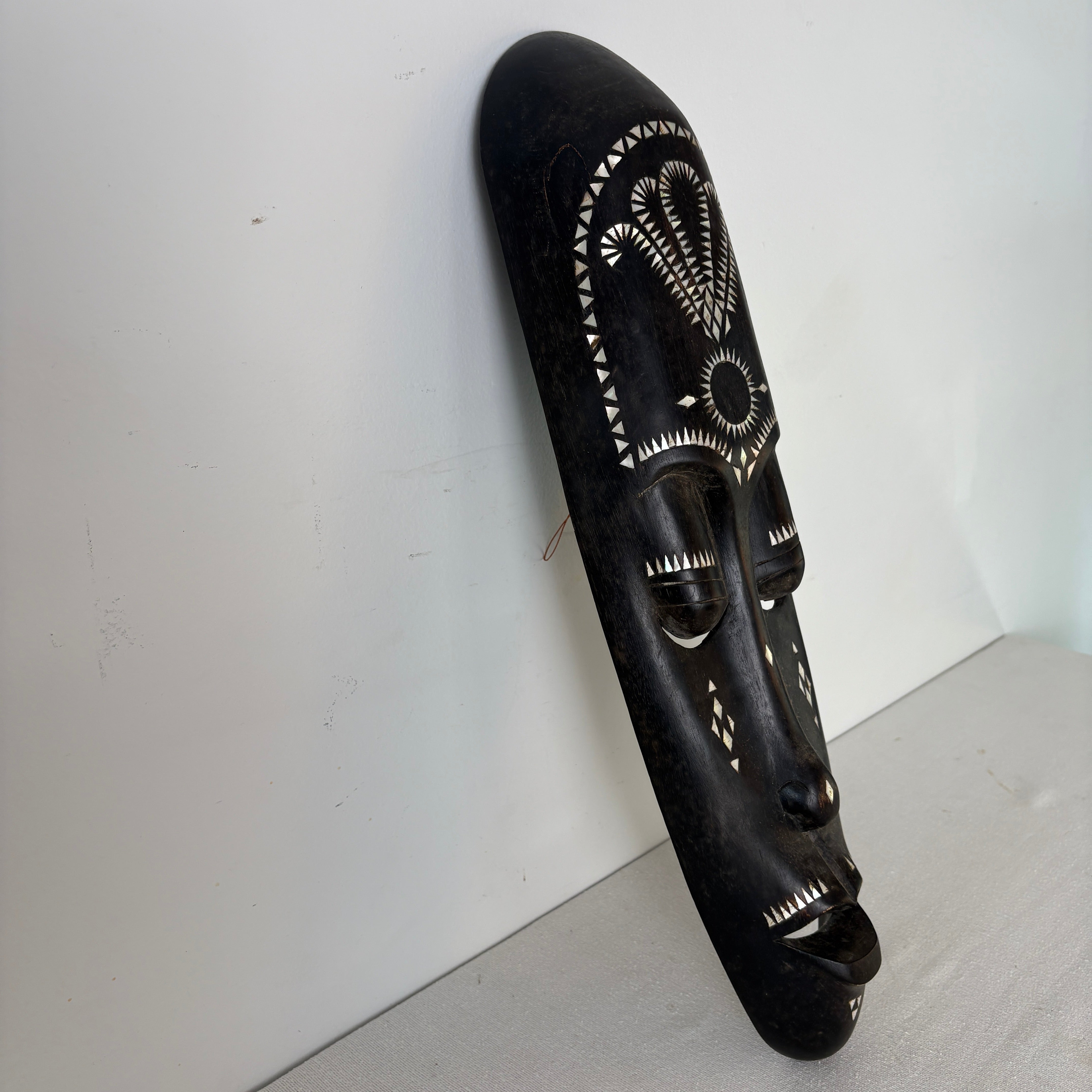 Tall Indonesian Tribal Mask with Mother of Pearl Inlay. Vintage.