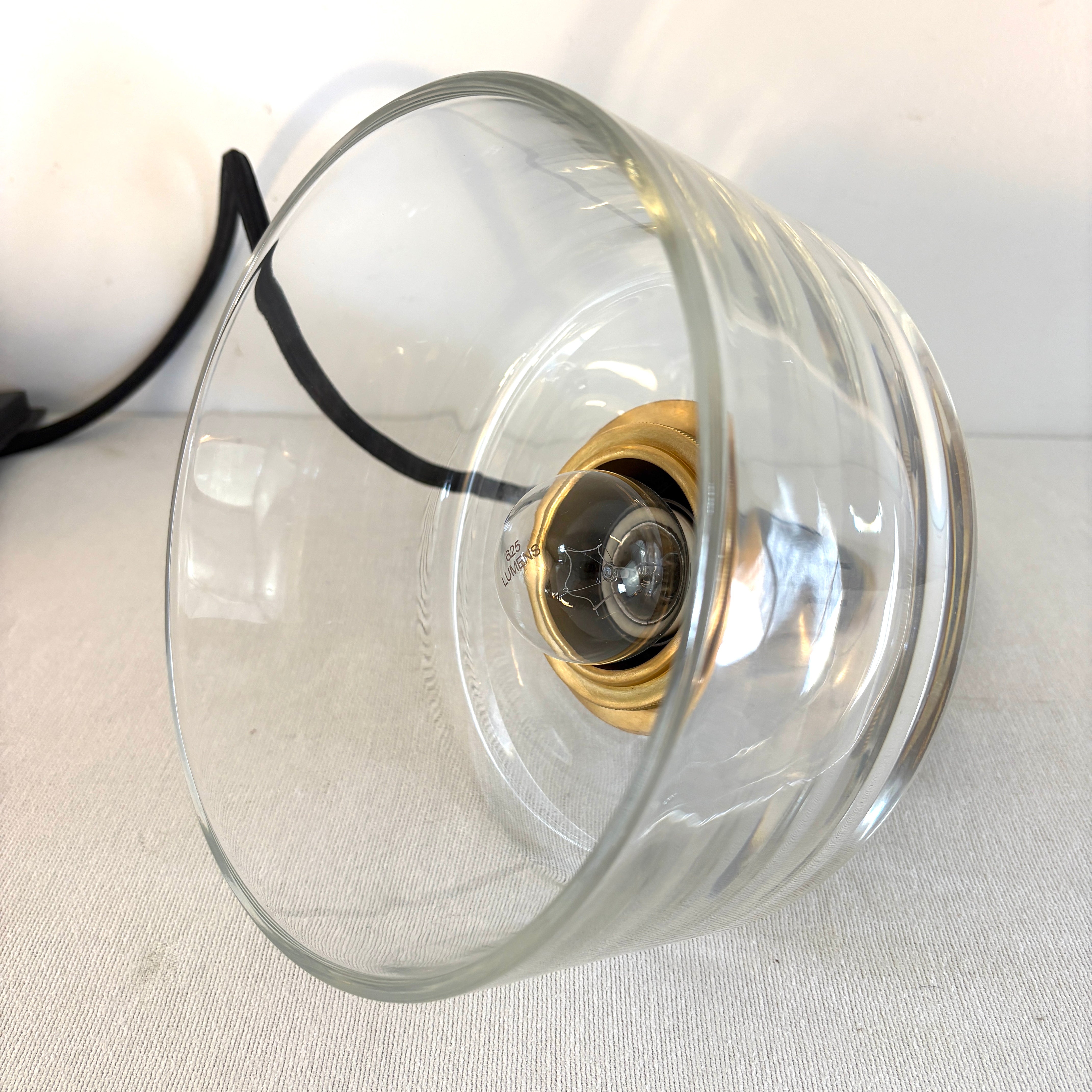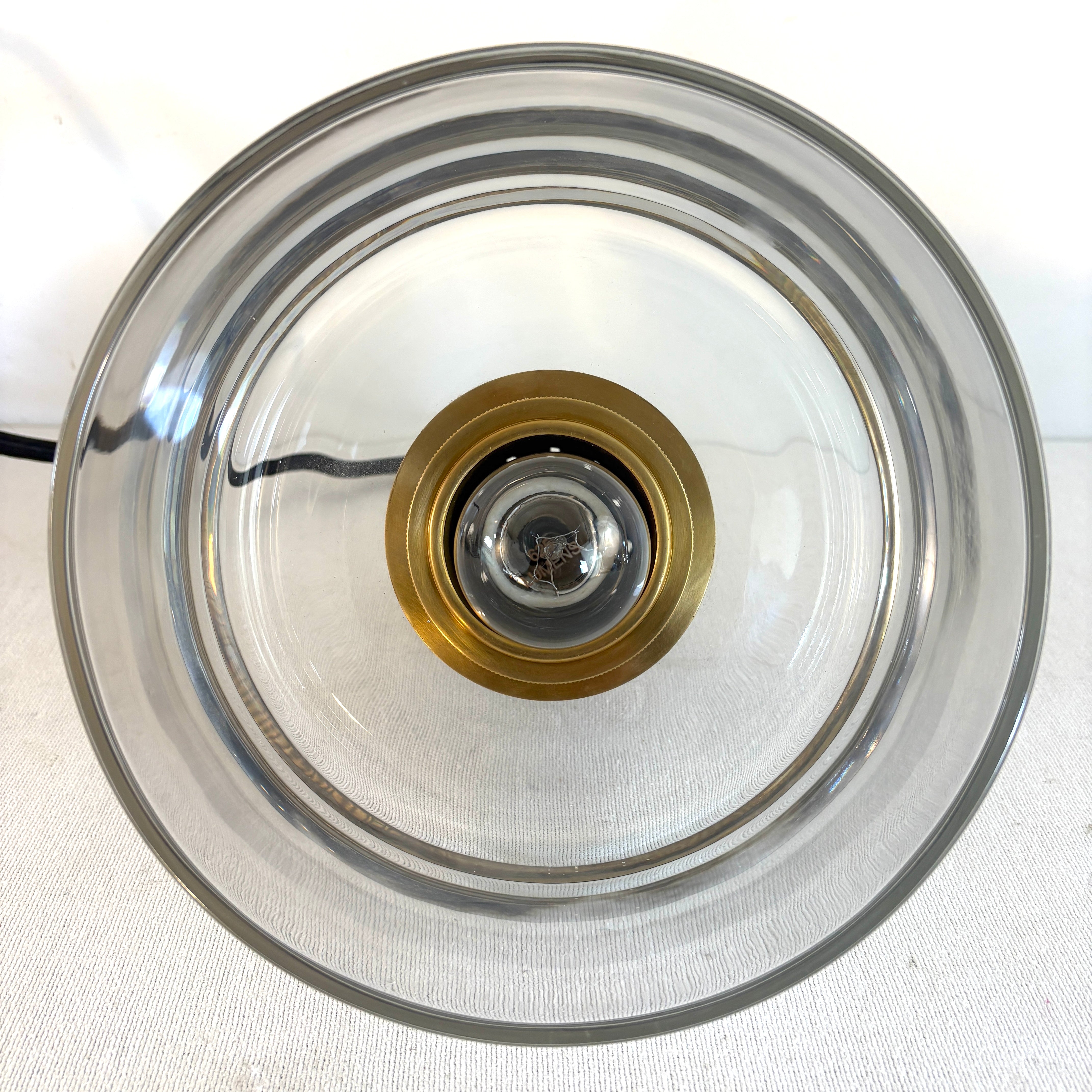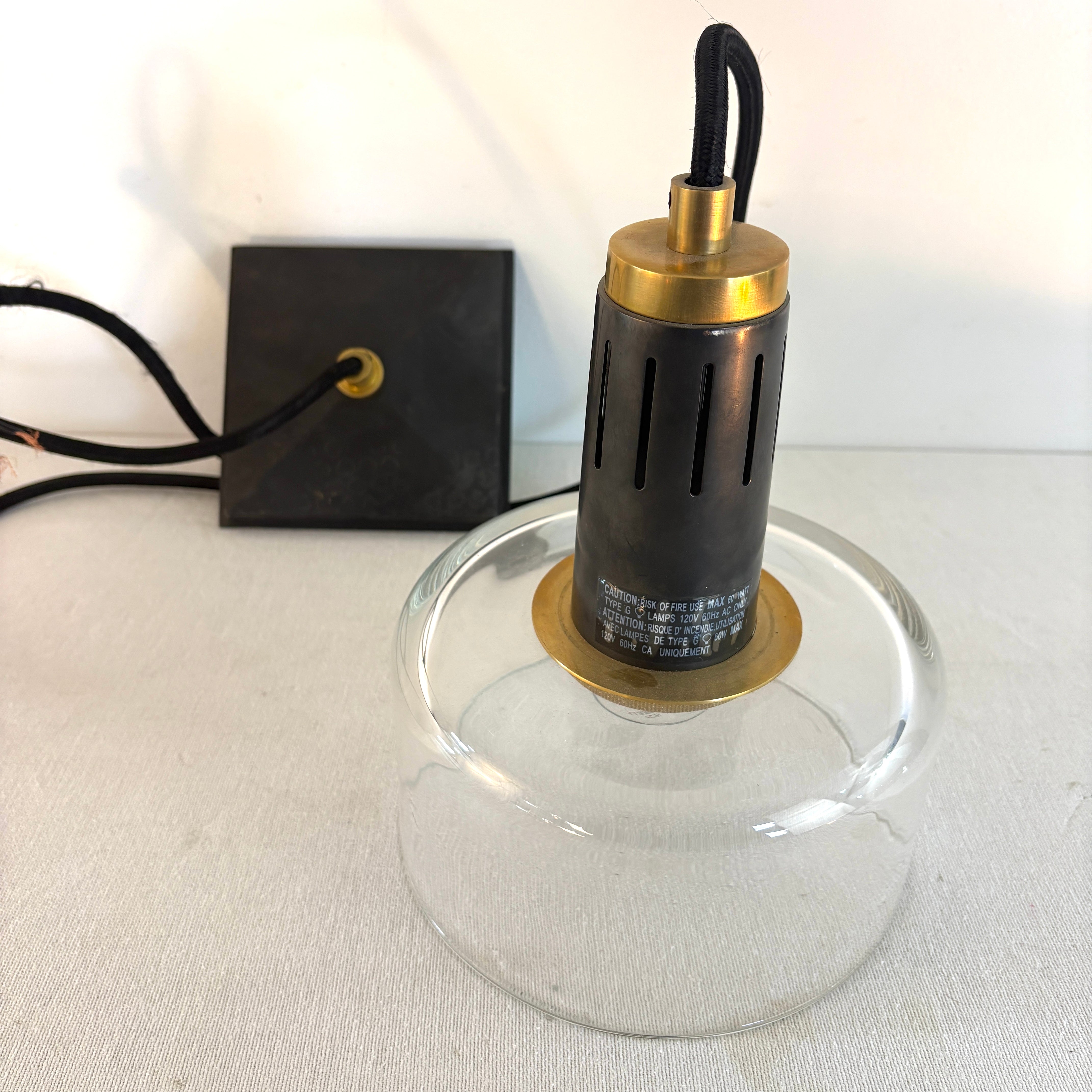 Thomas O'Brien for Visual Comfort Iris Pendant in Brass with Clear Glass Round Shade.