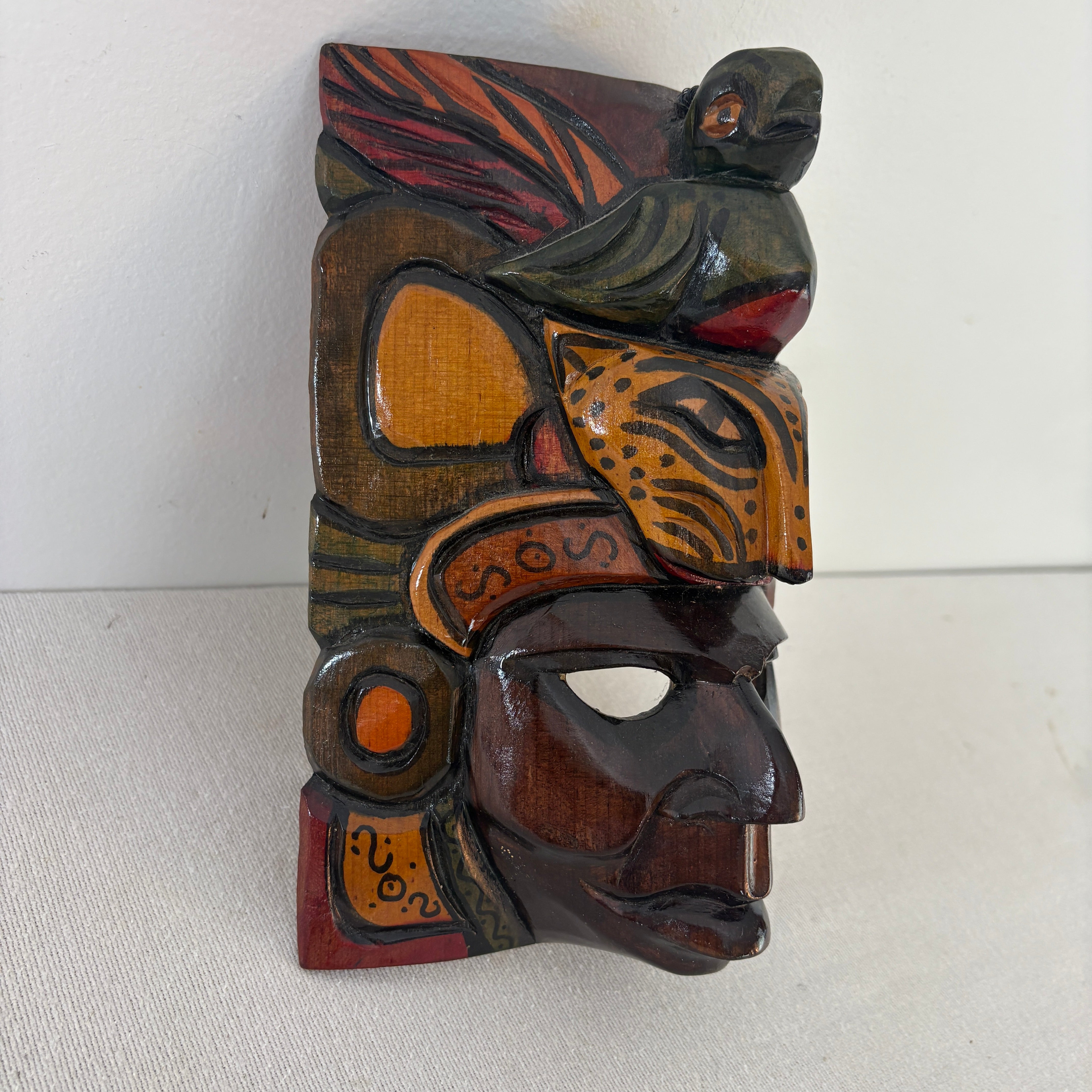 Totem Style Mask, Hand Carved and Hand Painted in Solid Wood. It Has a Hook in the Back For Hanging.