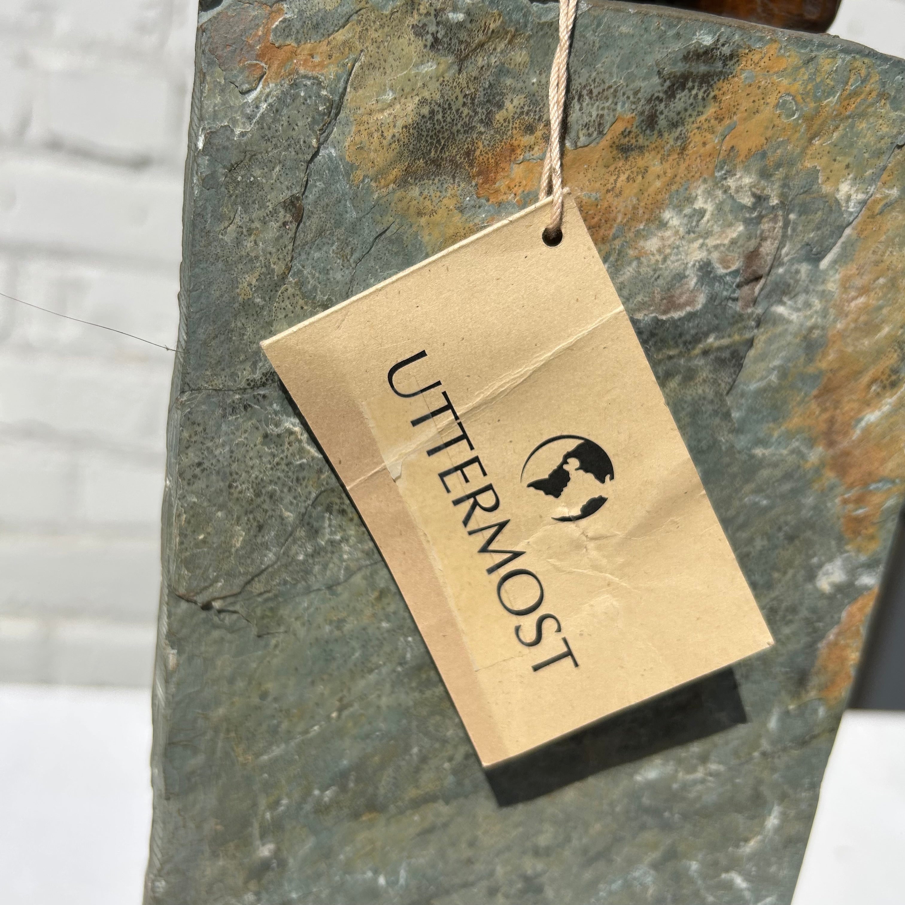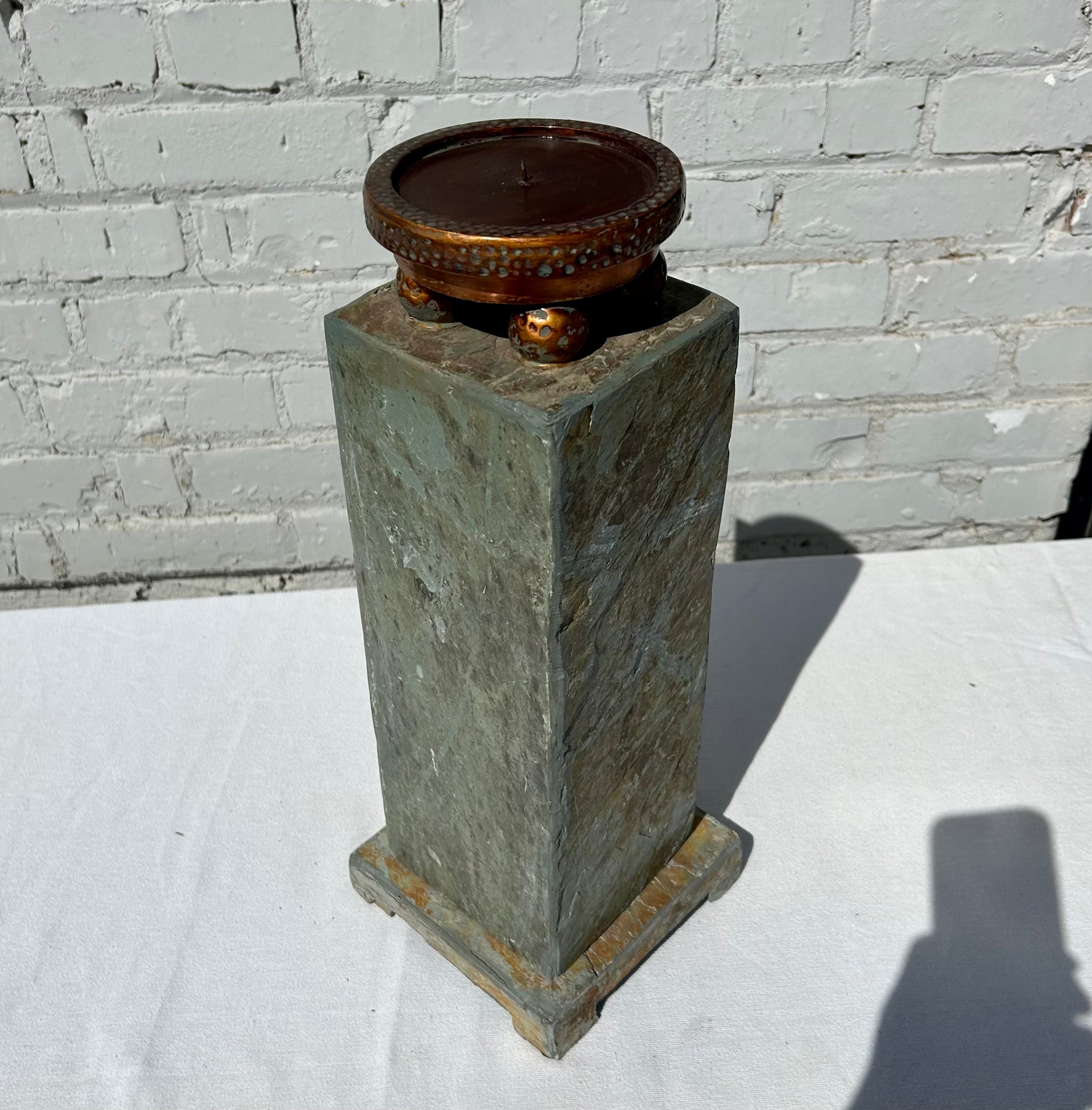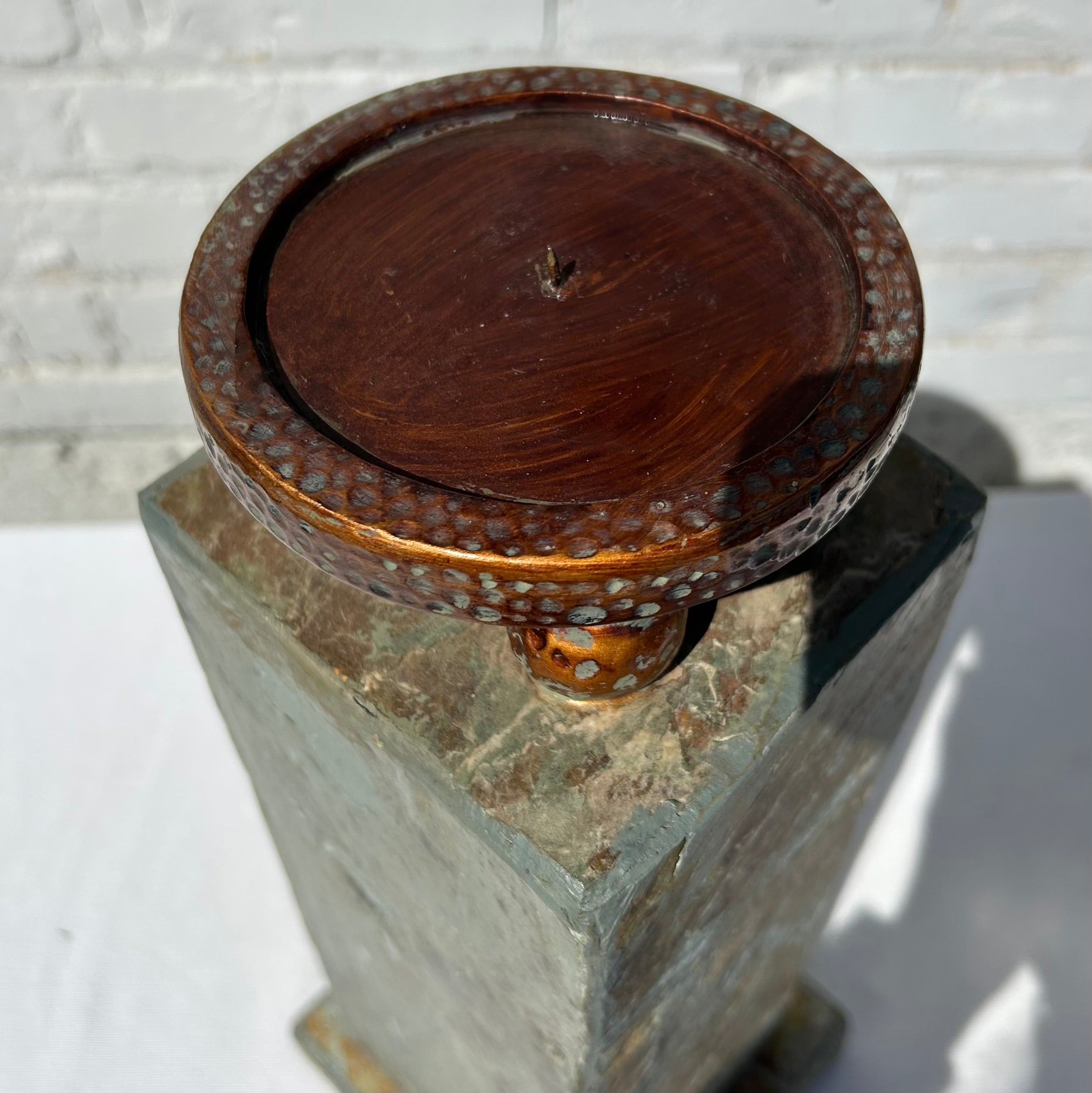 Uttermost, candle holder in slate stone with copper toned top, medium size.