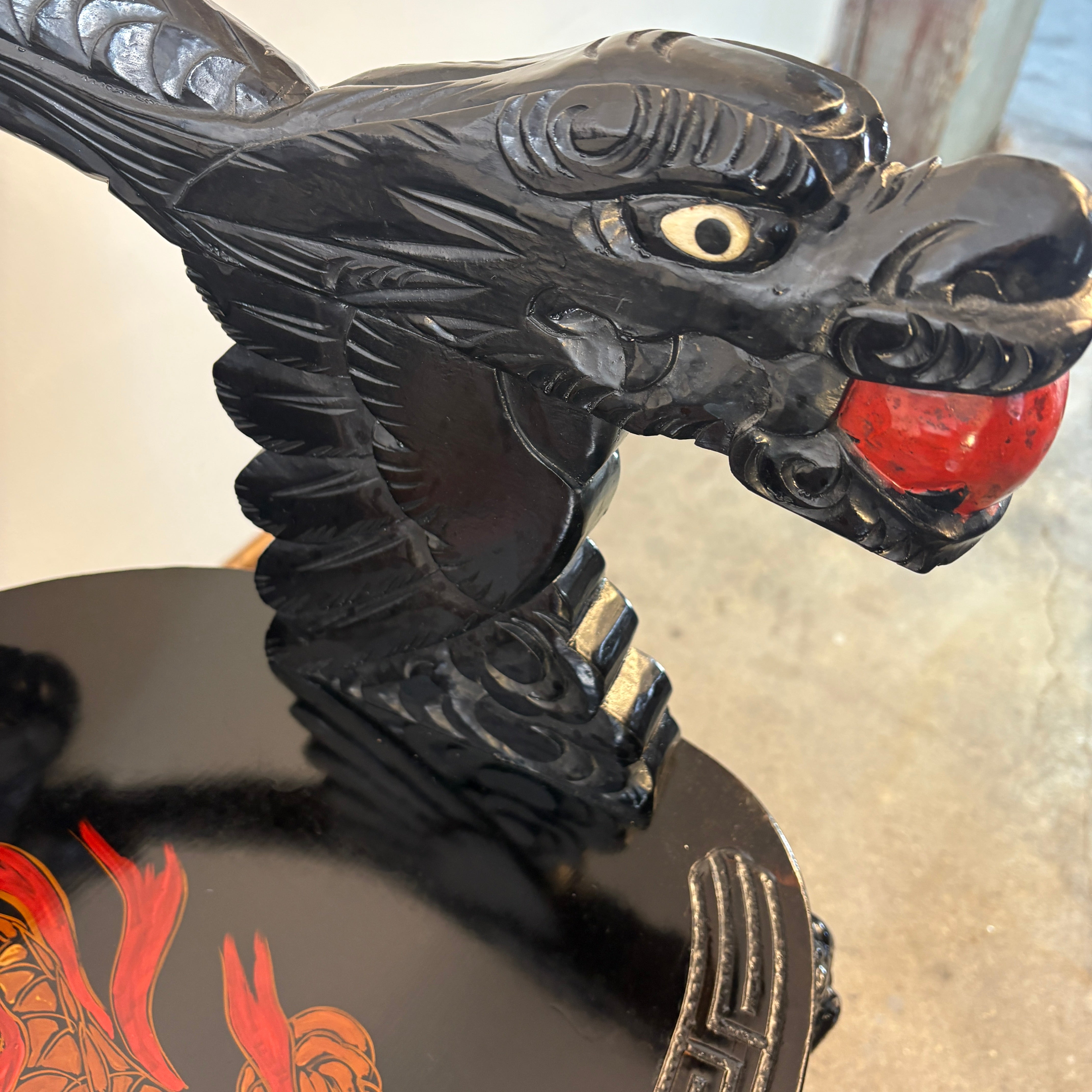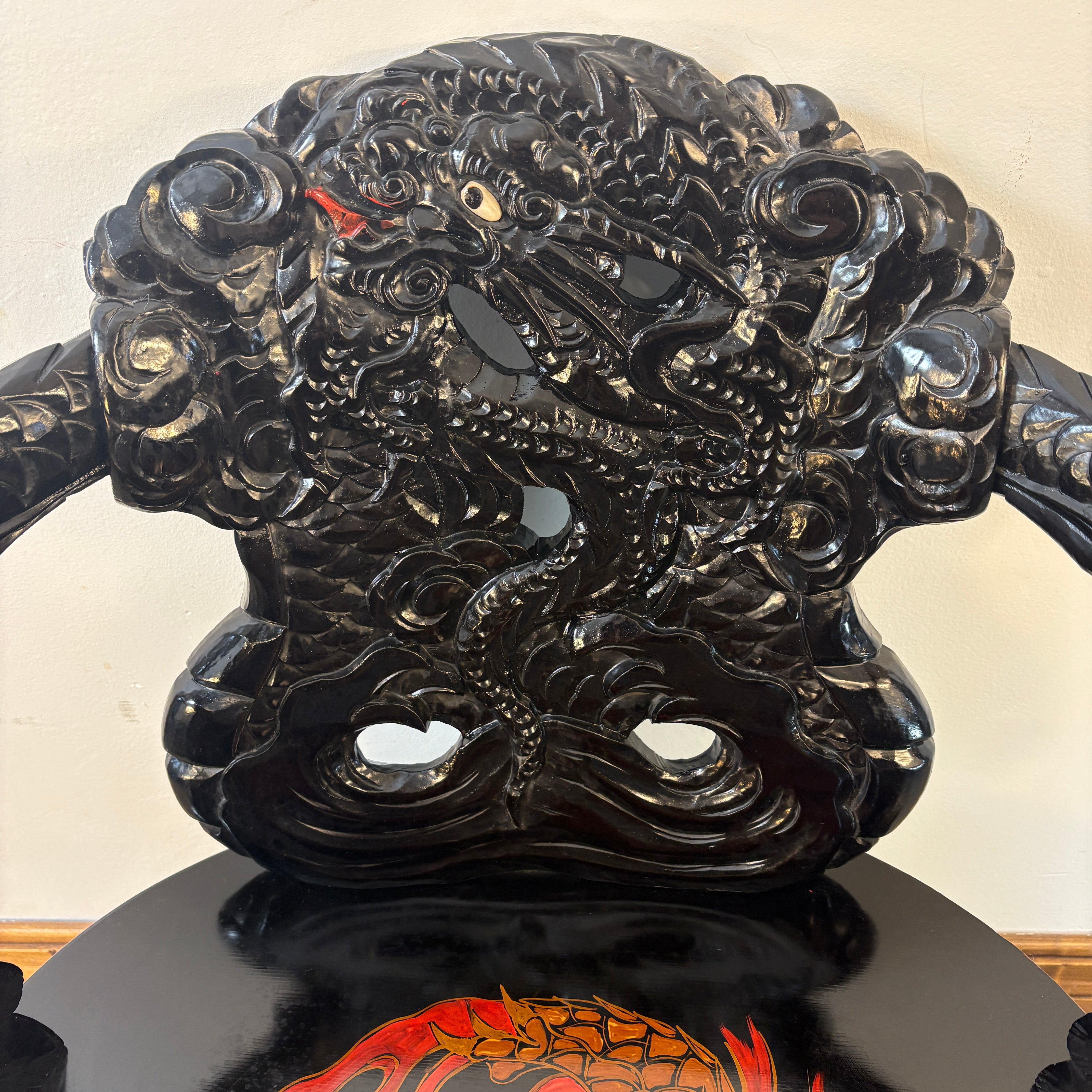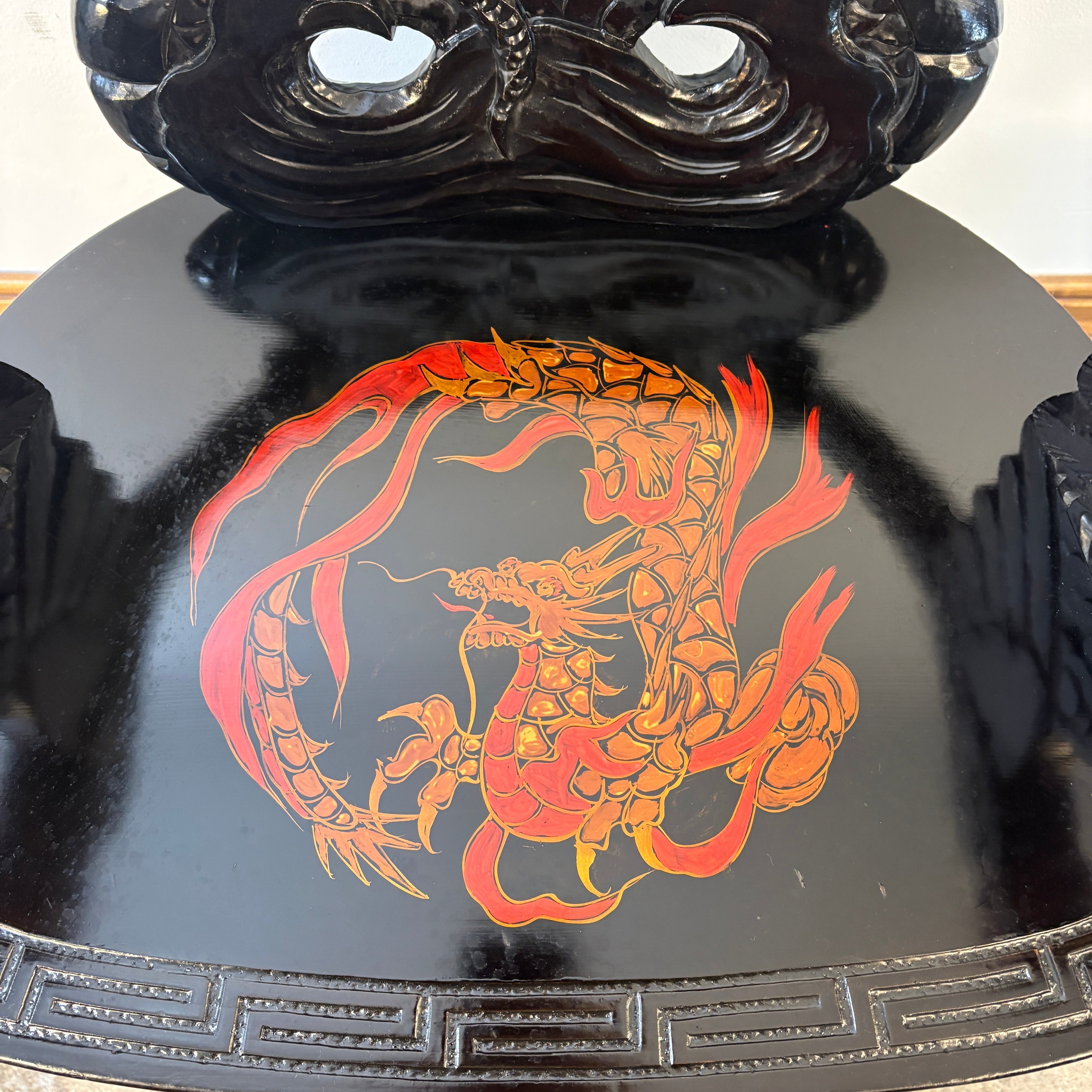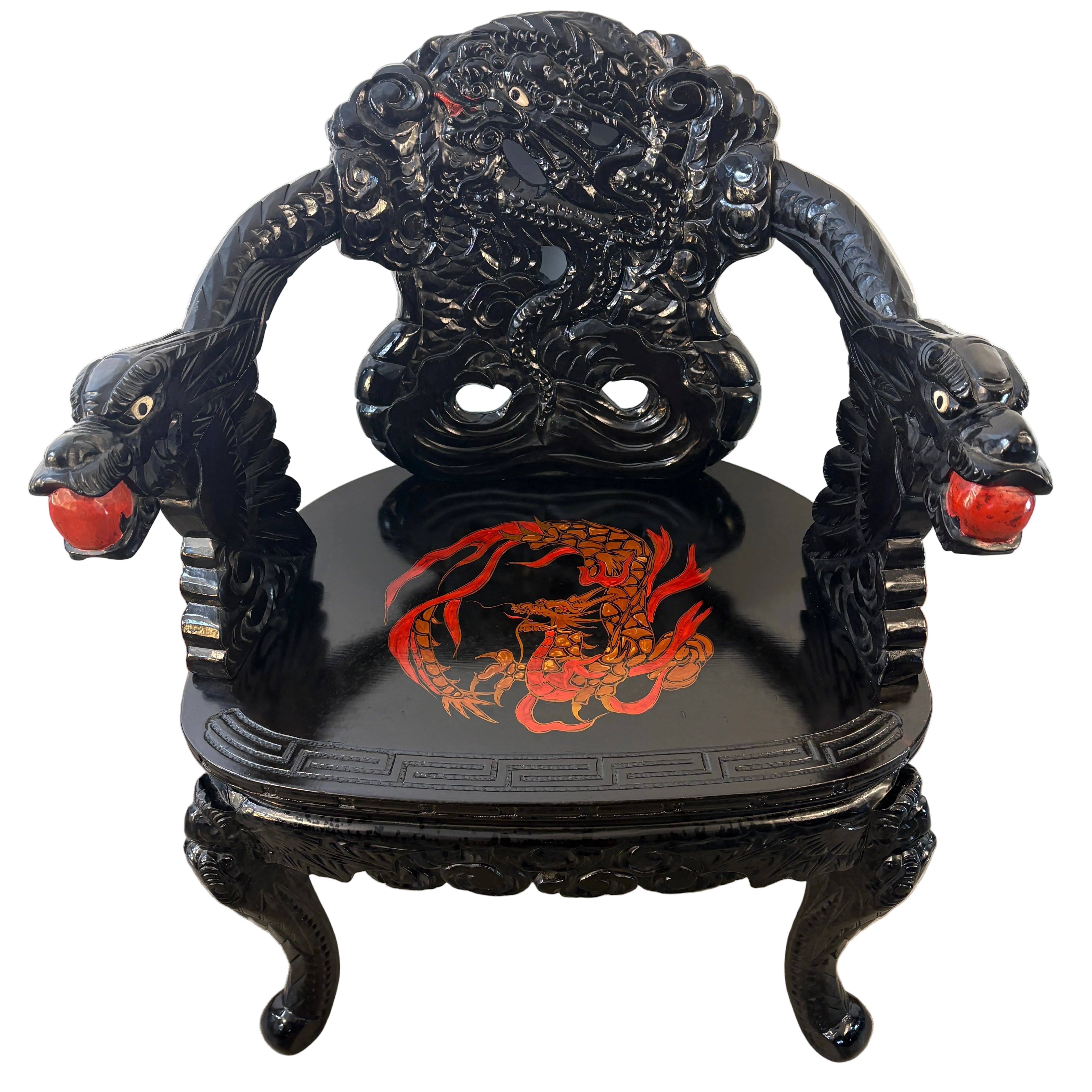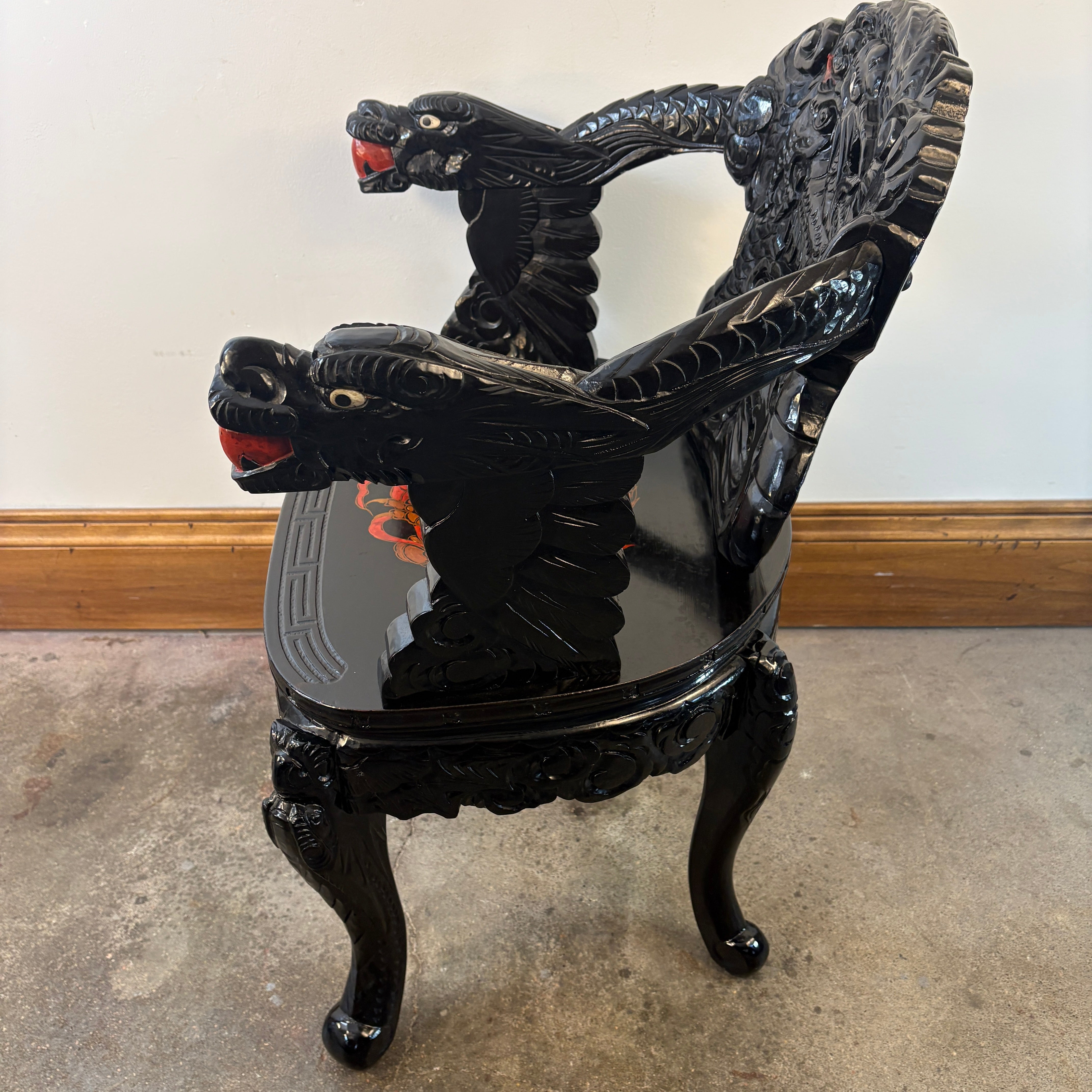 Vintage Japanese Carved Wood and Lacquer Finish Arm Chair, Handpainted Dragon Motif, Meiji Period