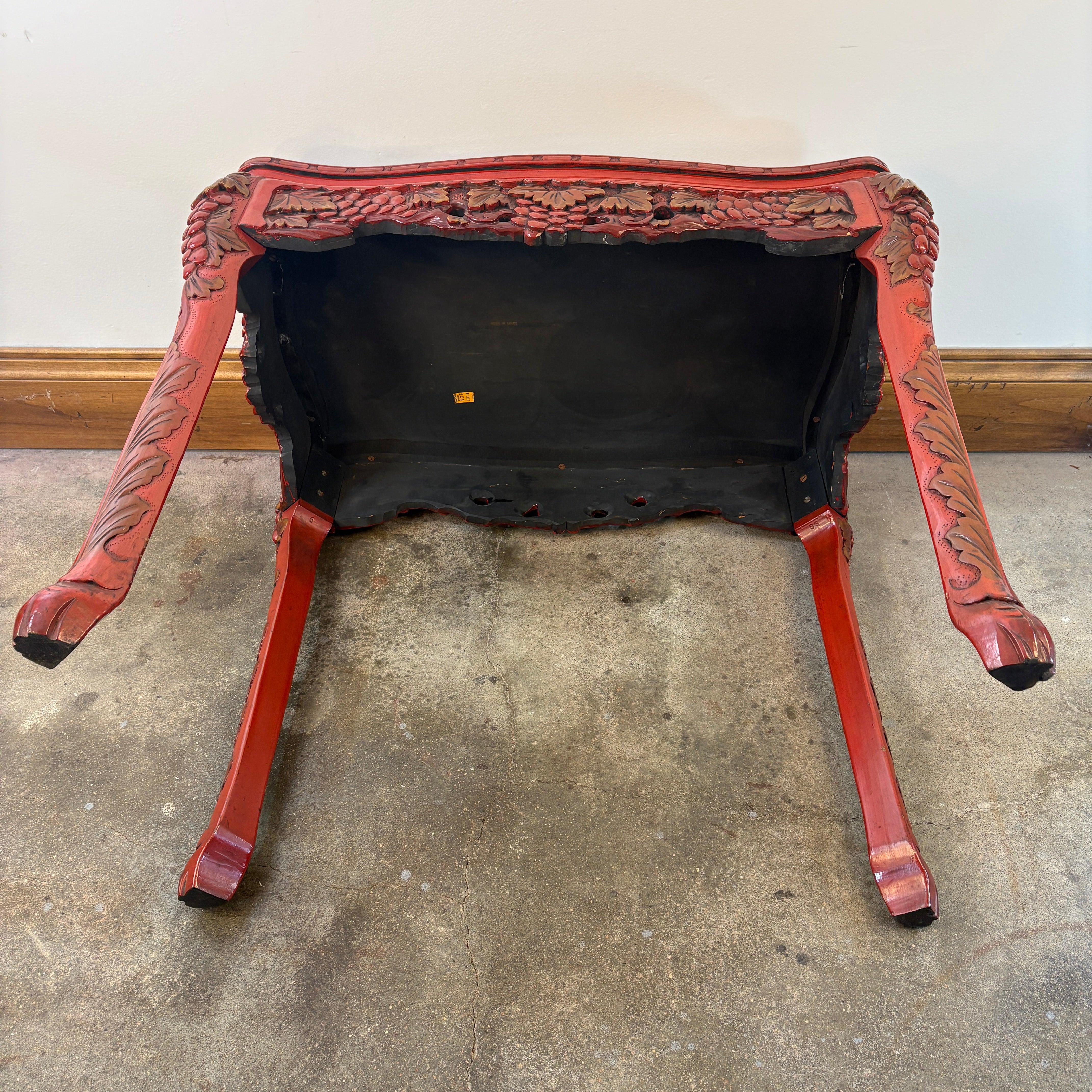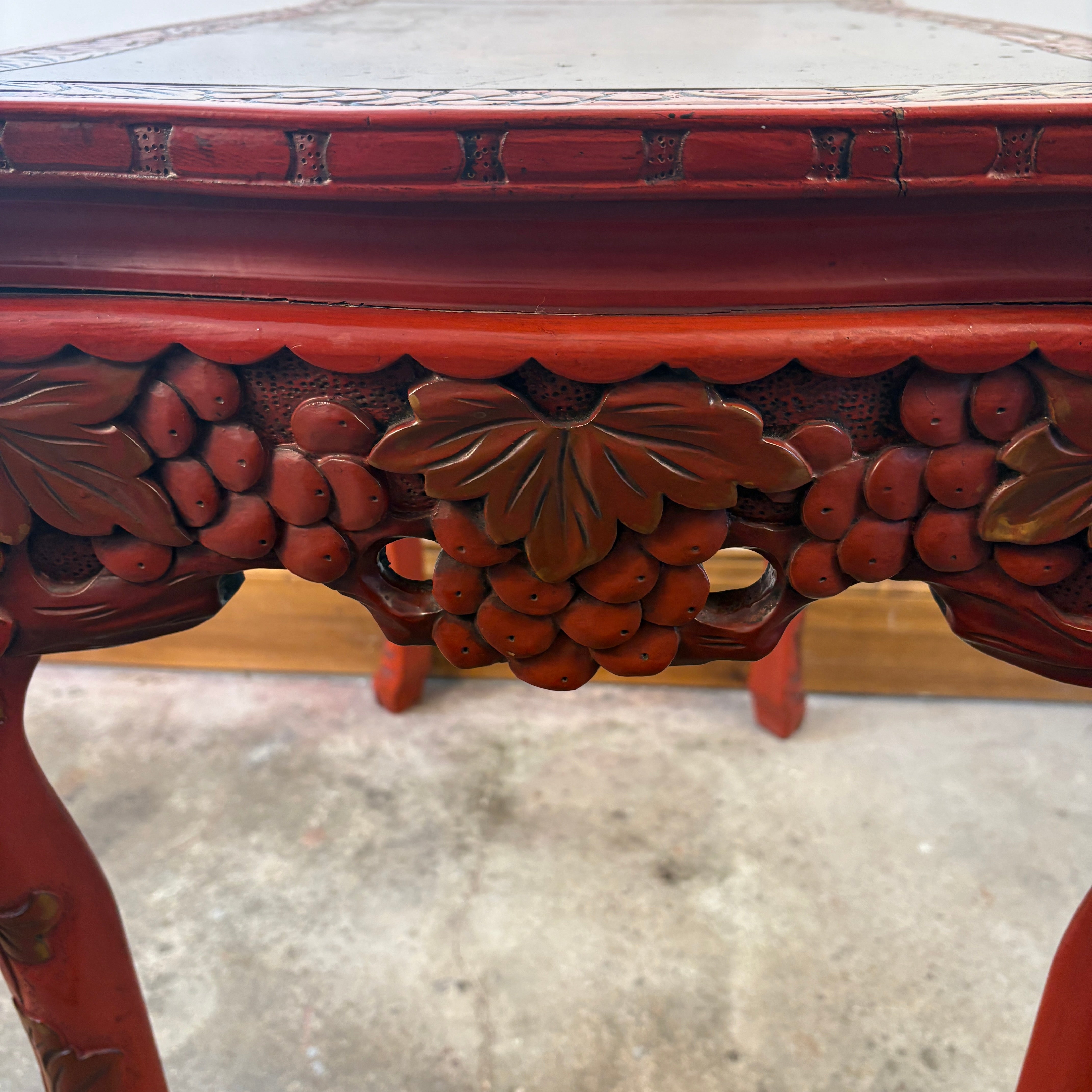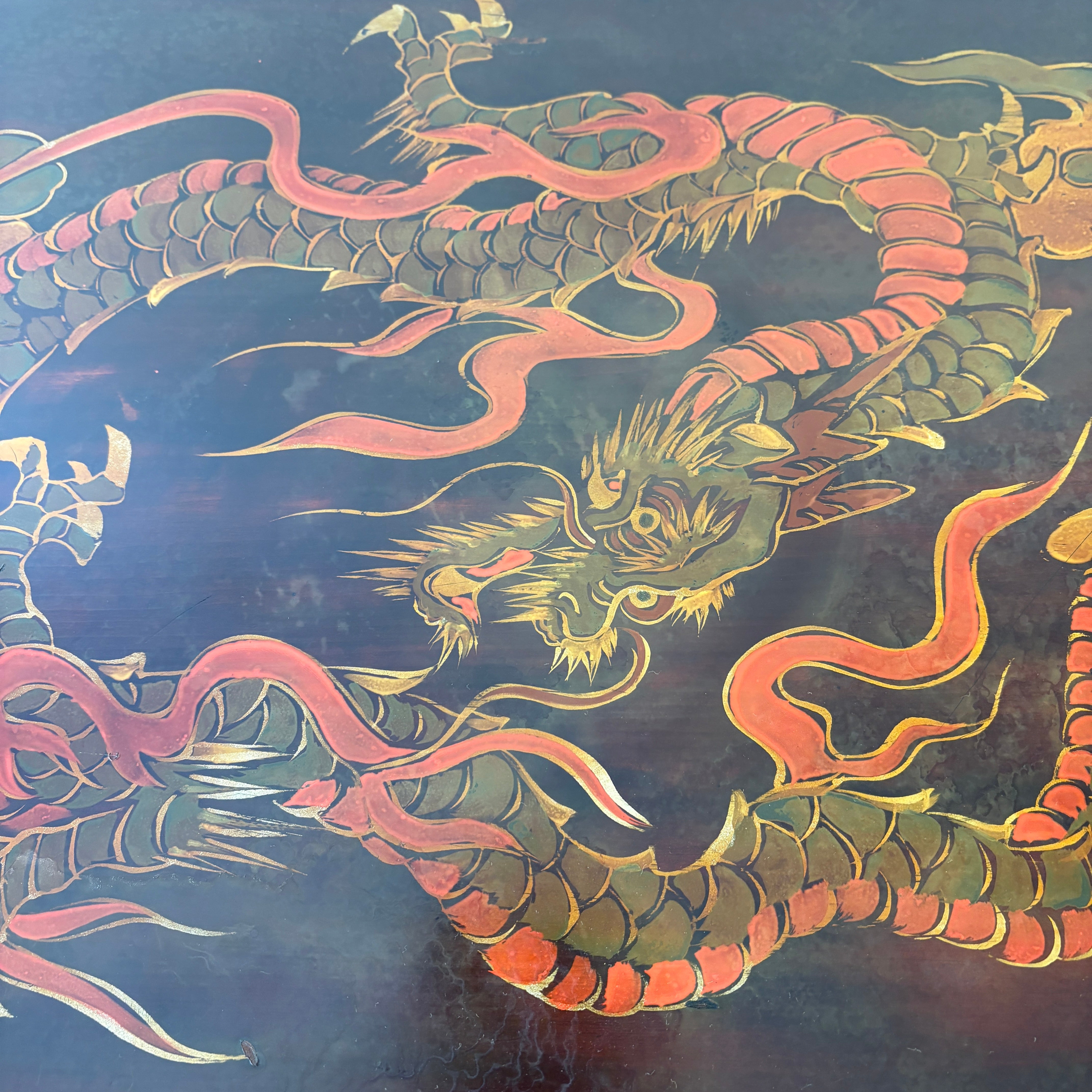Vintage Japanese Carved Wood and Lacquer Finish Table or Desk, Hand Painted Dragon Motif, Meiji Period