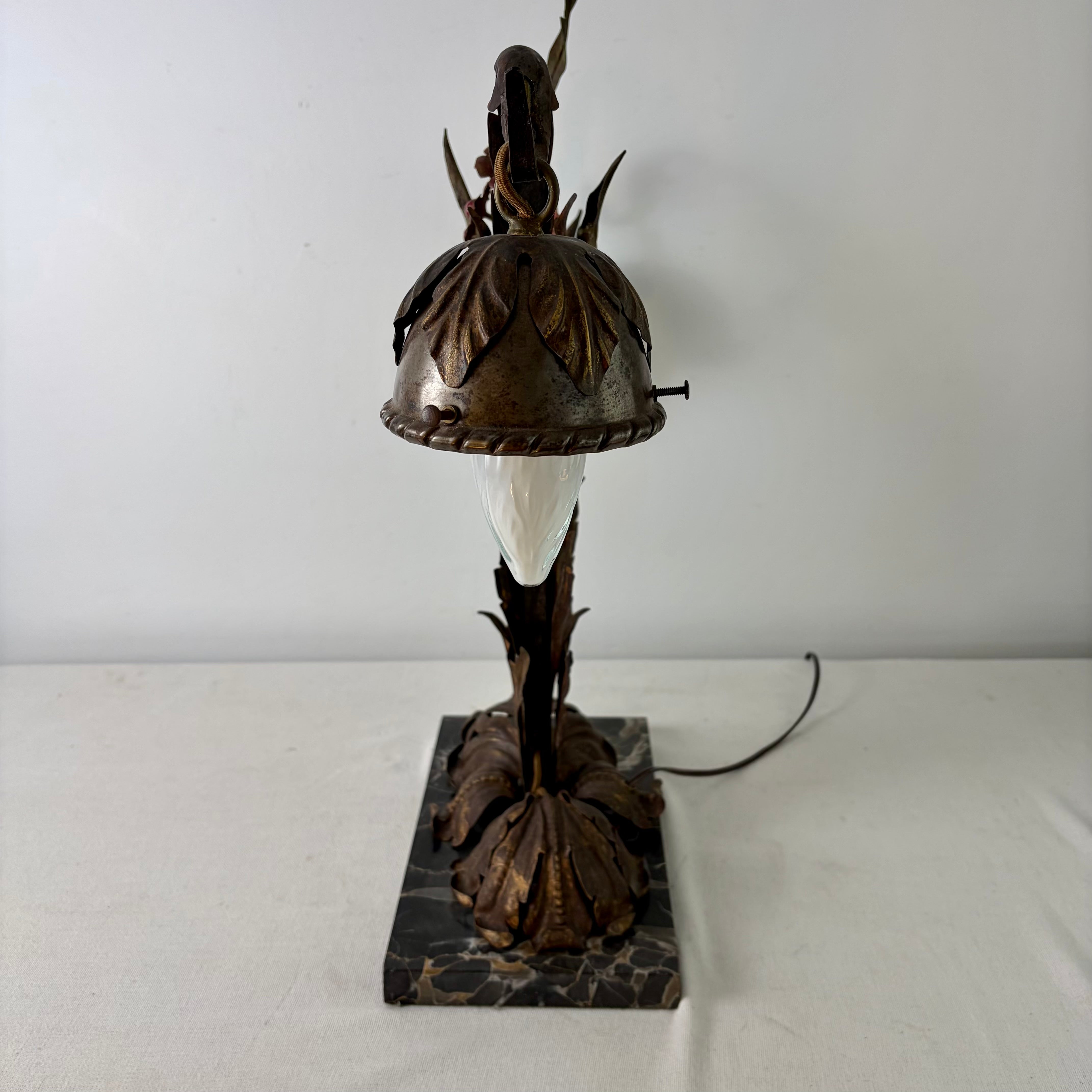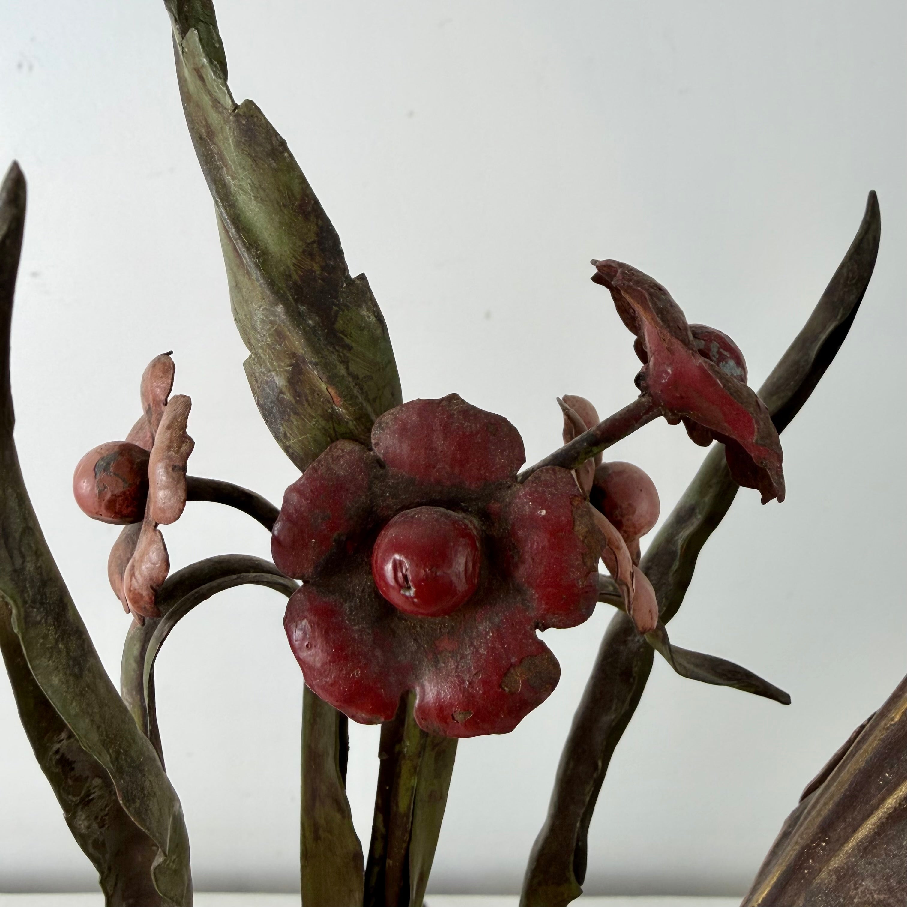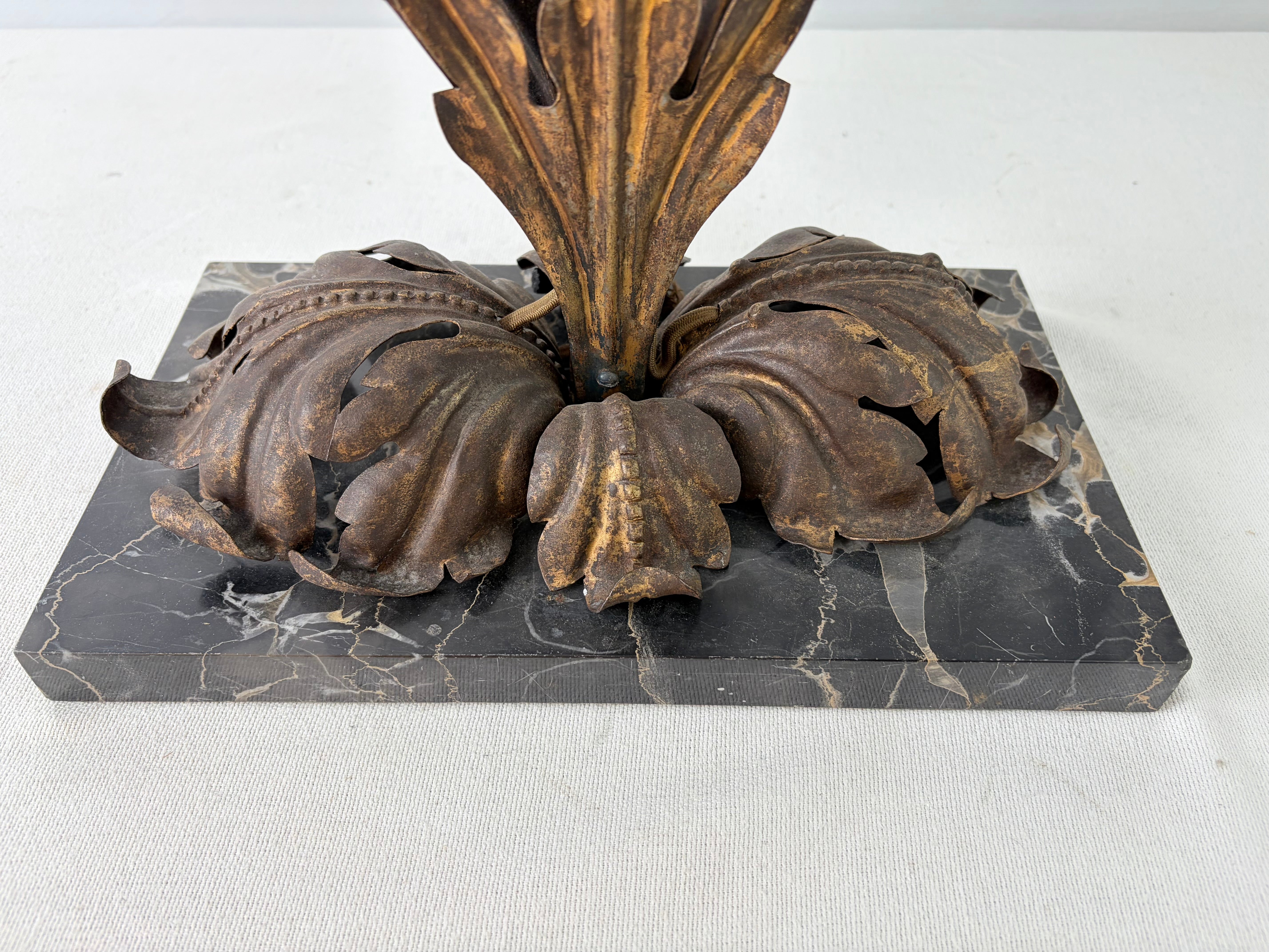 Vintage Table Lamp, Two Arm, Floral Accents in green, maroon and pink. Missing original shades. Uses standard size light bulbs.