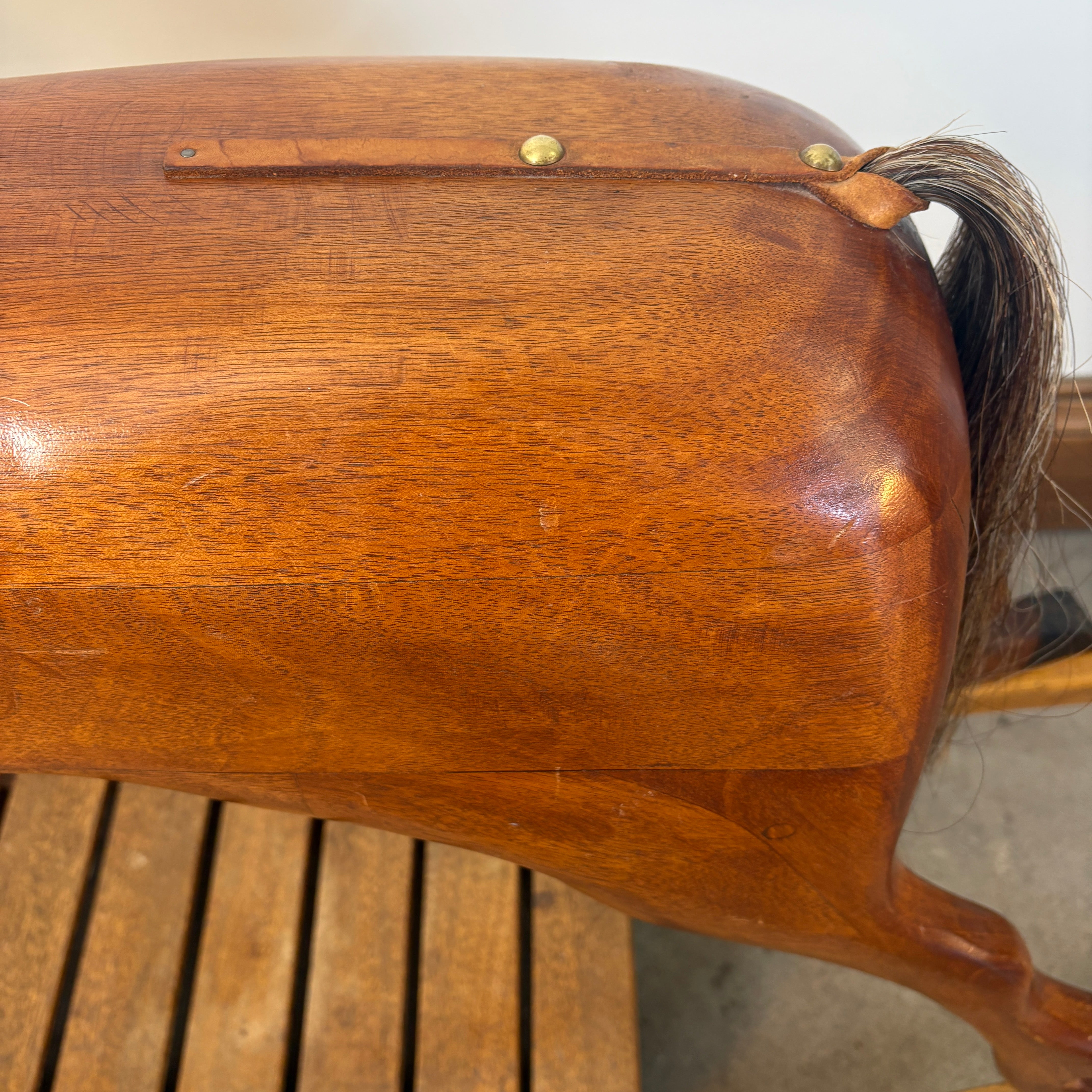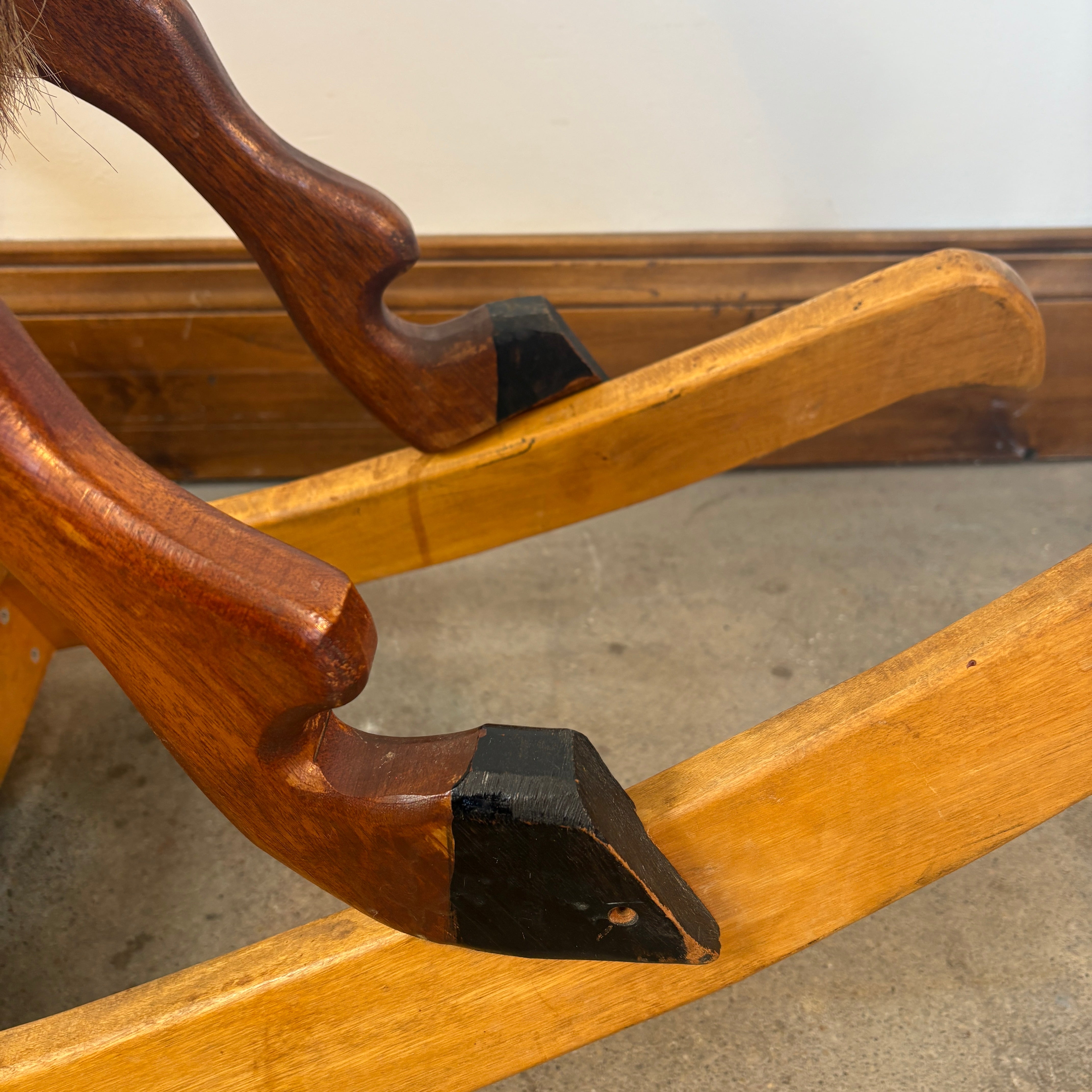 Vintage Wooden Rocking Horse with Horse Hair Tail