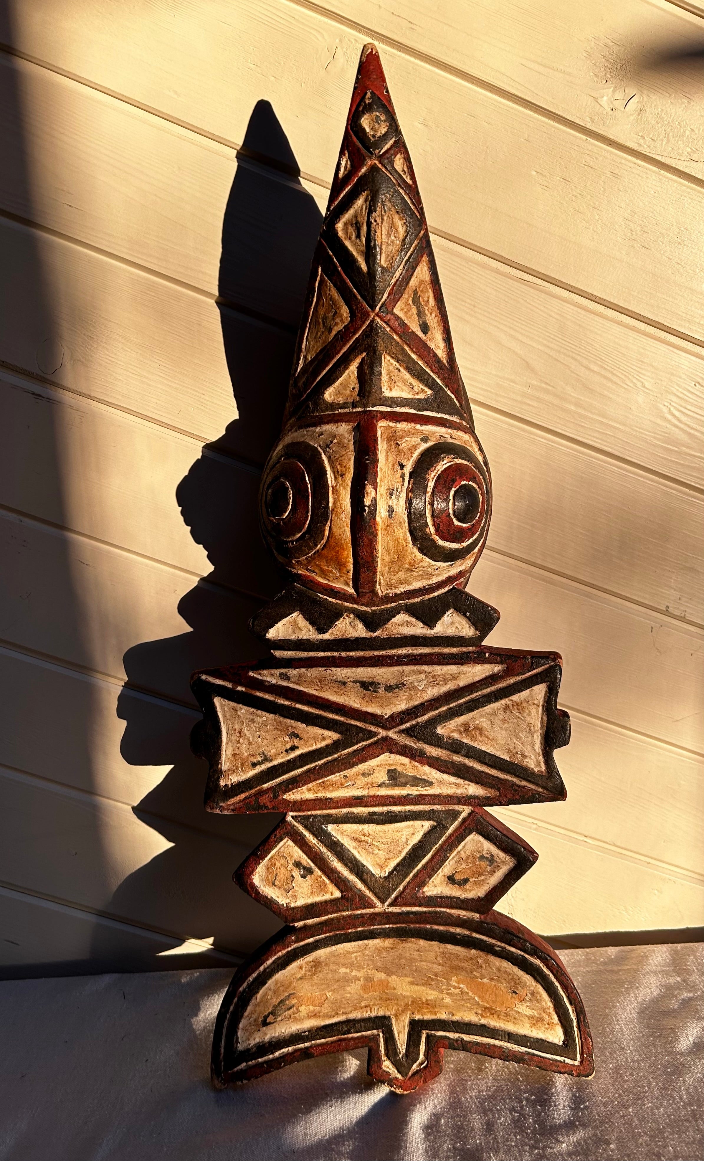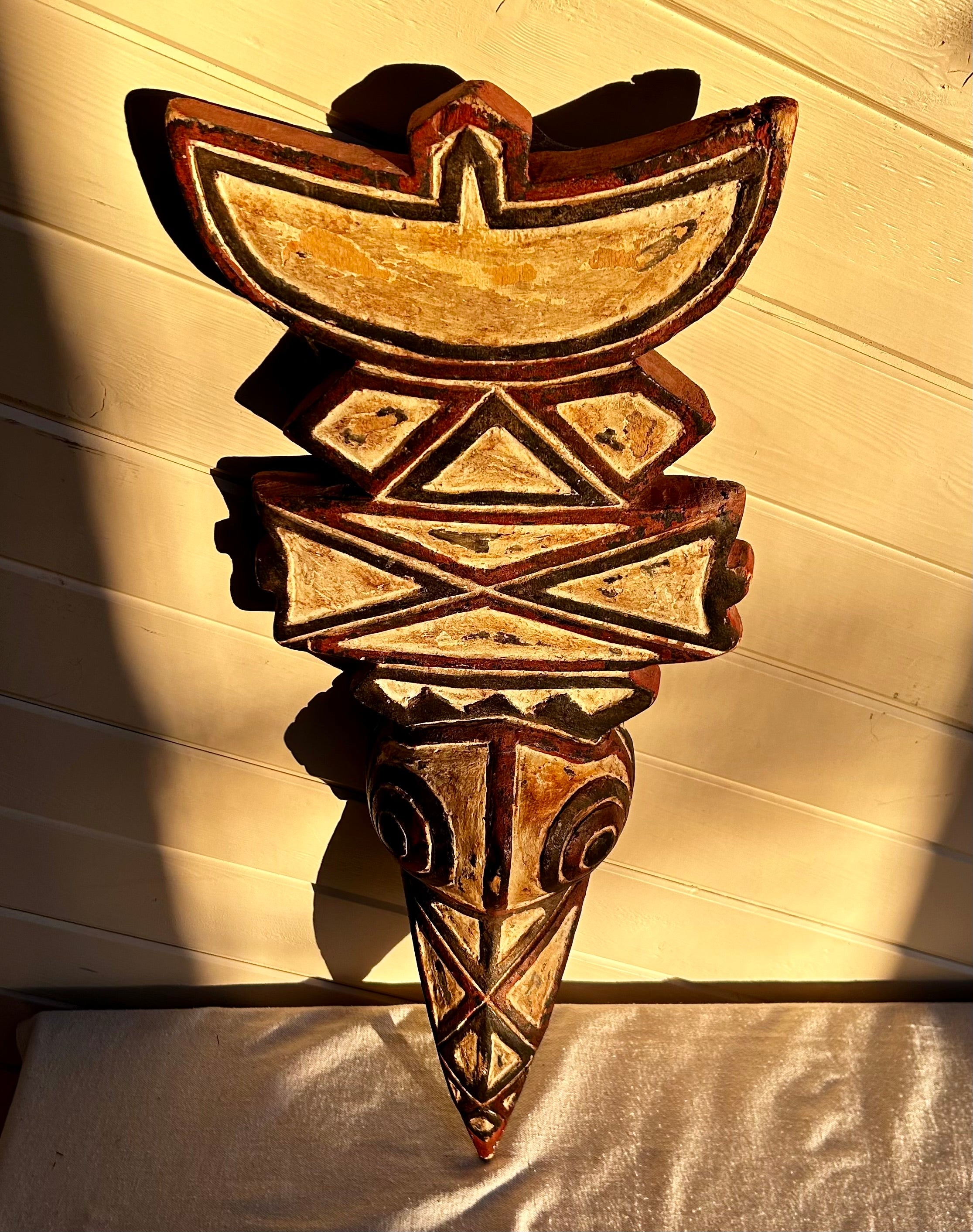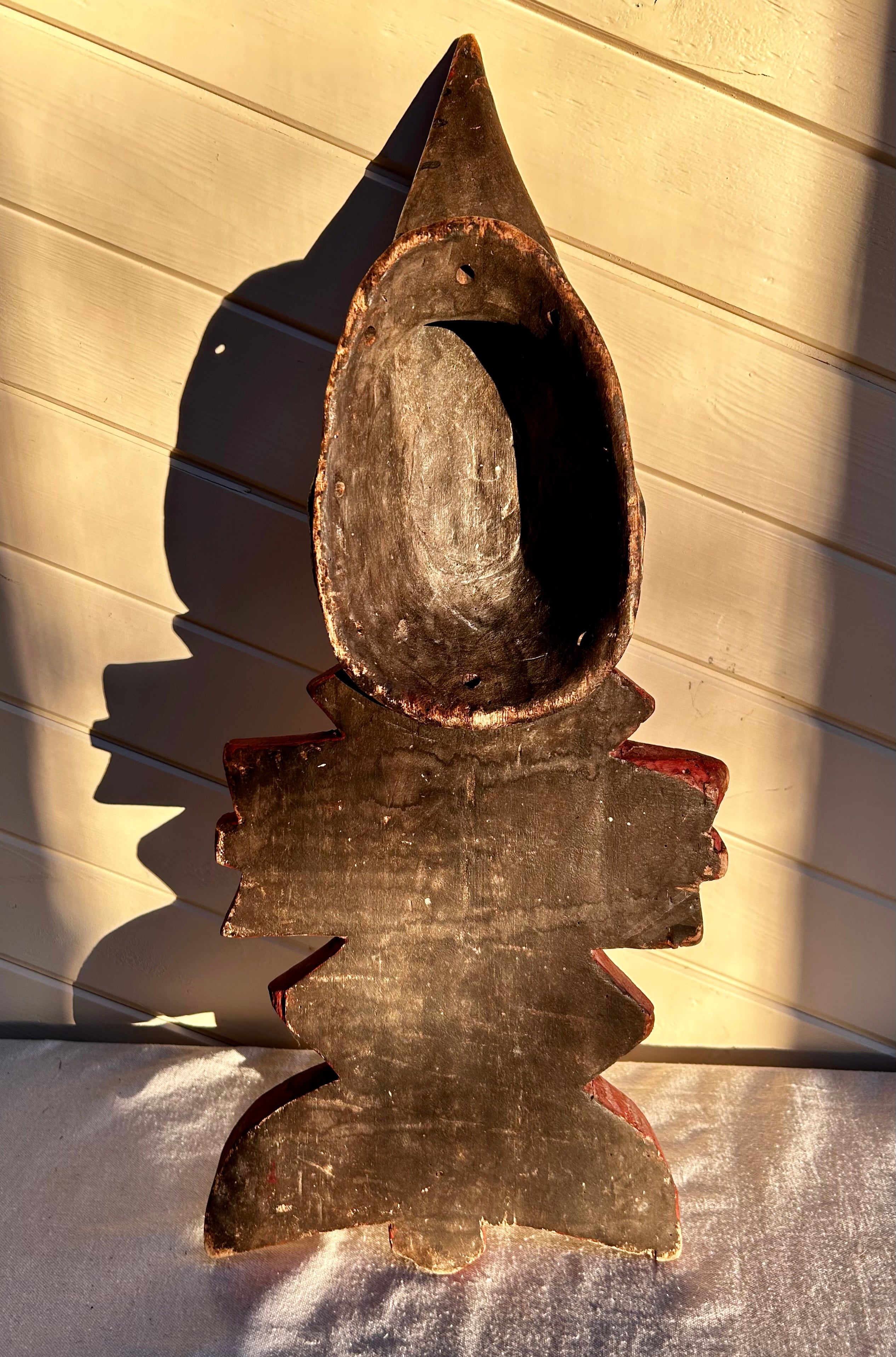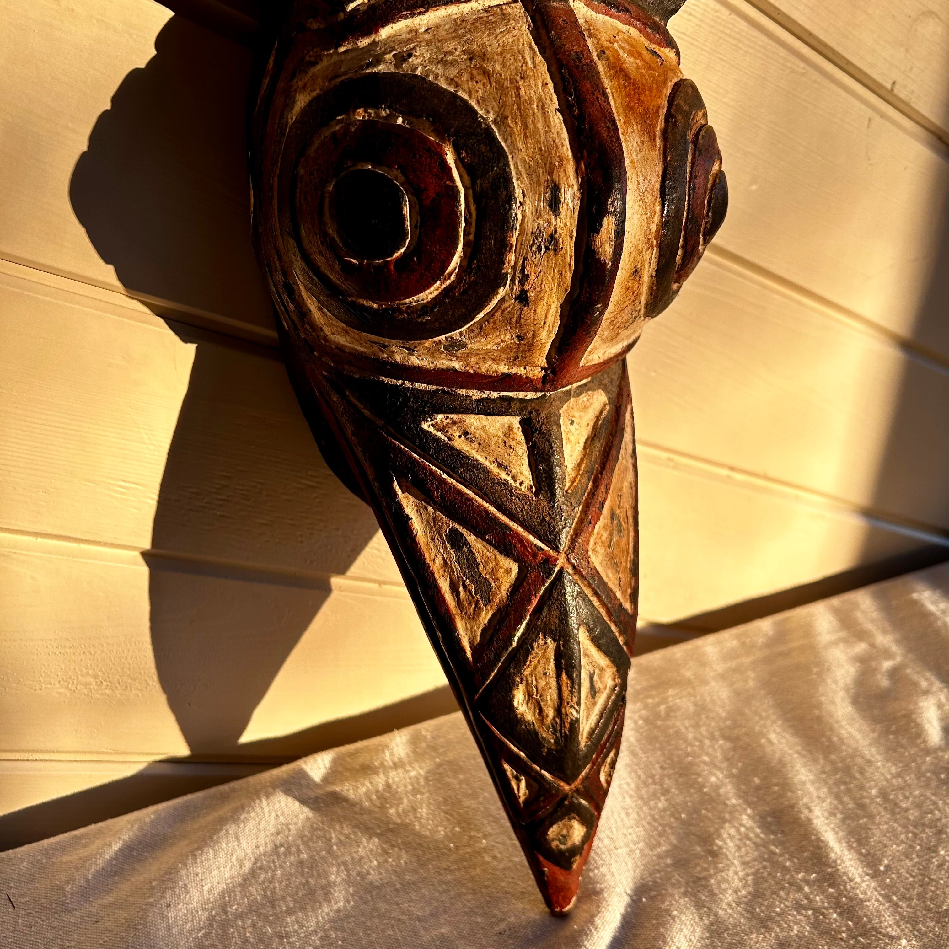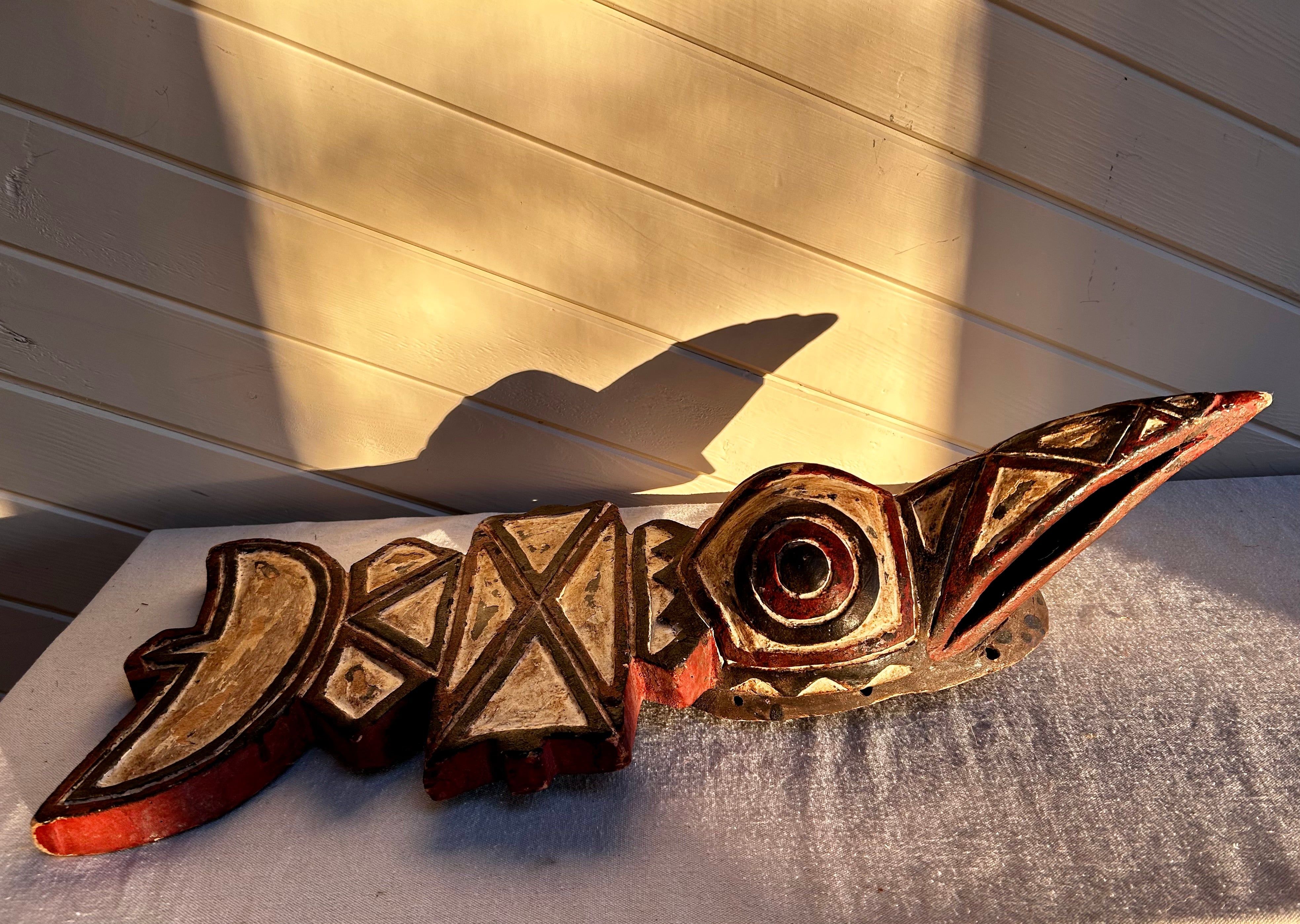 Primitive art mask wall hanging, large carved bird, vintage. Hand painted. We do not know the origins of this.