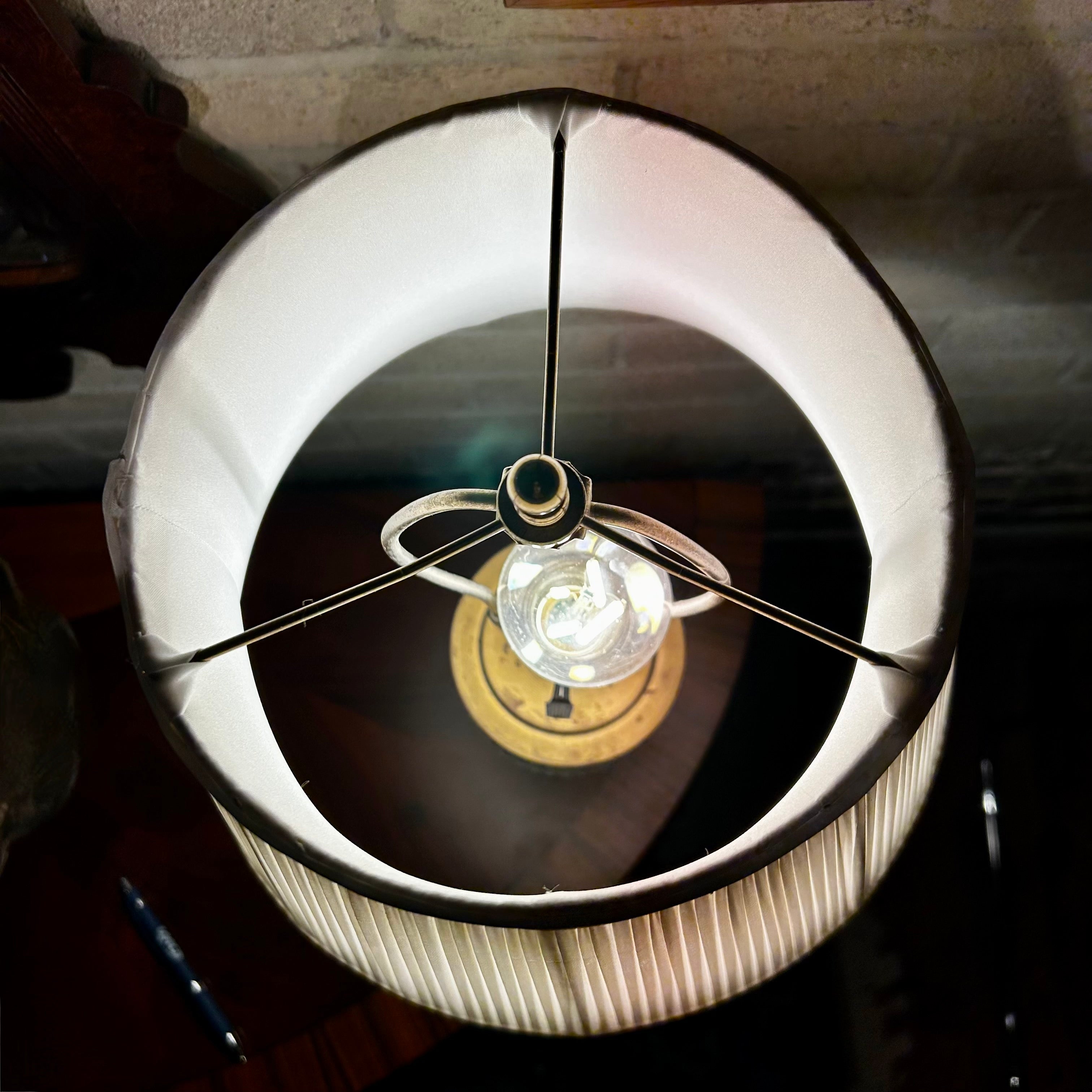Condition: gently used, very good. Has some patina at top and base of brass. Electrical component functions as intended.