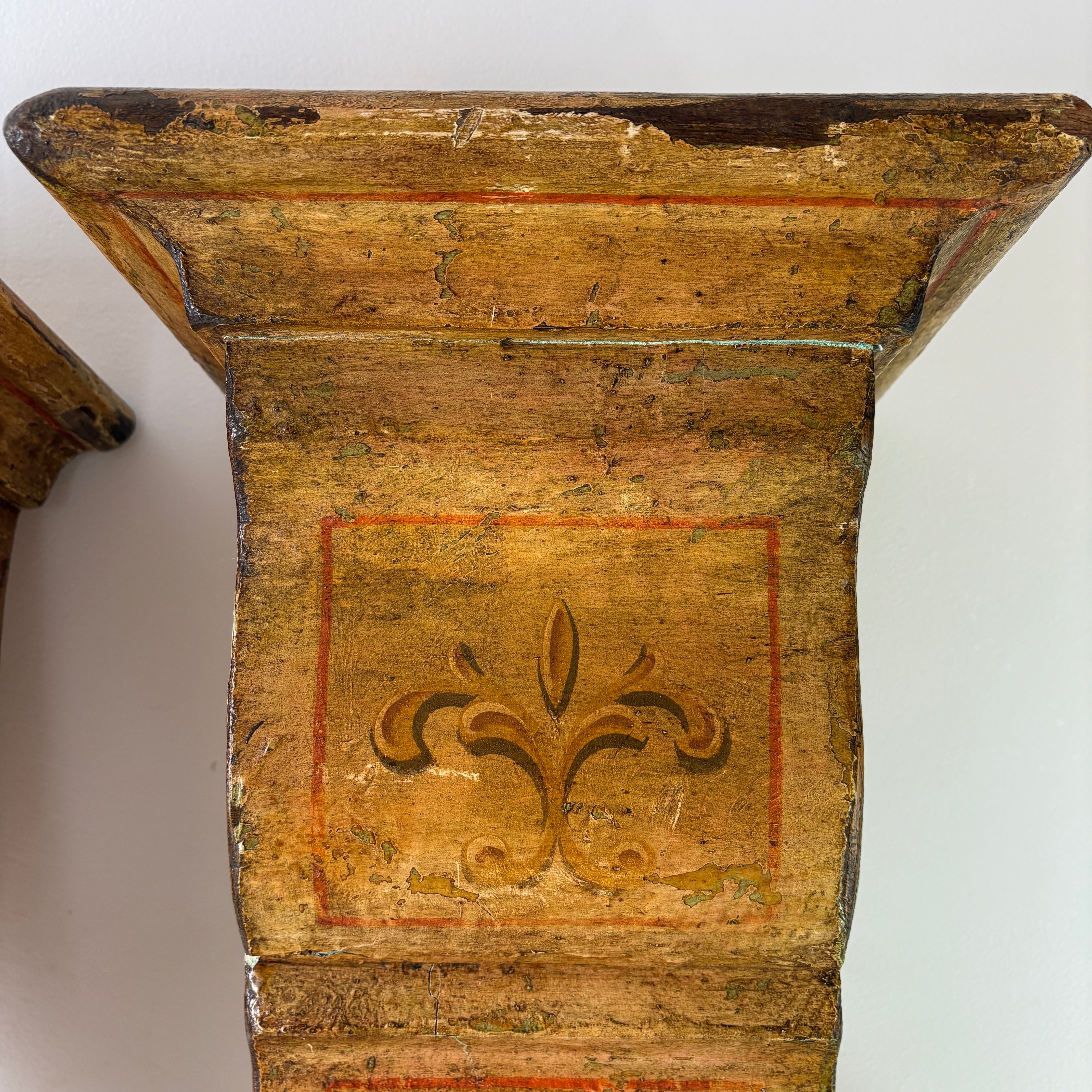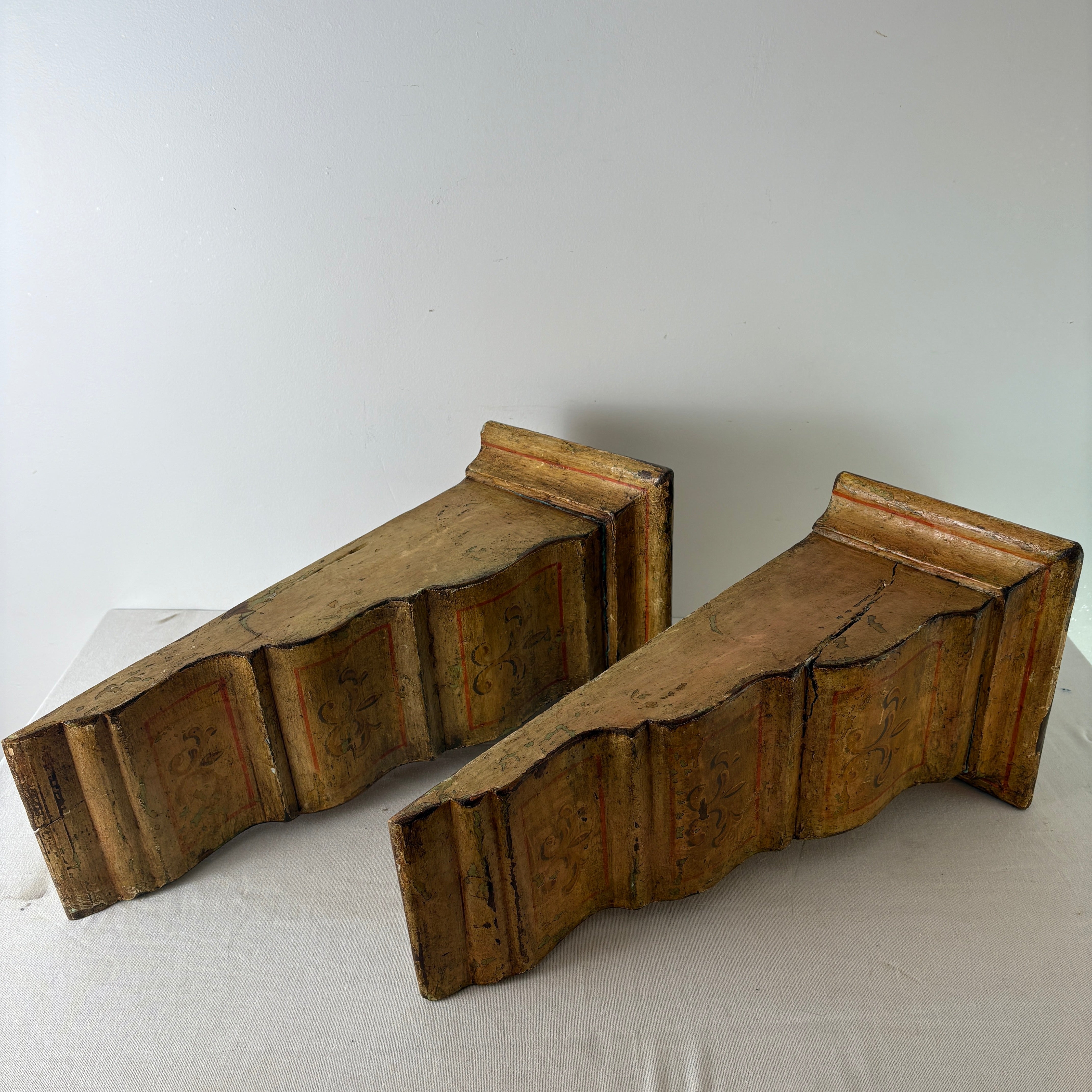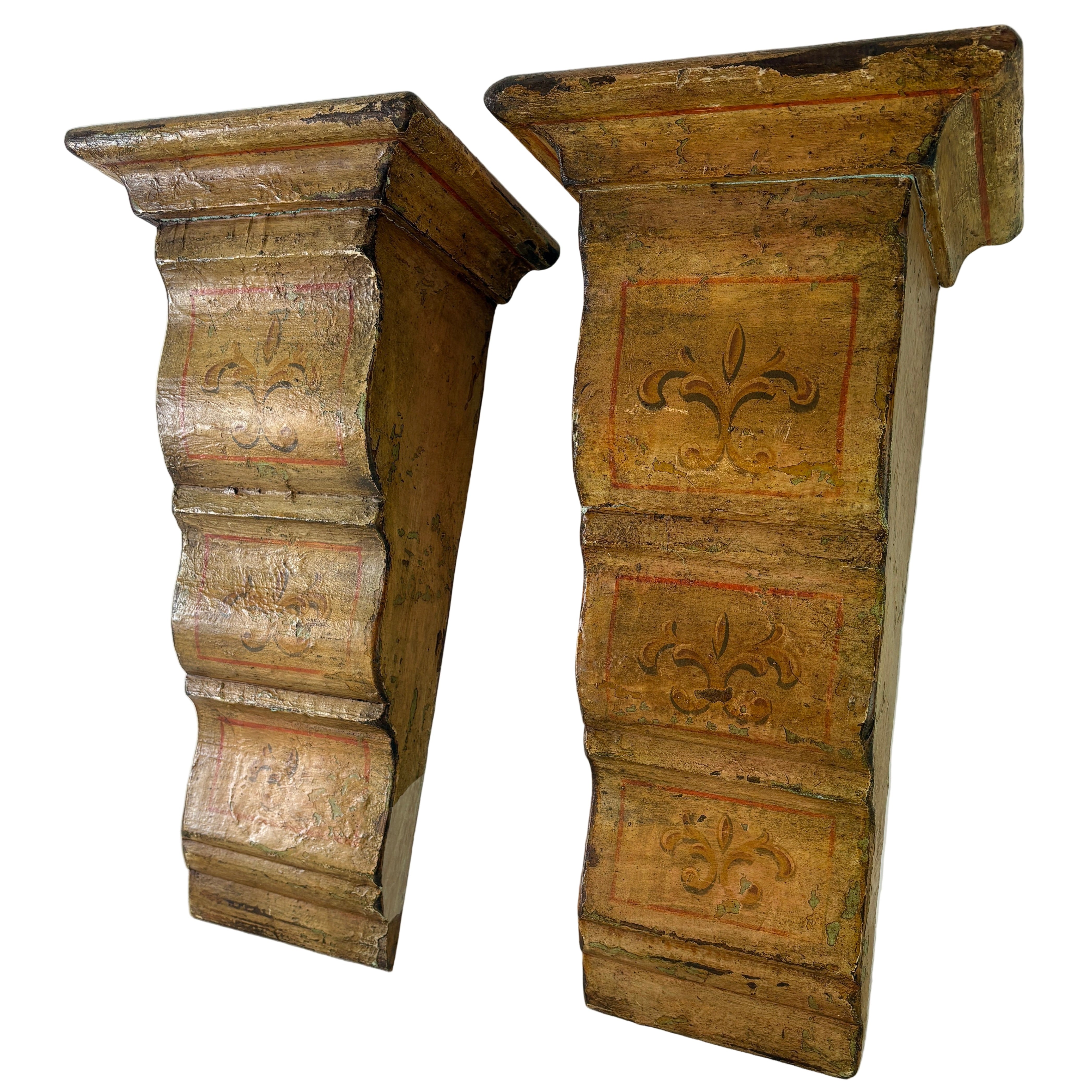 Wood Corbels, Hand Painted, Fleur de Lis Motif, Pair.