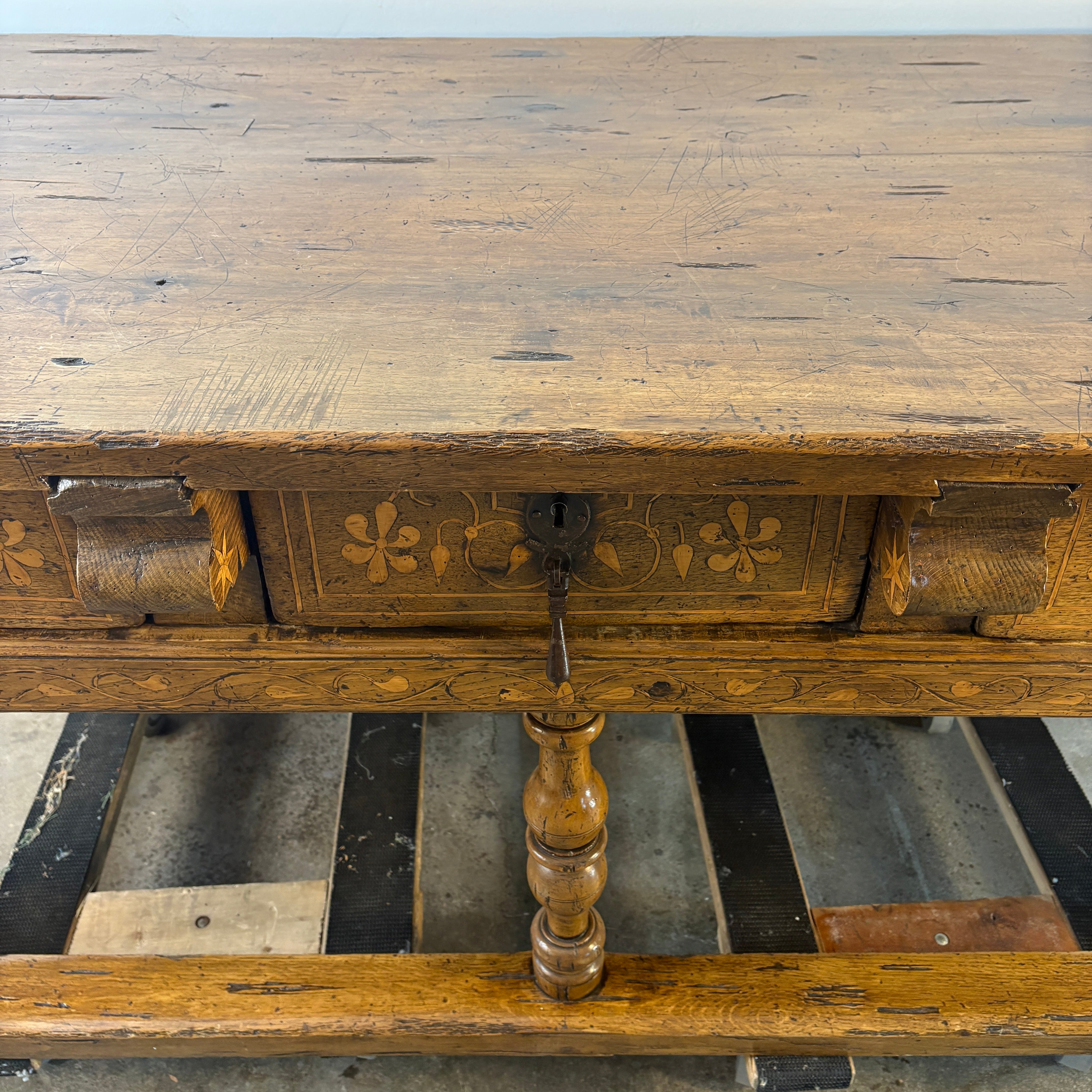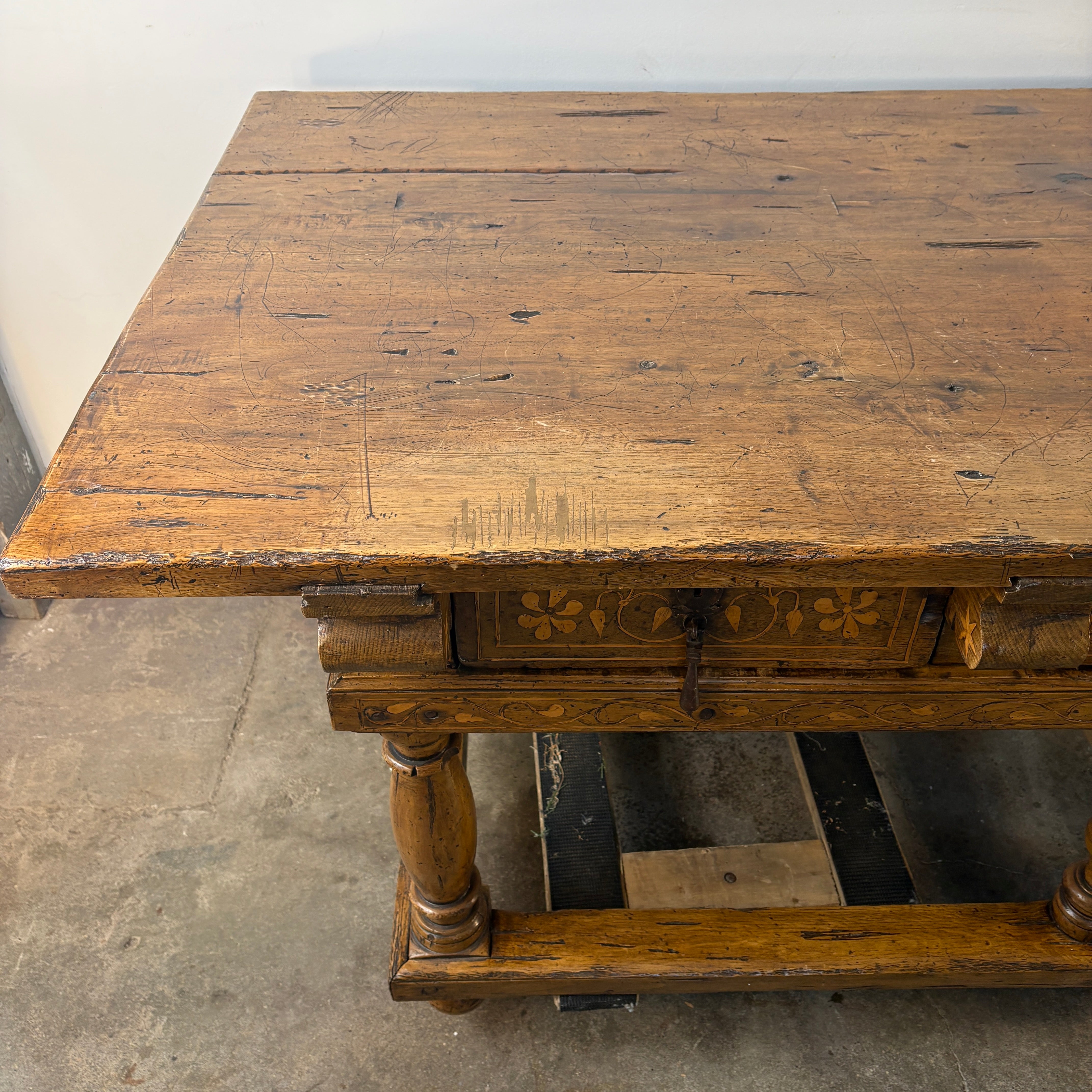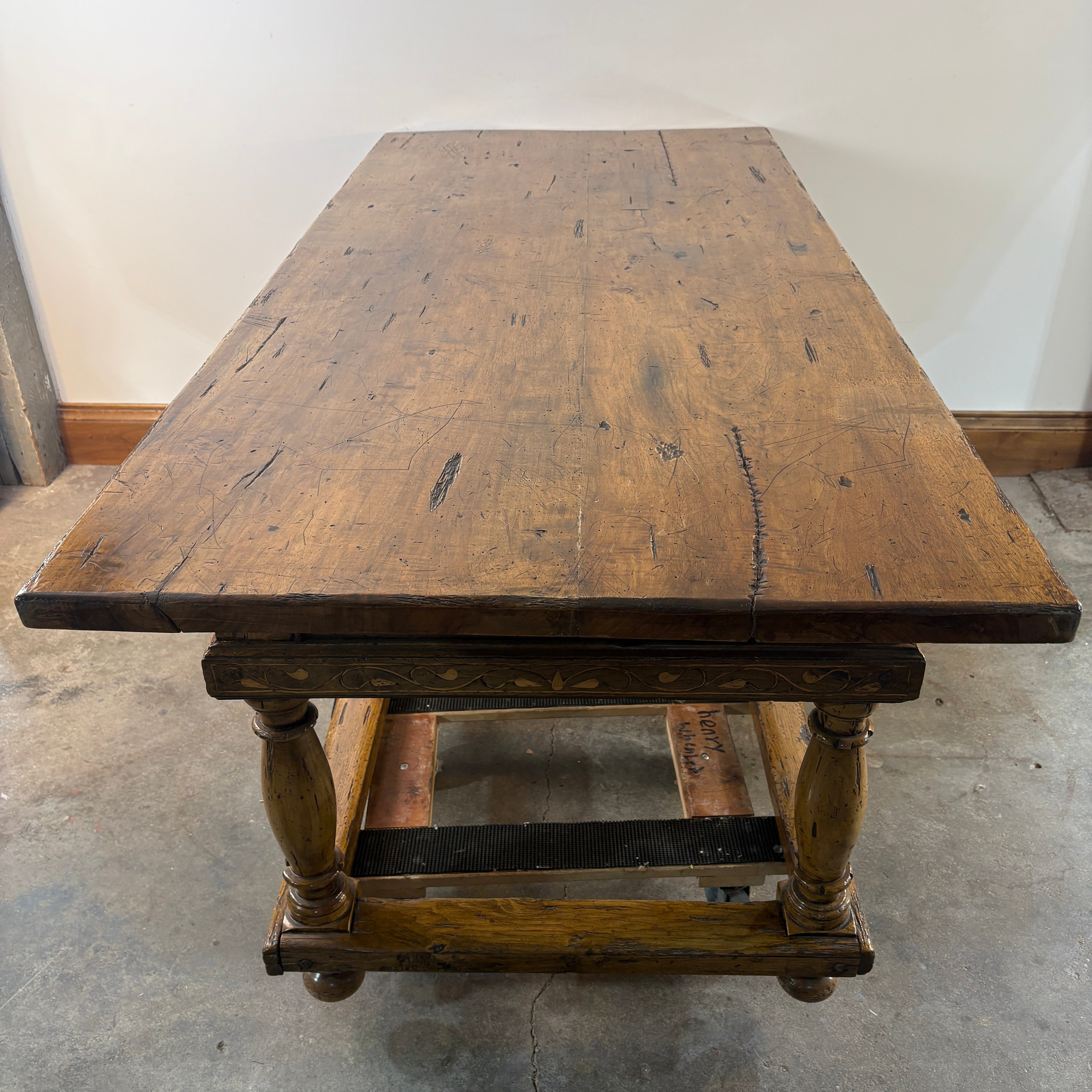 Chefs Table, Wood Inlay & Metal Hardware Table with Secret Compartment.
