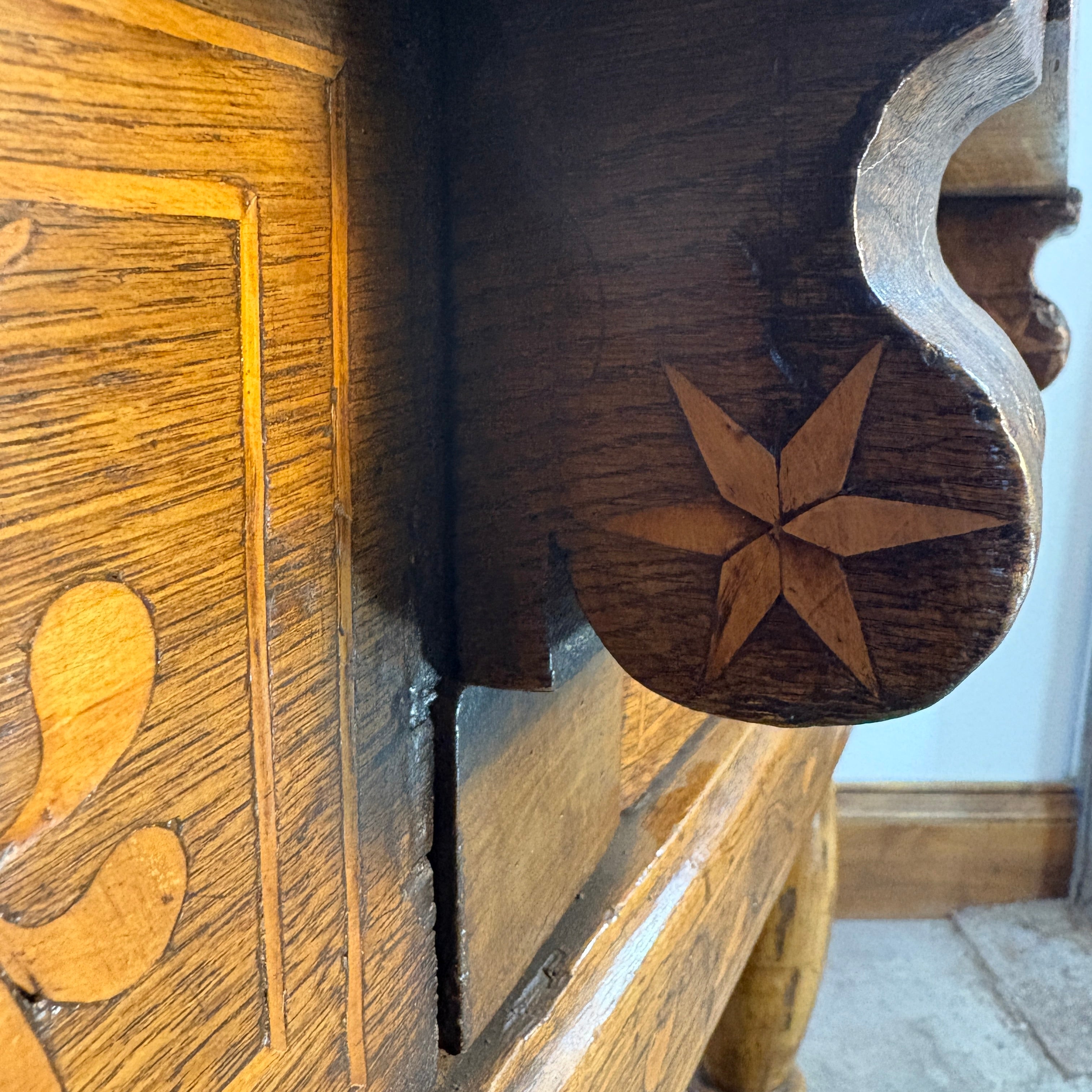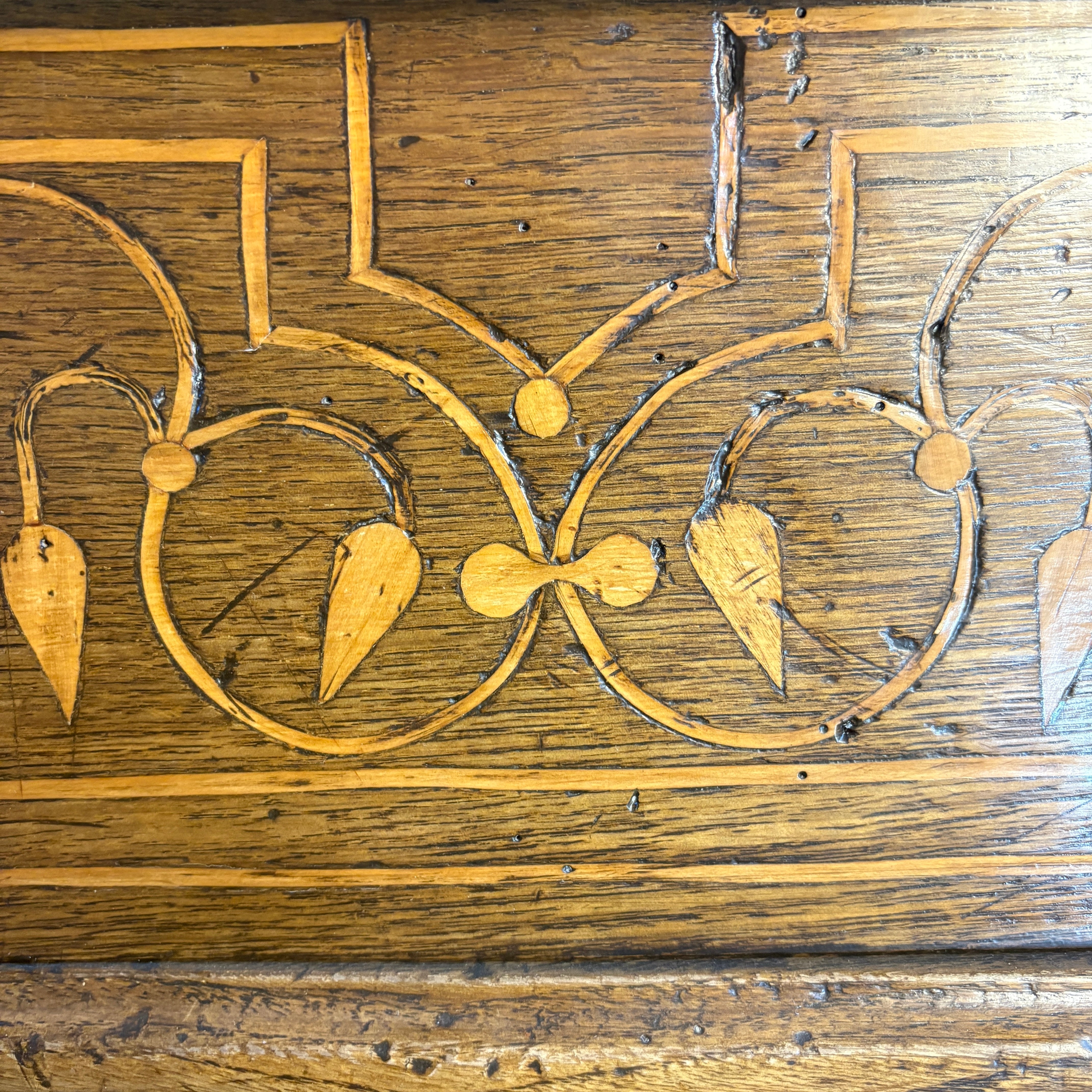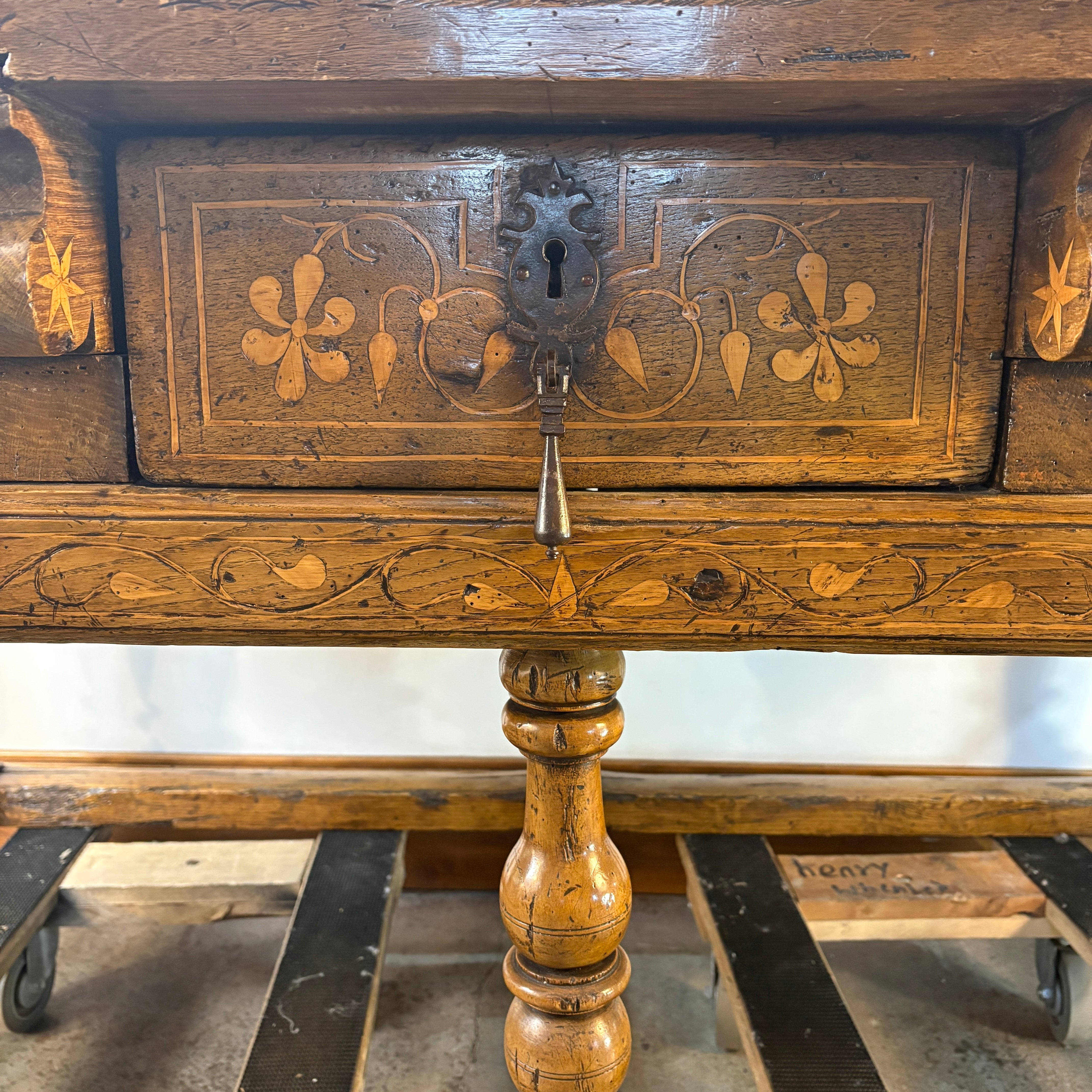 Chefs Table, Wood Inlay & Metal Hardware Table with Secret Compartment.