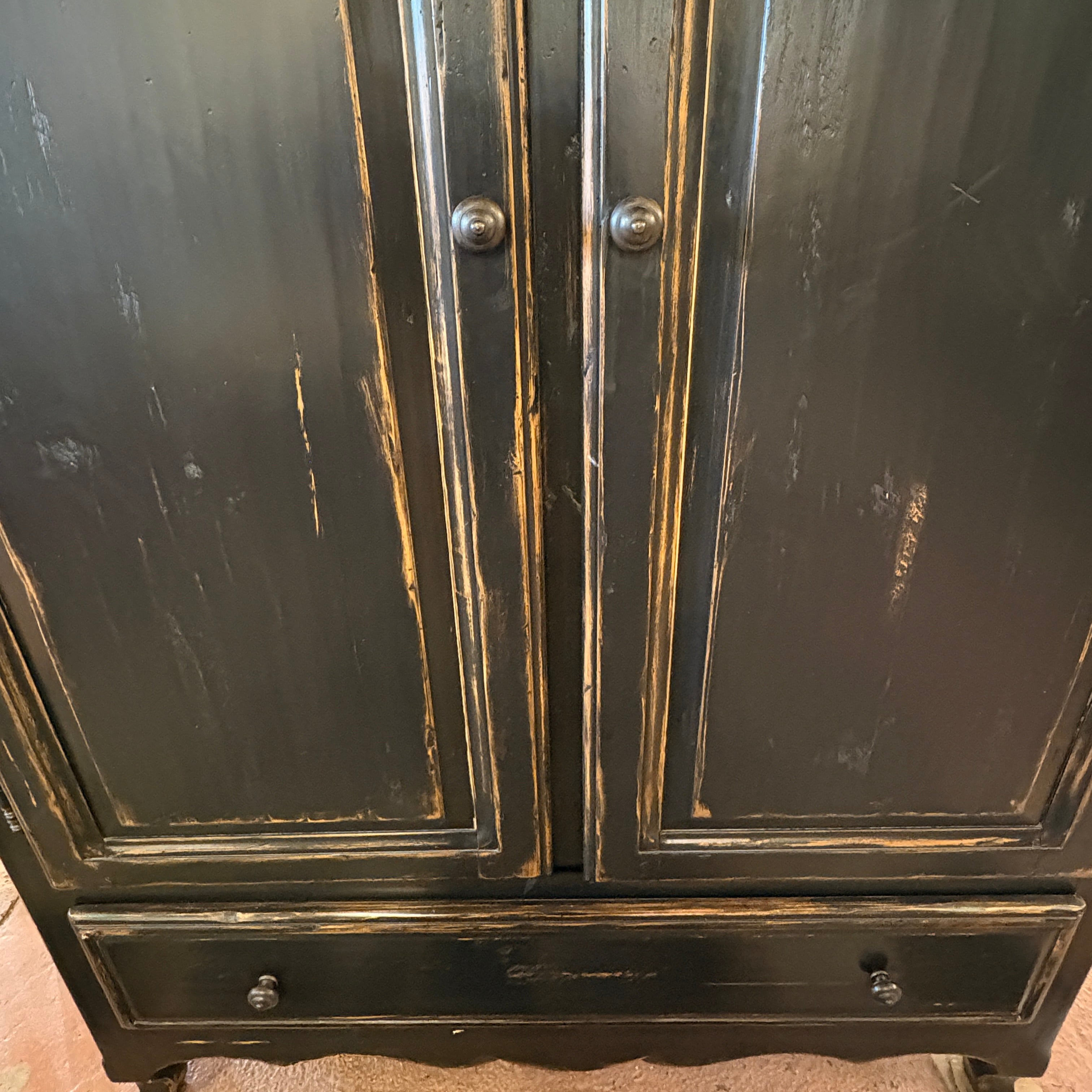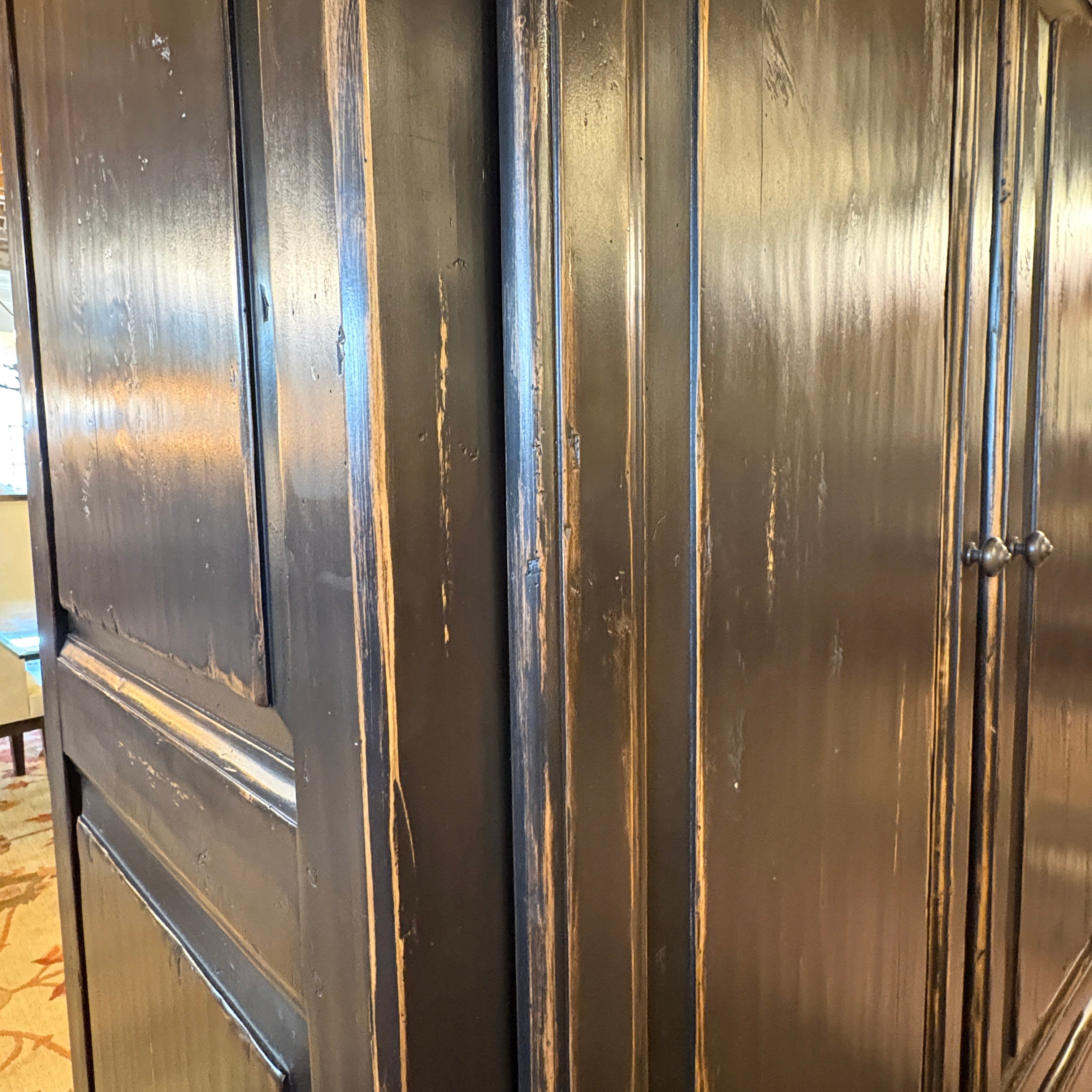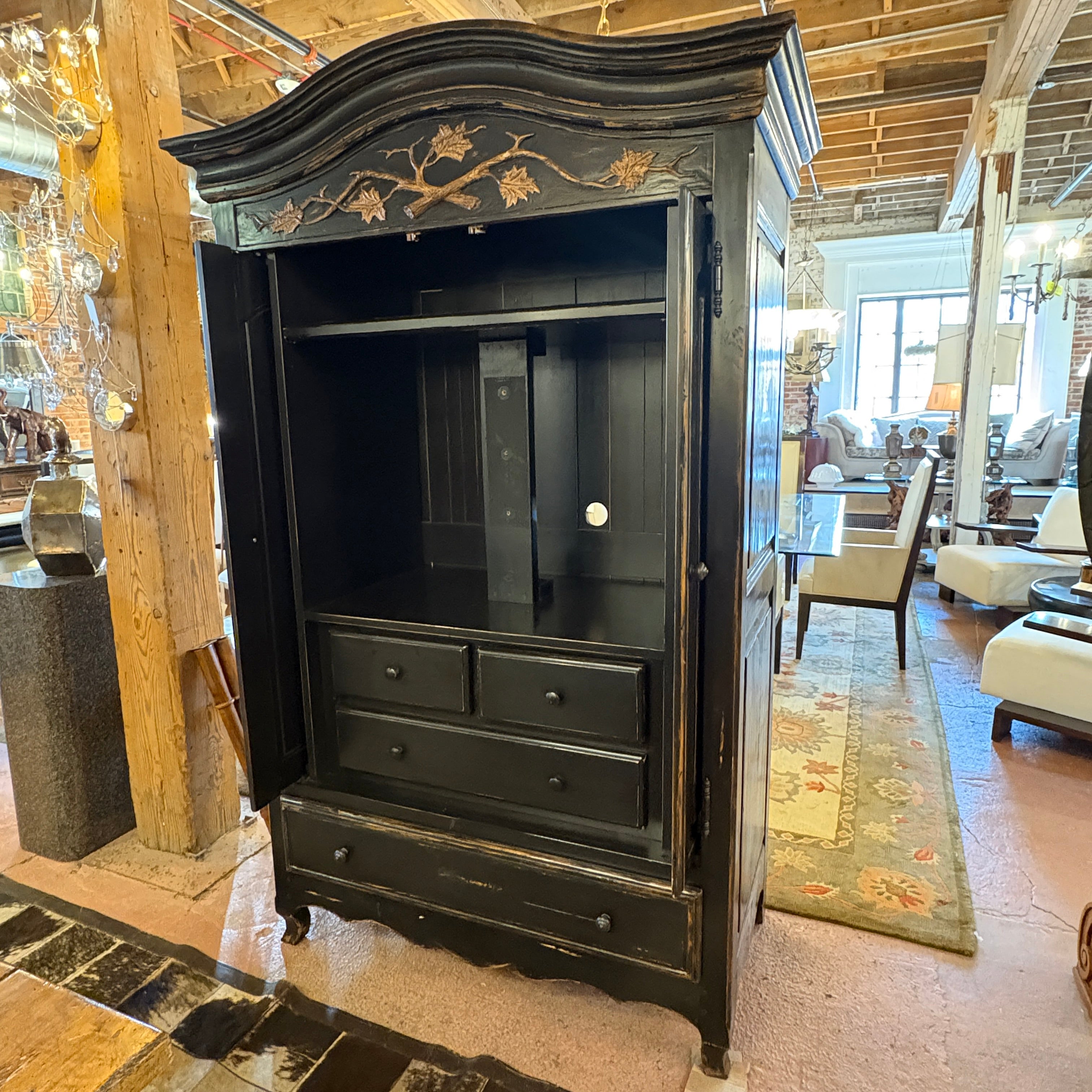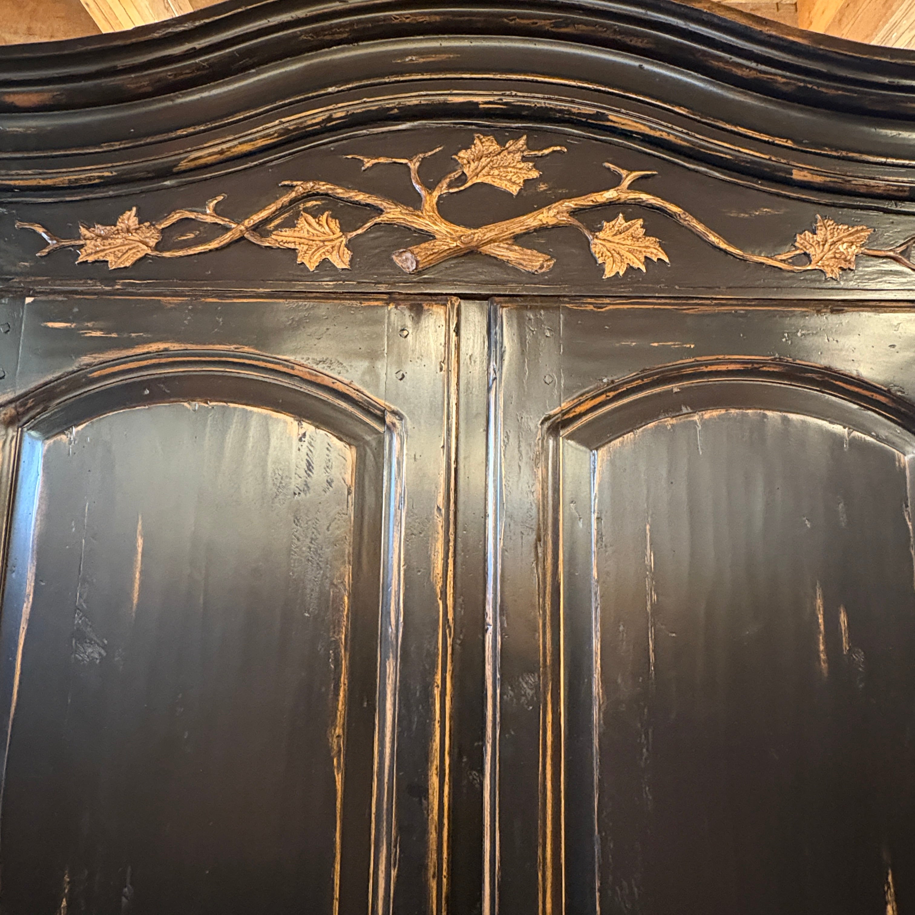 Woodland Furniture - Idaho Falls, Wooden Cabinet with Retractable Doors, Lower Drawer, 3 Interior Drawers, Flat Screen Bracket, Upper Shelf, Intended Rustic Finish with Maple Leaf Motif,